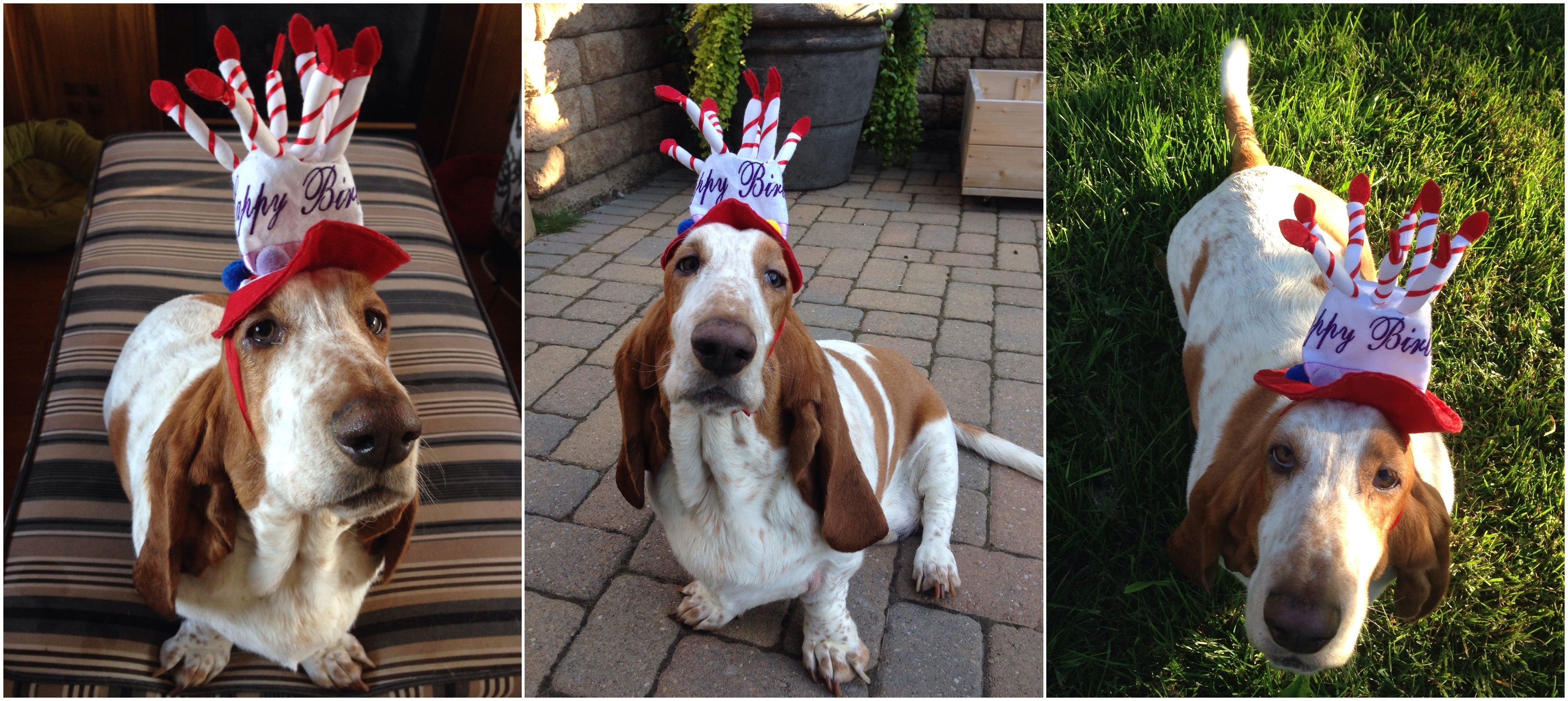 Our basset hound, Gromit Wensleydale, had a birthday this week. He turned 5. All grown up..