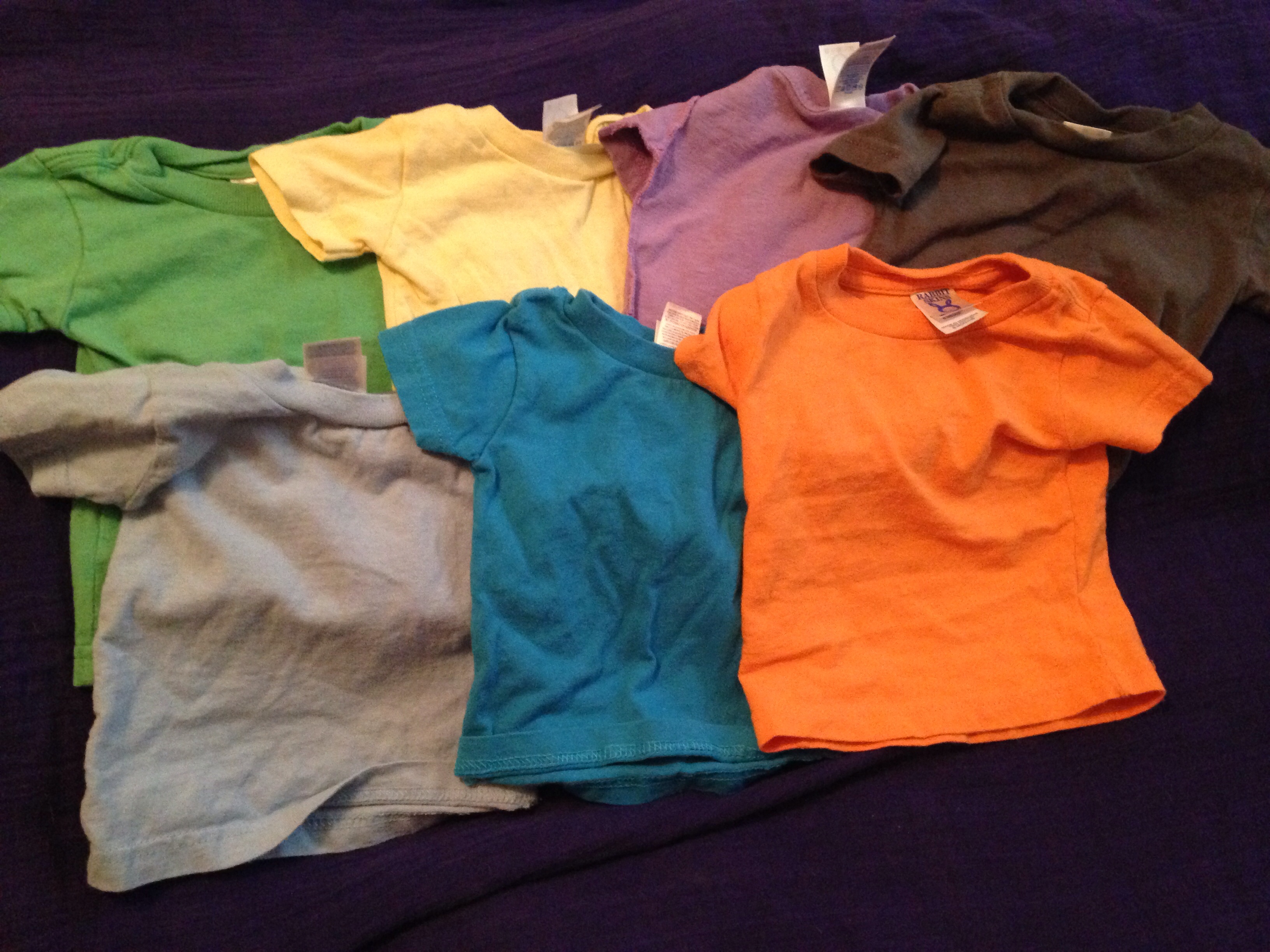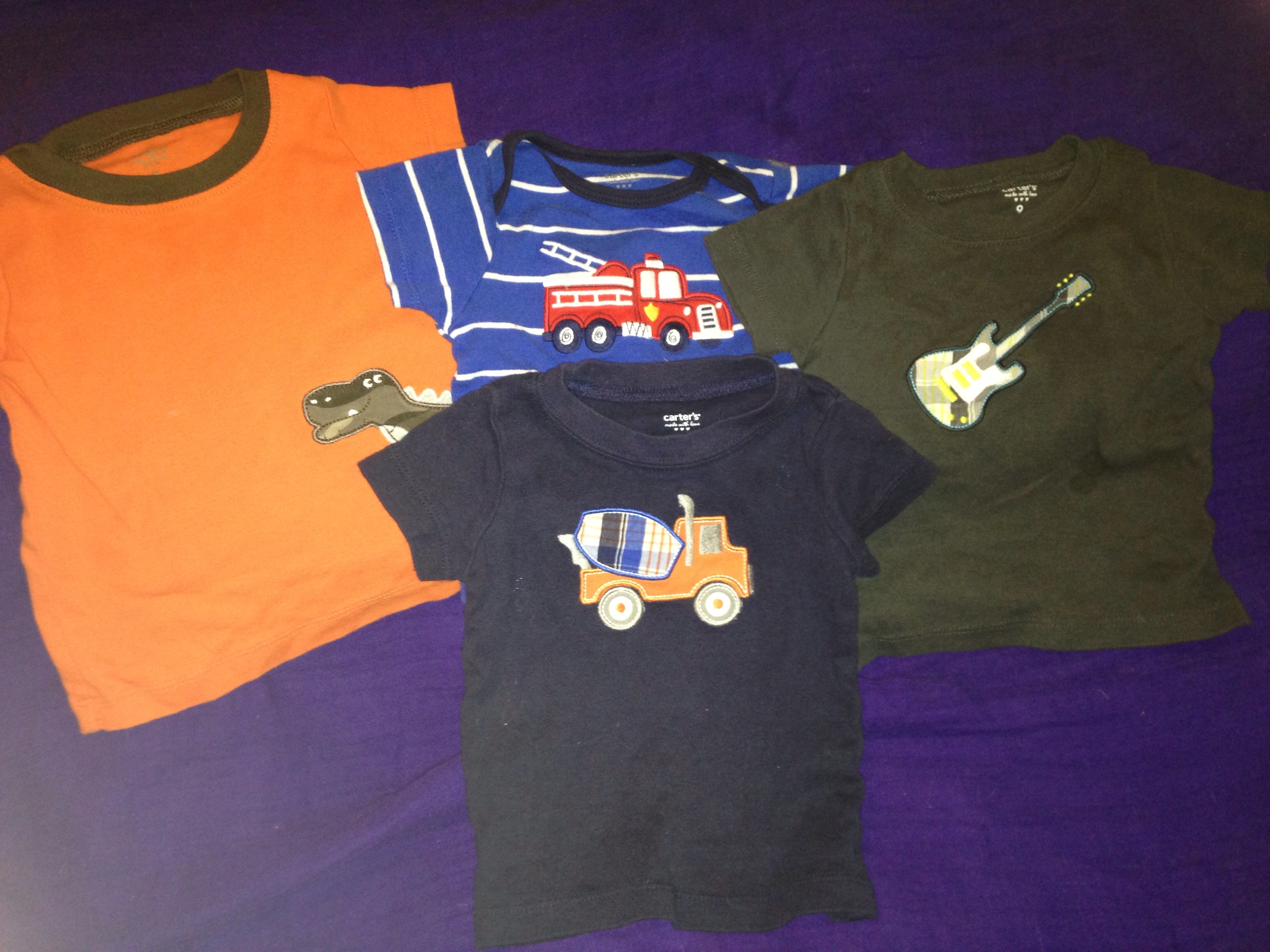I have these t shirts I'm going to put in my yard sale tomorrow but I thought id try then here first. Seven six month sized rabbit skins and some nine month Carter's t shirts. Also some wool stuff. Tshirt a are 20 for the rabbit skins and say 15 for the Carter's? I'm not sure on the wool. Maybe 10 each? I don't do much wool. Id also trade the wool for something like a disana cover that's a little more user friendly.