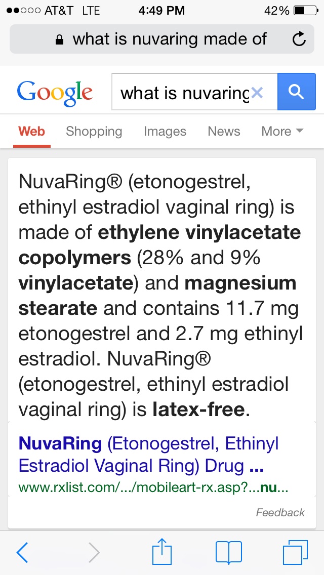 What about Nuva ring- isn't that plastic? I'm panicking!