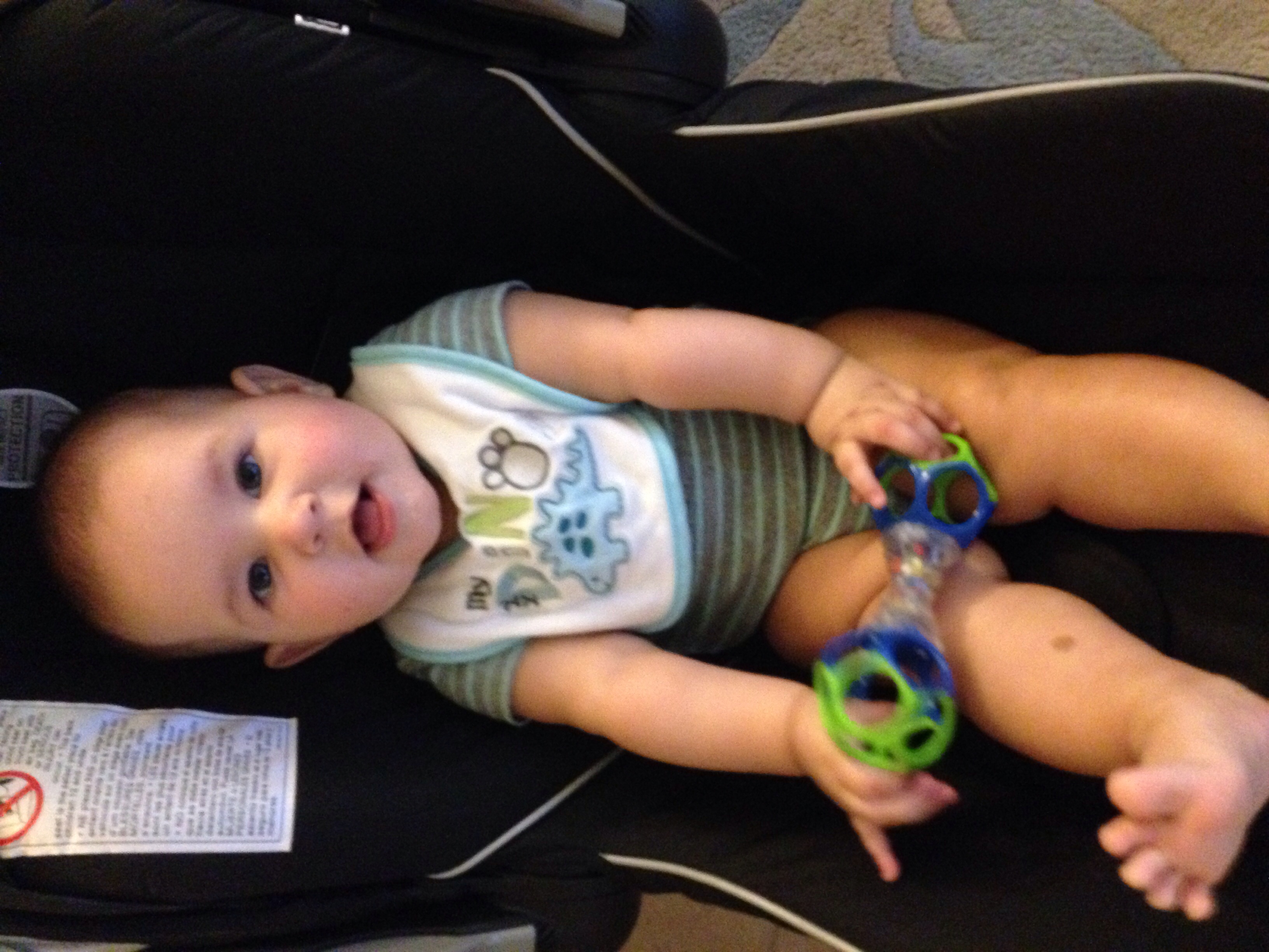 at 5 months he's already 18lbs with beefy little thighs (EBF).