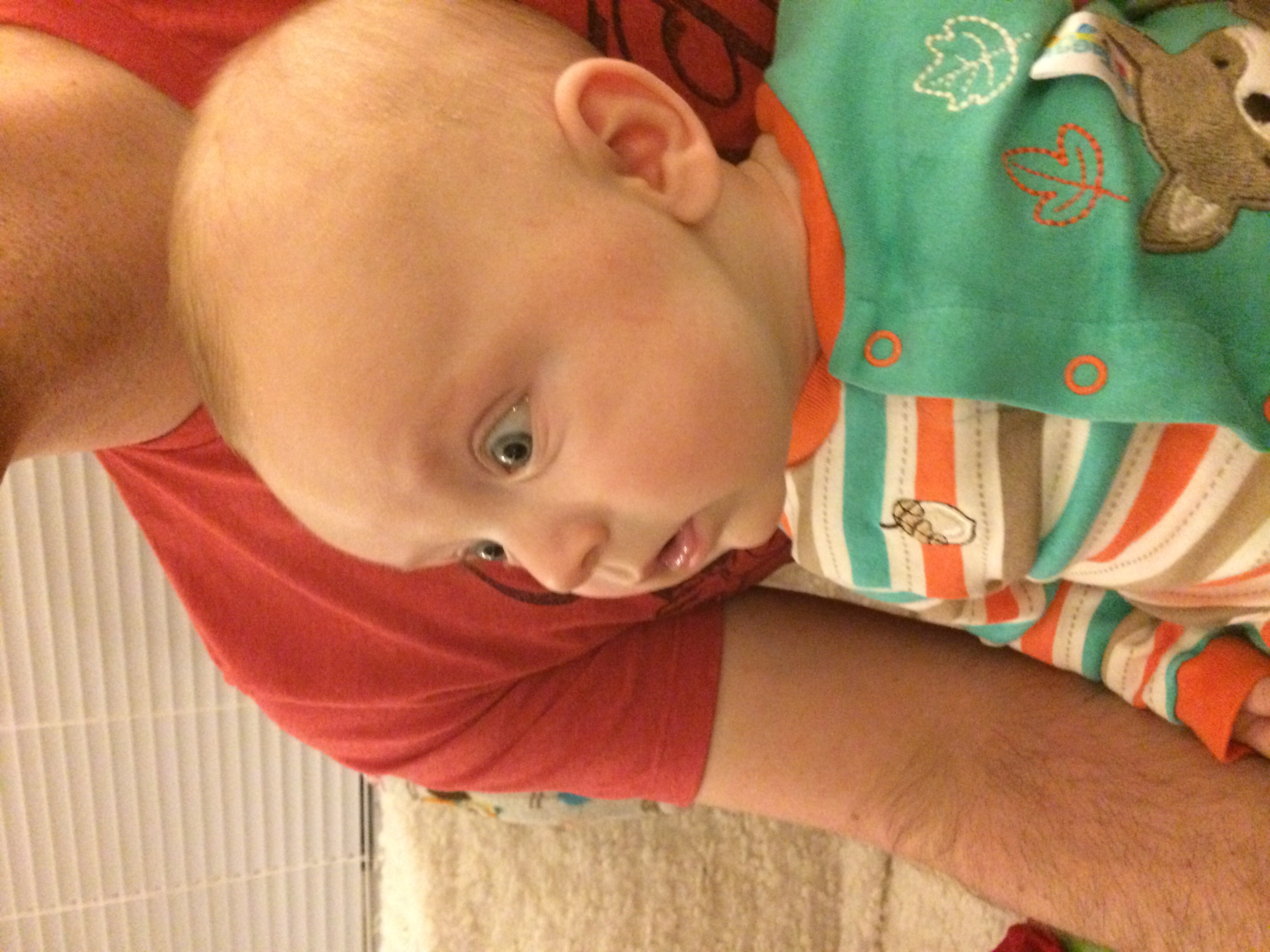 A little fun after bath time I'm his cute jammies. I love him soo much.