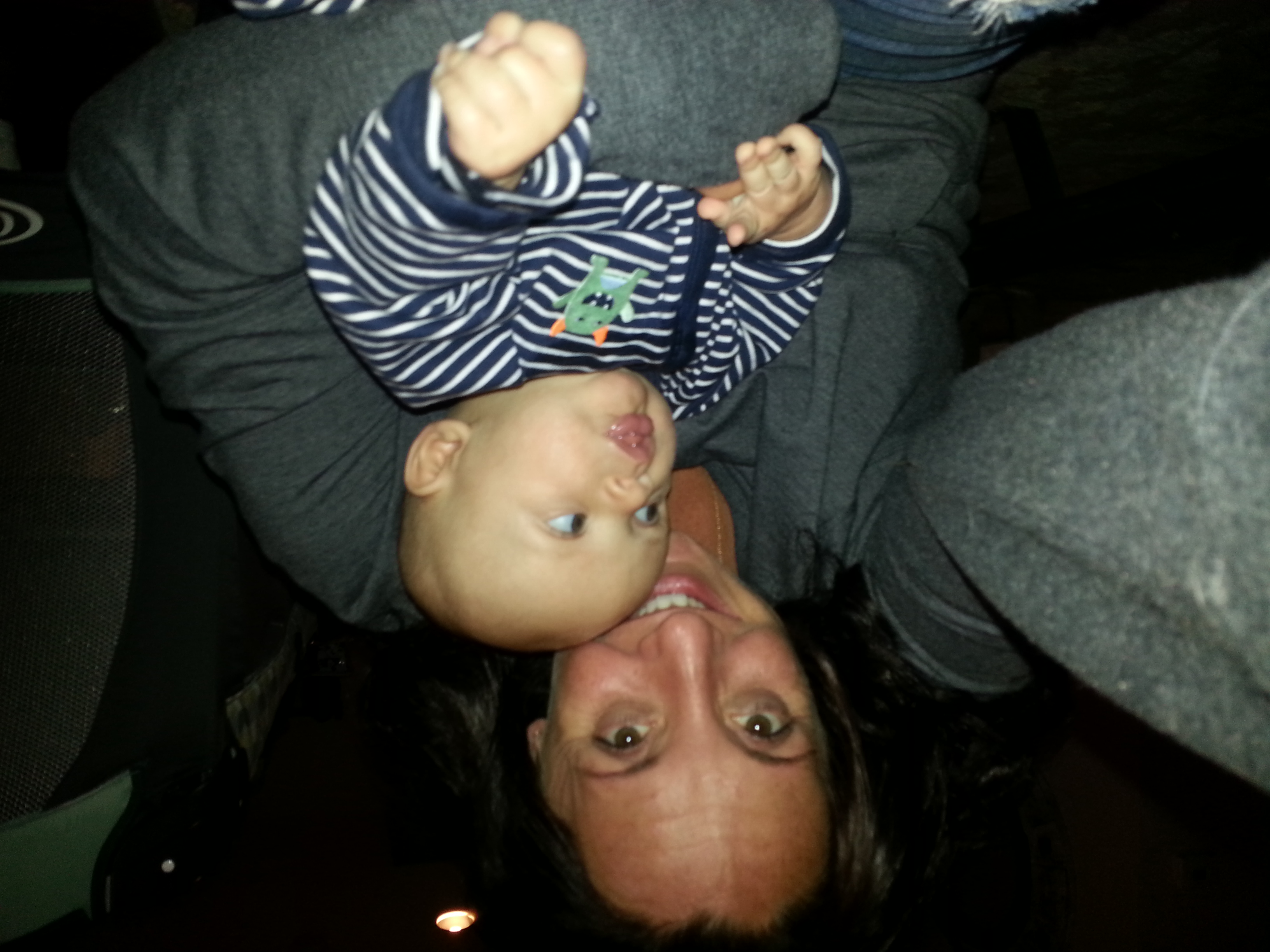: It's not upside-down when you click on it, so I'm guessing TheBump screwed up? Either way, cute pic!
