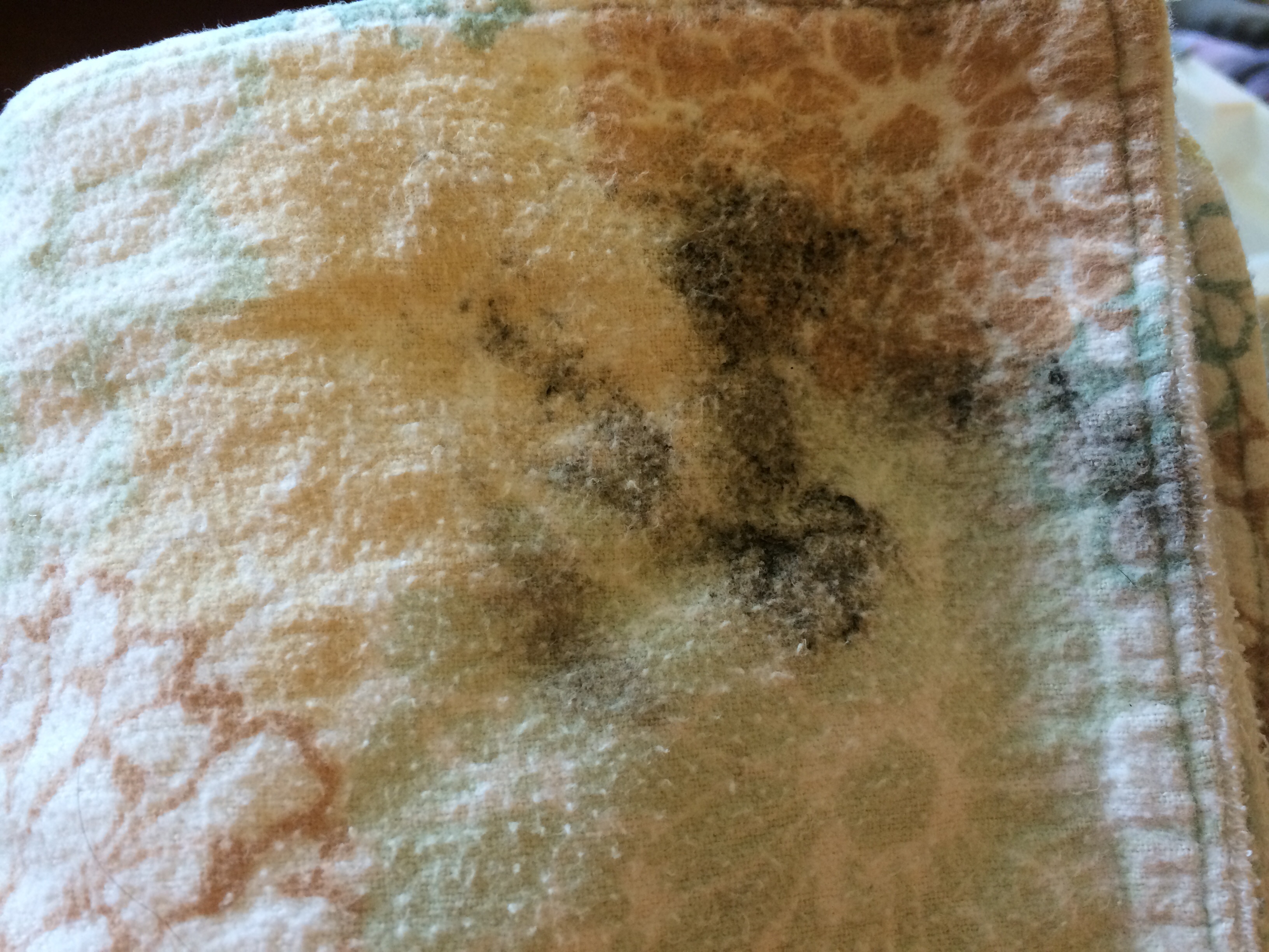 My washer keeps doing this to some items-it's like a gross black stain, crusty. It seems like the clothes are getting stick somewhere? I don't know. I don't see visible black Marks on the inside of my drum, just on the things being washed. This is a kitchen towel Ideas on how to fix it?