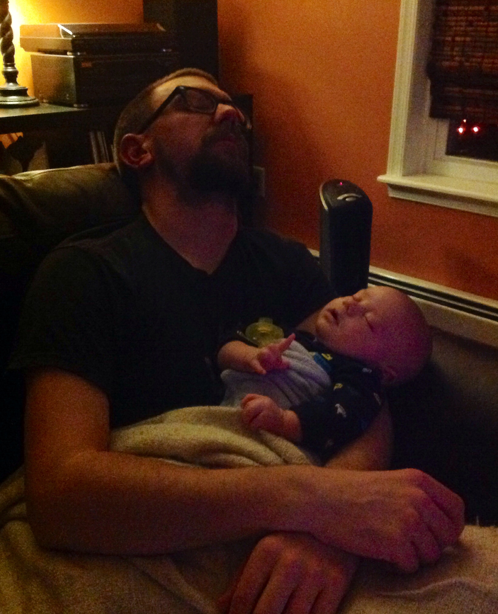 Yup dh handed the boy over when he woke up, I fed and he (dh) went right back to sleep on the couch. Of course the lo was wide awake so I've been trying my damnedest to stay awake with him for the last almost 2 hours. Hopefully after he's done eating this time I can toss him in his bed and sleep for a few hours until dd2 gets in my bed. And fingers crossed that both of the tiny humans will sleep in. Oh as well as dh having a shitty day at work.