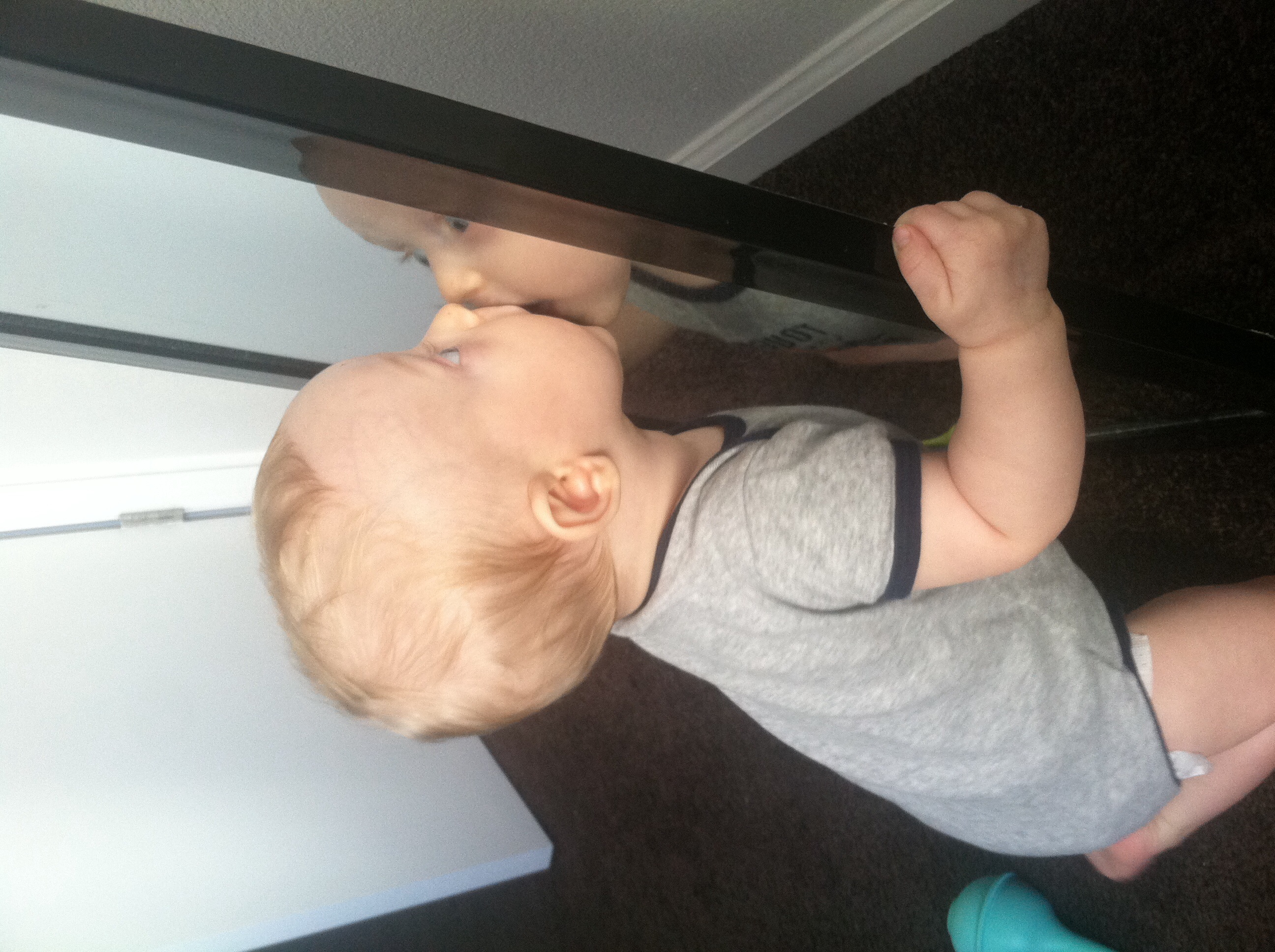 This is Ollie trying to give his own reflection kisses haha