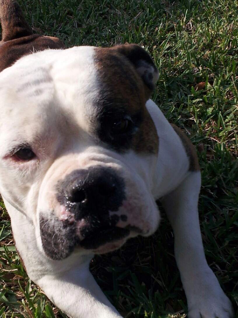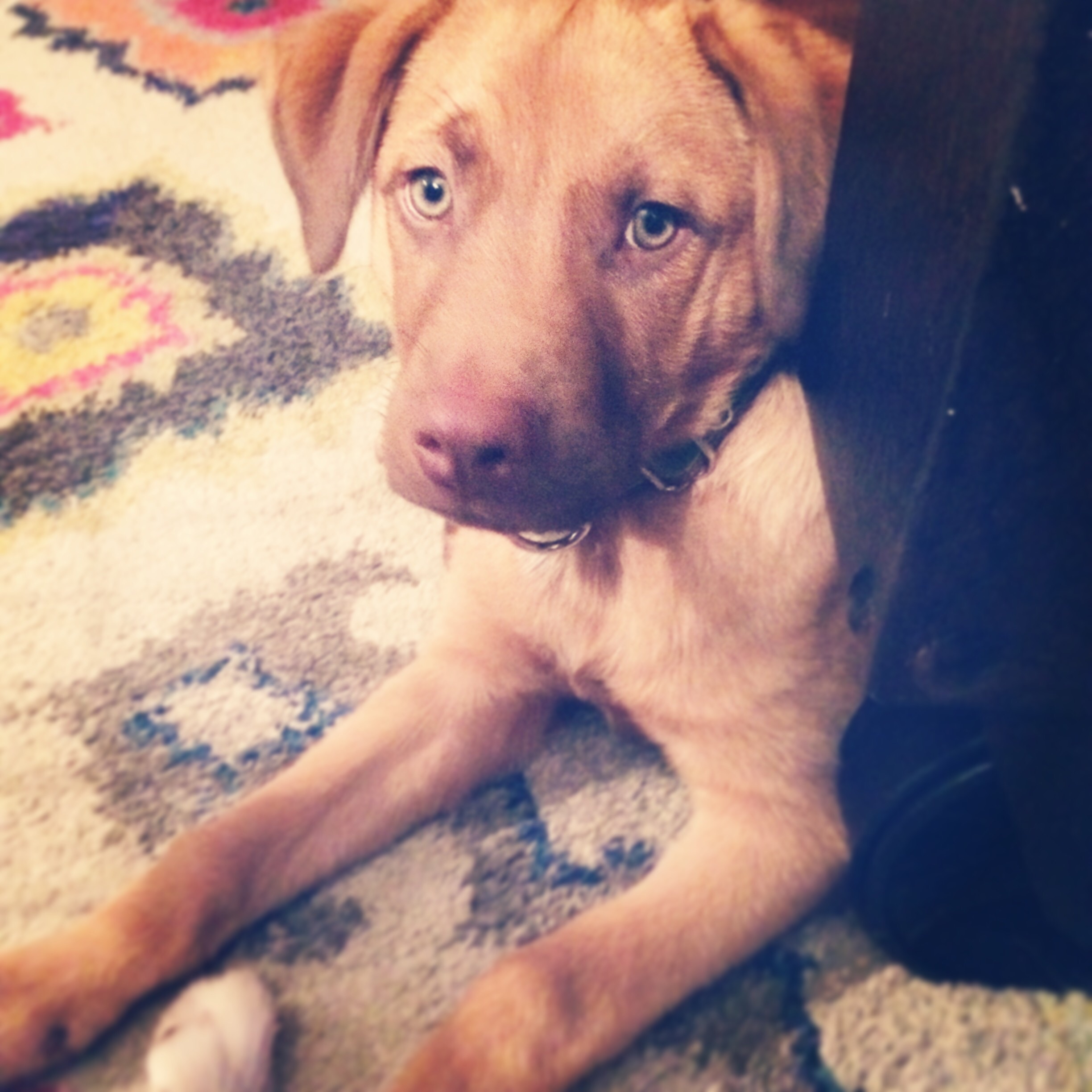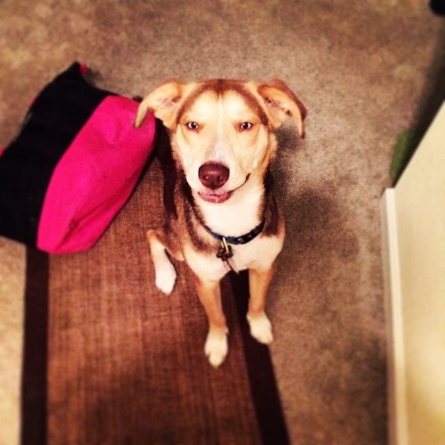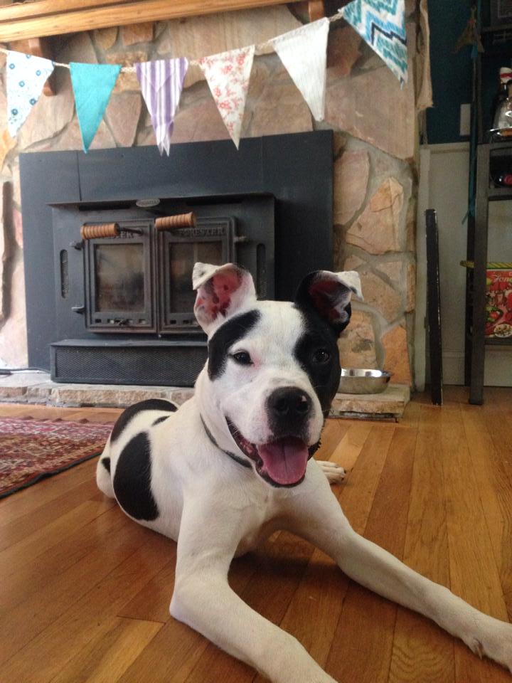 This is Birdie, she is a 'stafordshire terrier' which is a fancy way to say Pit Bull. We got her about three weeks ago from the DC Humane society and she is an absolute dream come true. She is so good, loves to play and to snuggle, hardly ever barks and loves to run with me in the mornings.
