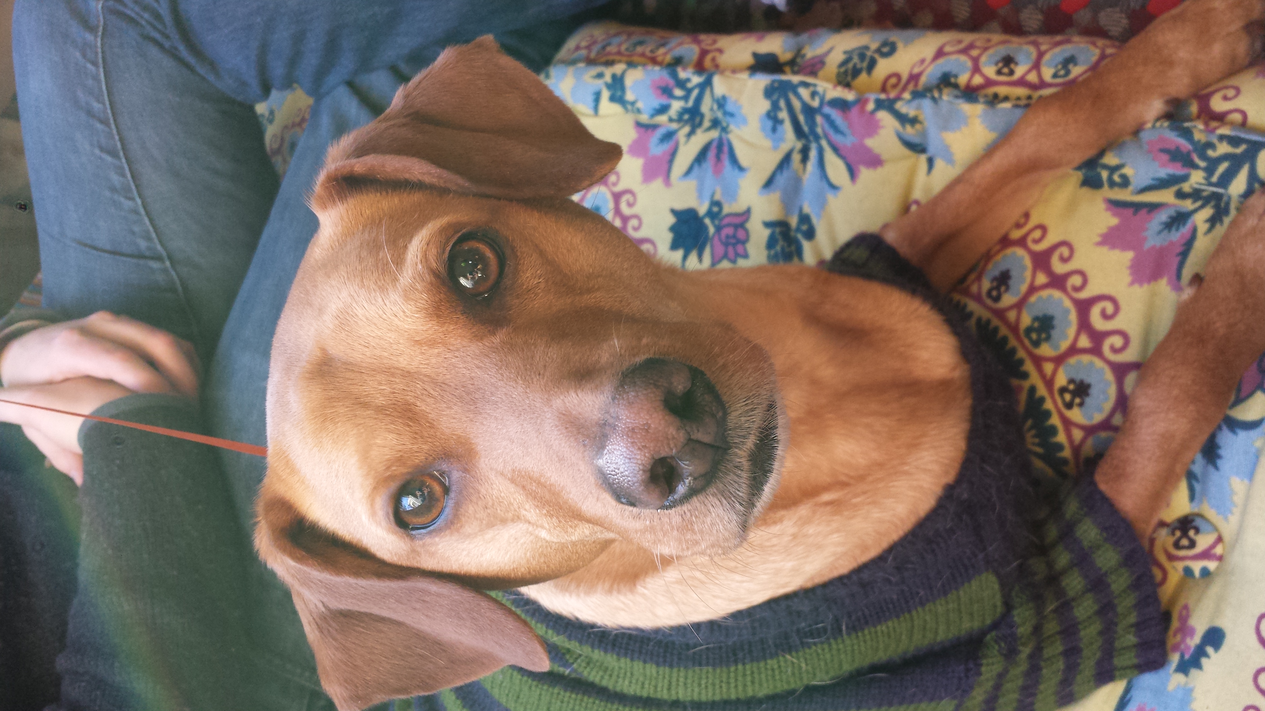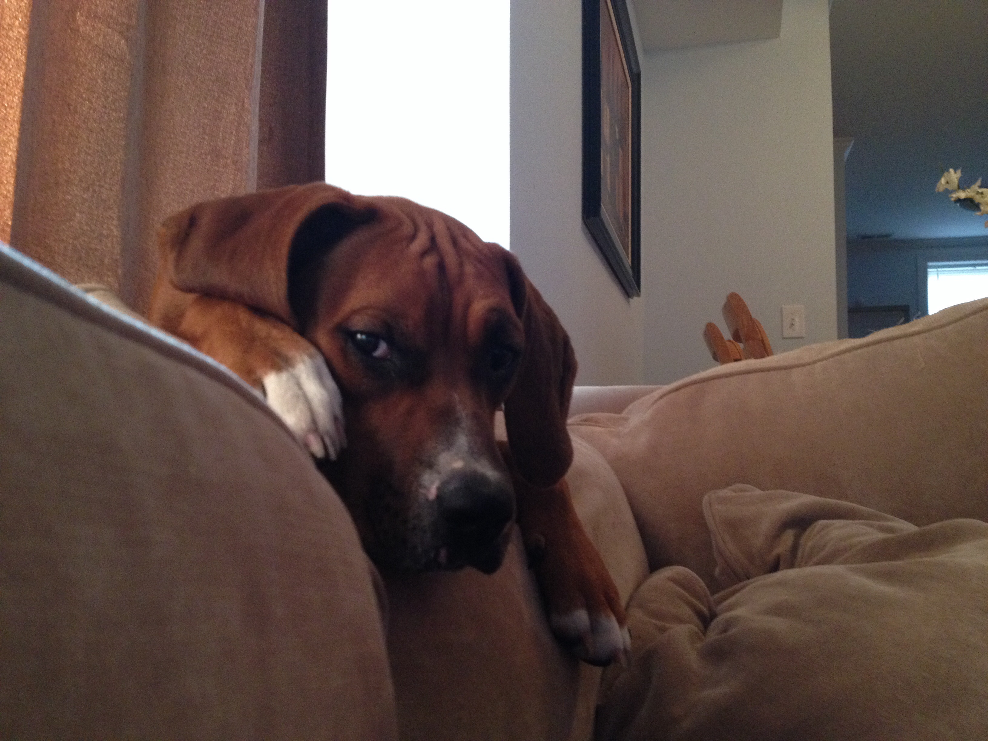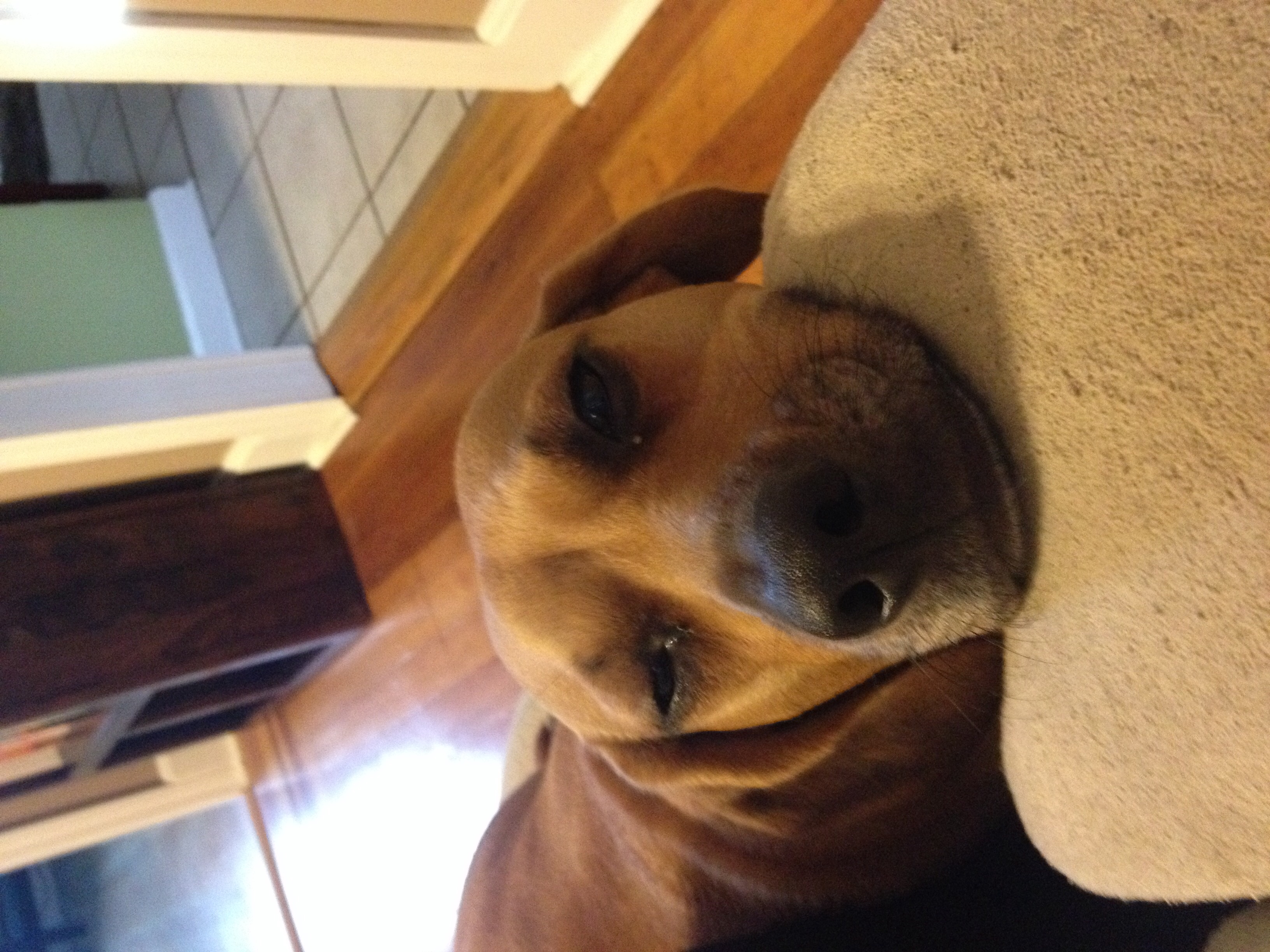 This is Birdie, she is a 'stafordshire terrier' which is a fancy way to say Pit Bull. We got her about three weeks ago from the DC Humane society and she is an absolute dream come true. She is so good, loves to play and to snuggle, hardly ever barks and loves to run with me in the mornings.