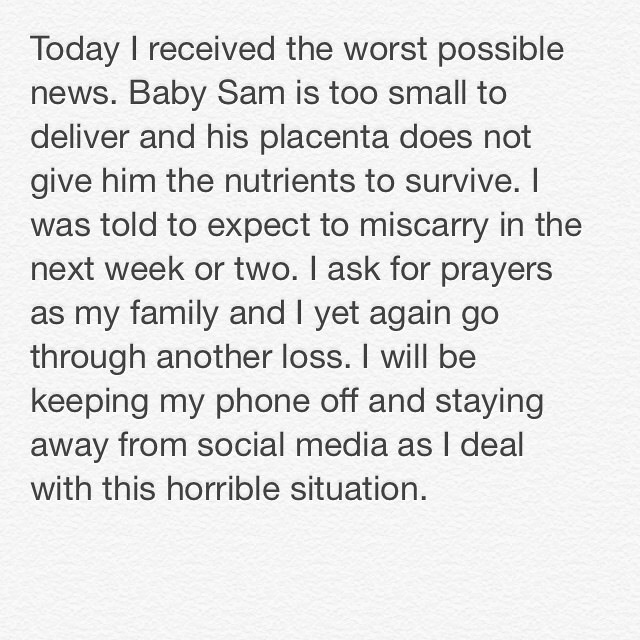 I have a friend who is due with her baby boy Christmas Day. She was admitted to the hospital 2 weeks ago because the baby was measuring 3 weeks behind and they discovered low amniotic fluid. The doctors were able to help with the amniotic fluid and put her on a strict diet. She was released from the hospital and placed on bed rest while being closely monitored. At today's check up they have received devastating news. (Photo attached).. My heart is totally broken for her and her family. She just suffered the loss of her father in a terrible hunting accident. I'm Really praying for a miracle for baby Sam! I hope everyone can say a little prayer for him.