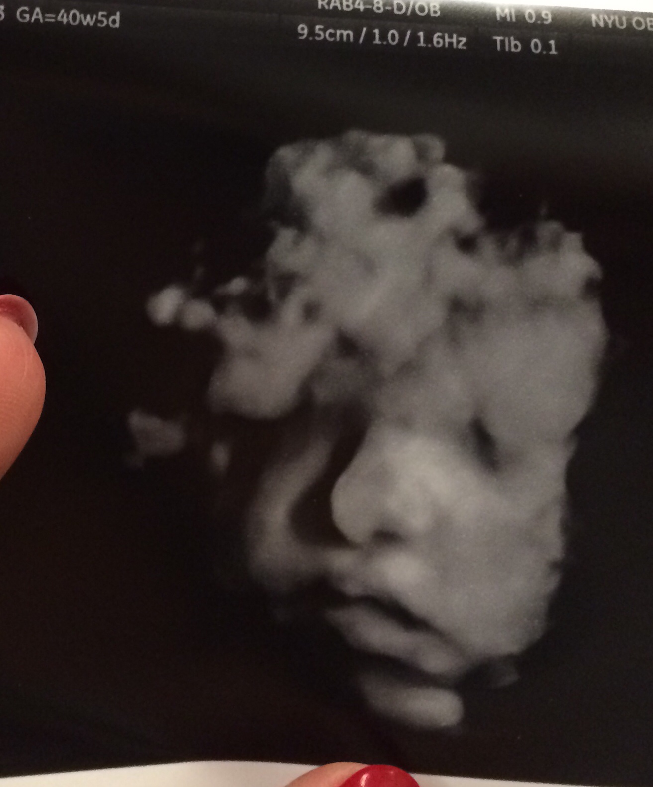 • Had ultrasound and appt today. Still only 1cm and think I MAYBE had my first BH yesterday. Labor is definitely NOT imminent and doctor said most likely will be keeping my induction appt for Friday morning. Going to find an acupuncturist tomorrow and see if that does anything. But look at this baby face!