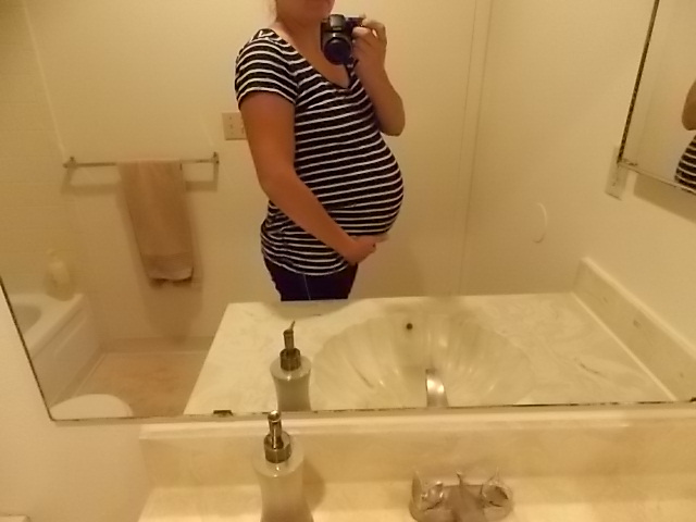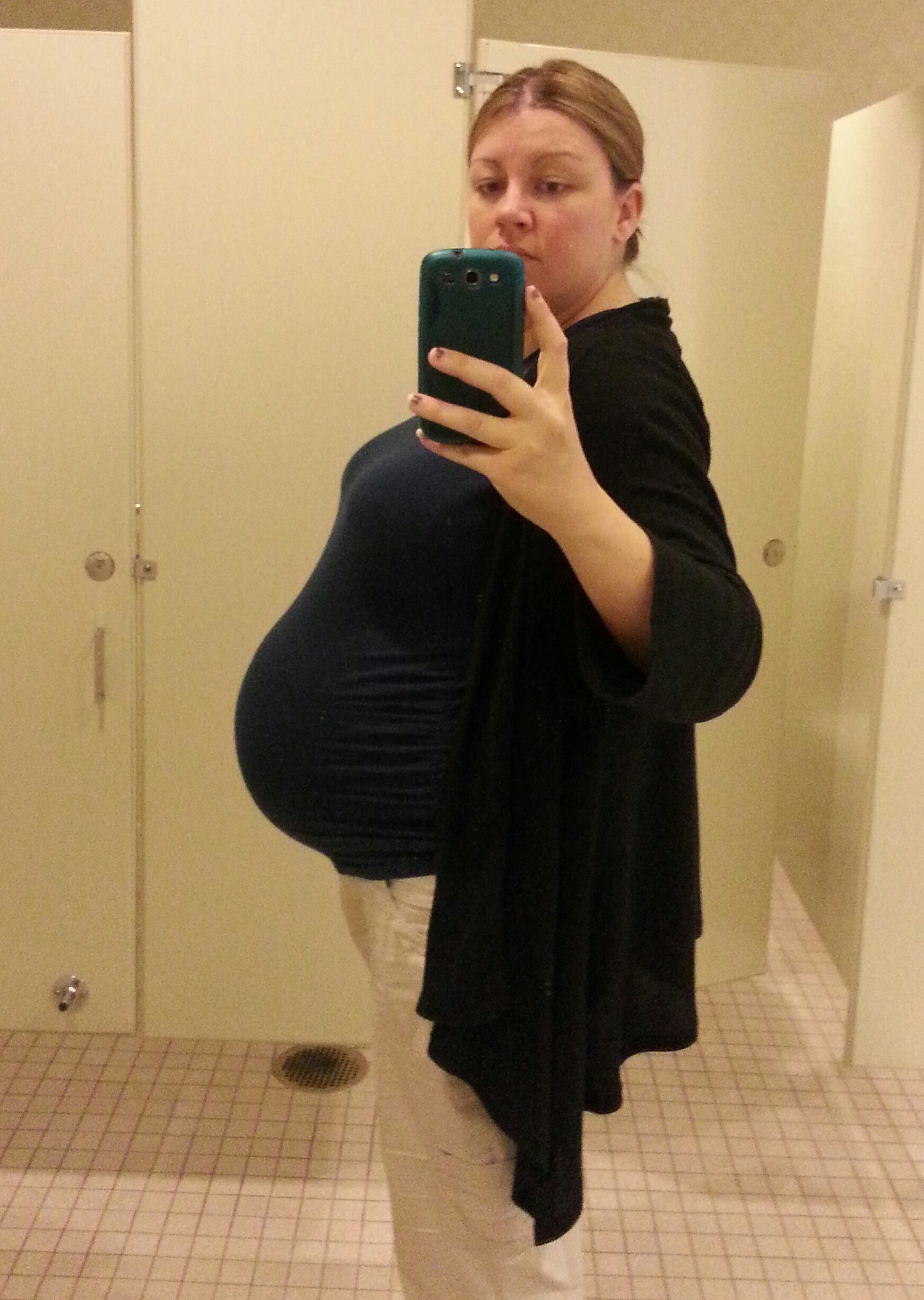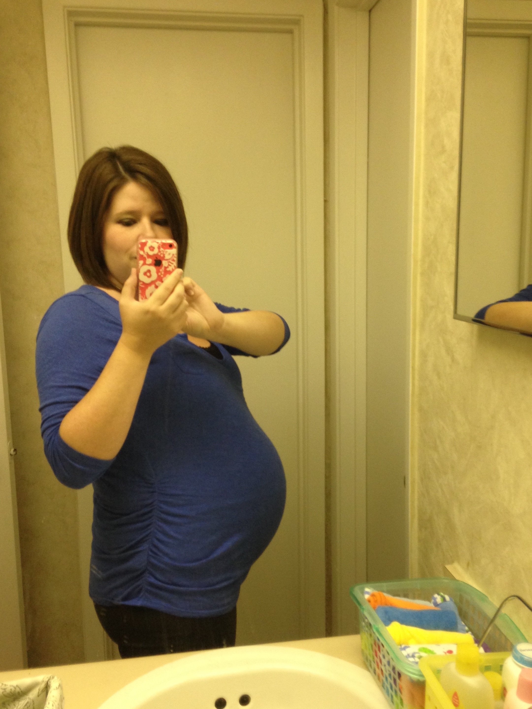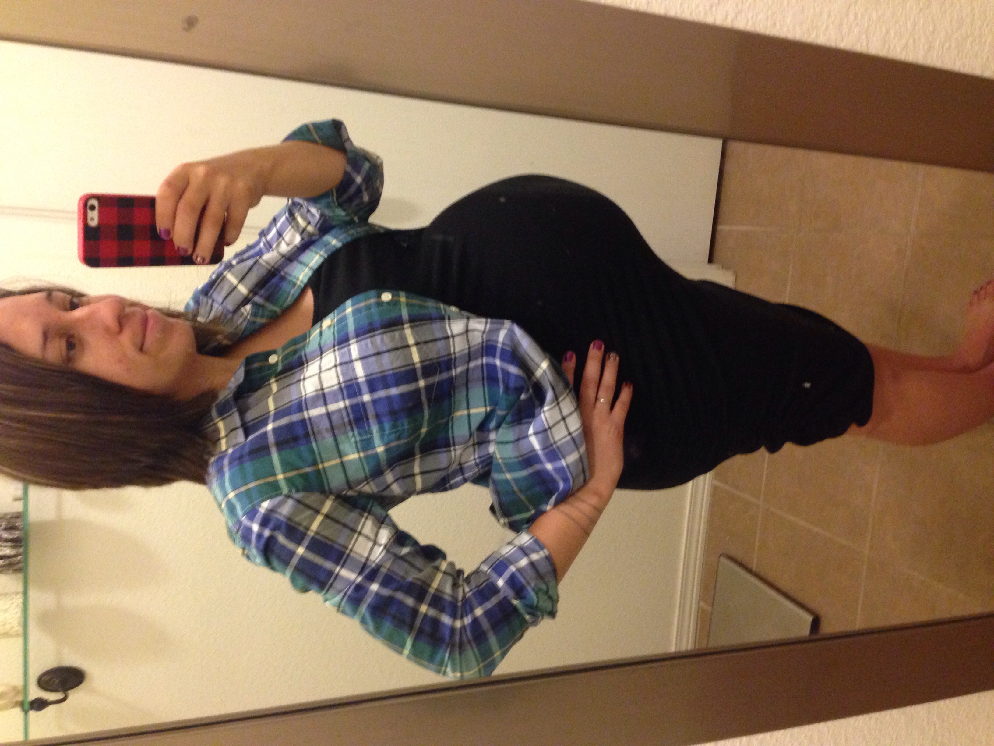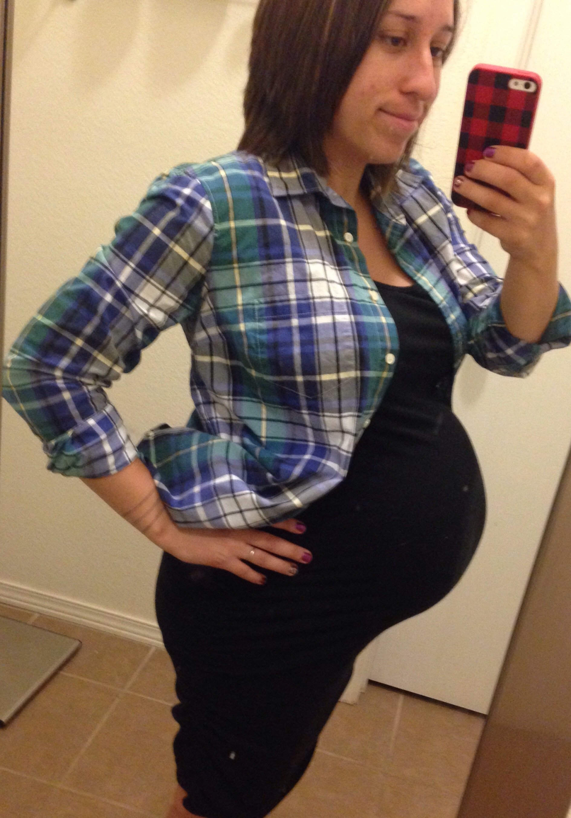 37+1 compared to 24w when I wore the same shirt for hdbd. I've grown quite a bit since then... lol. My boobs look smaller now but that's probably just in relation to the ever growing bump!