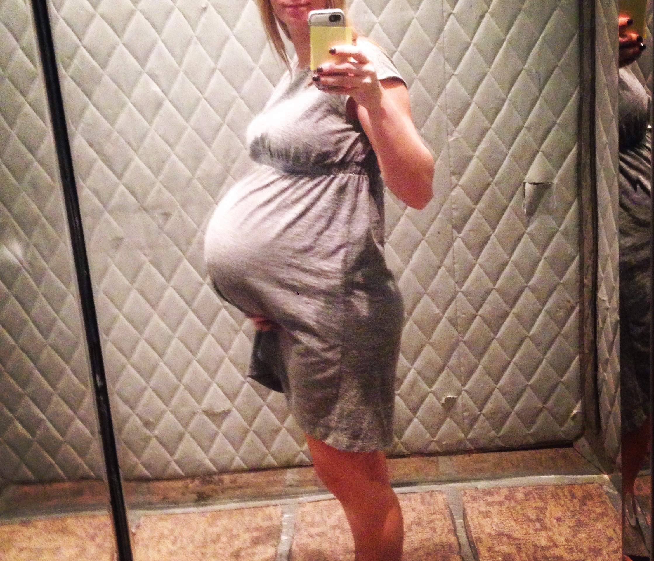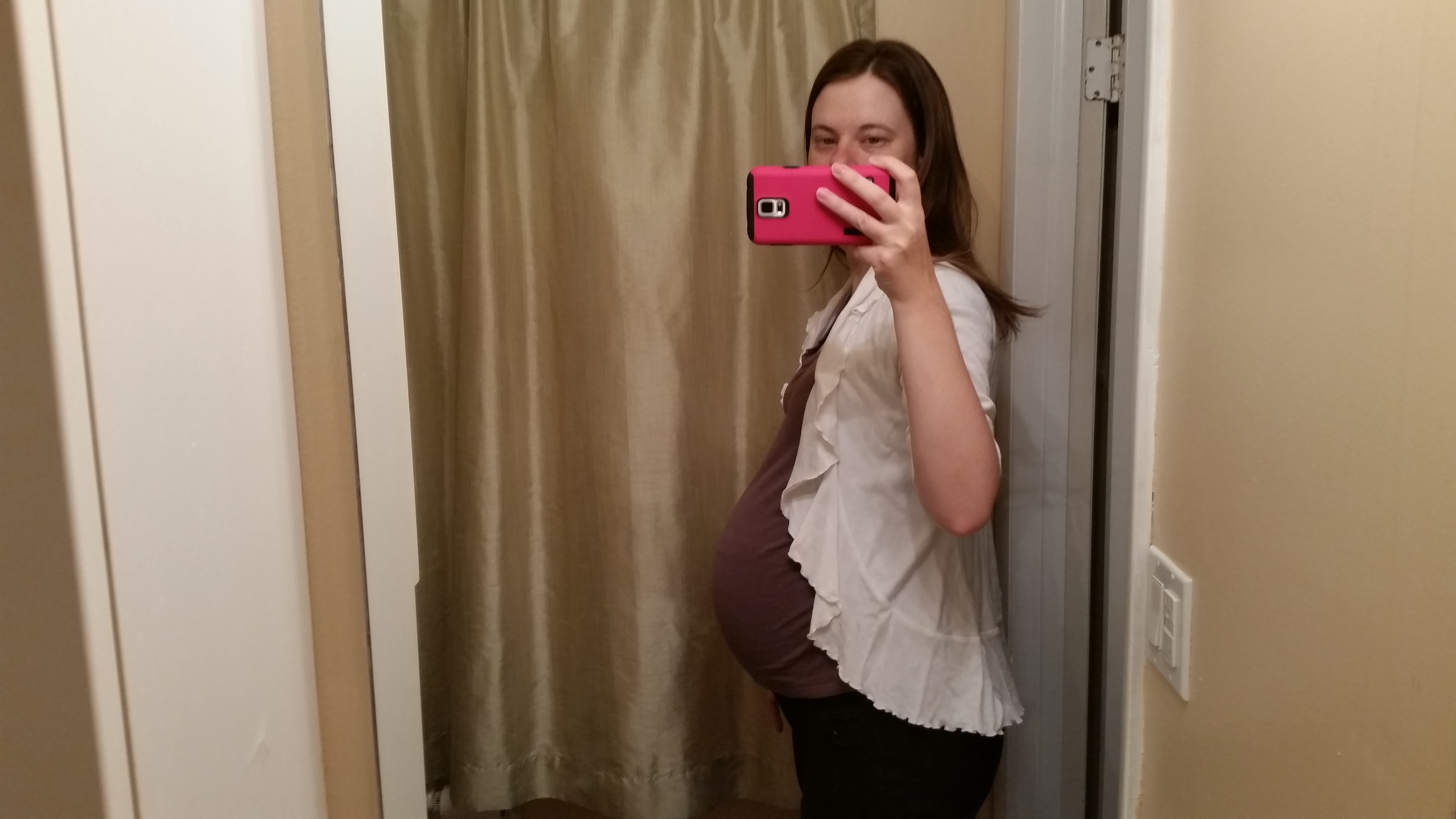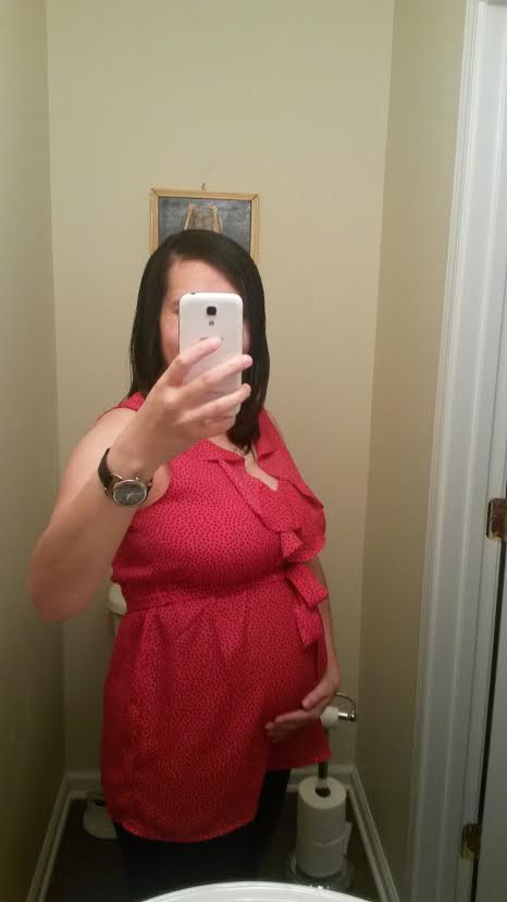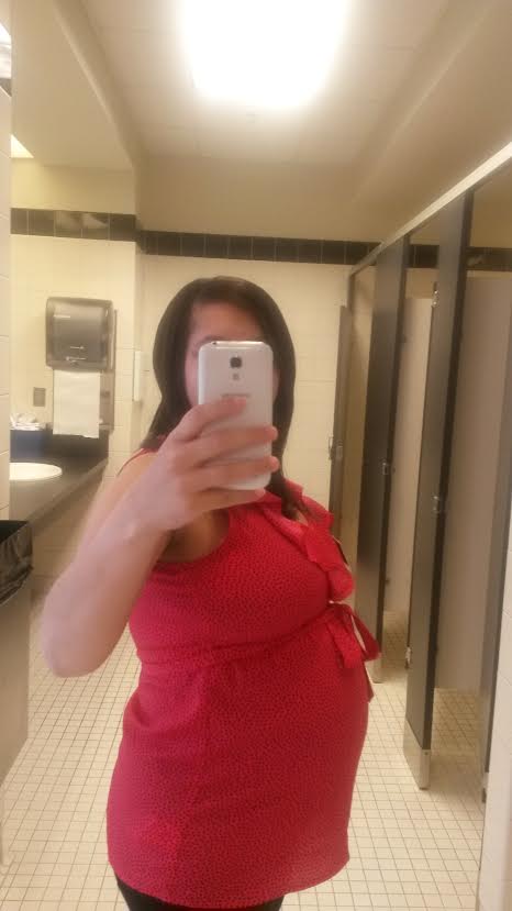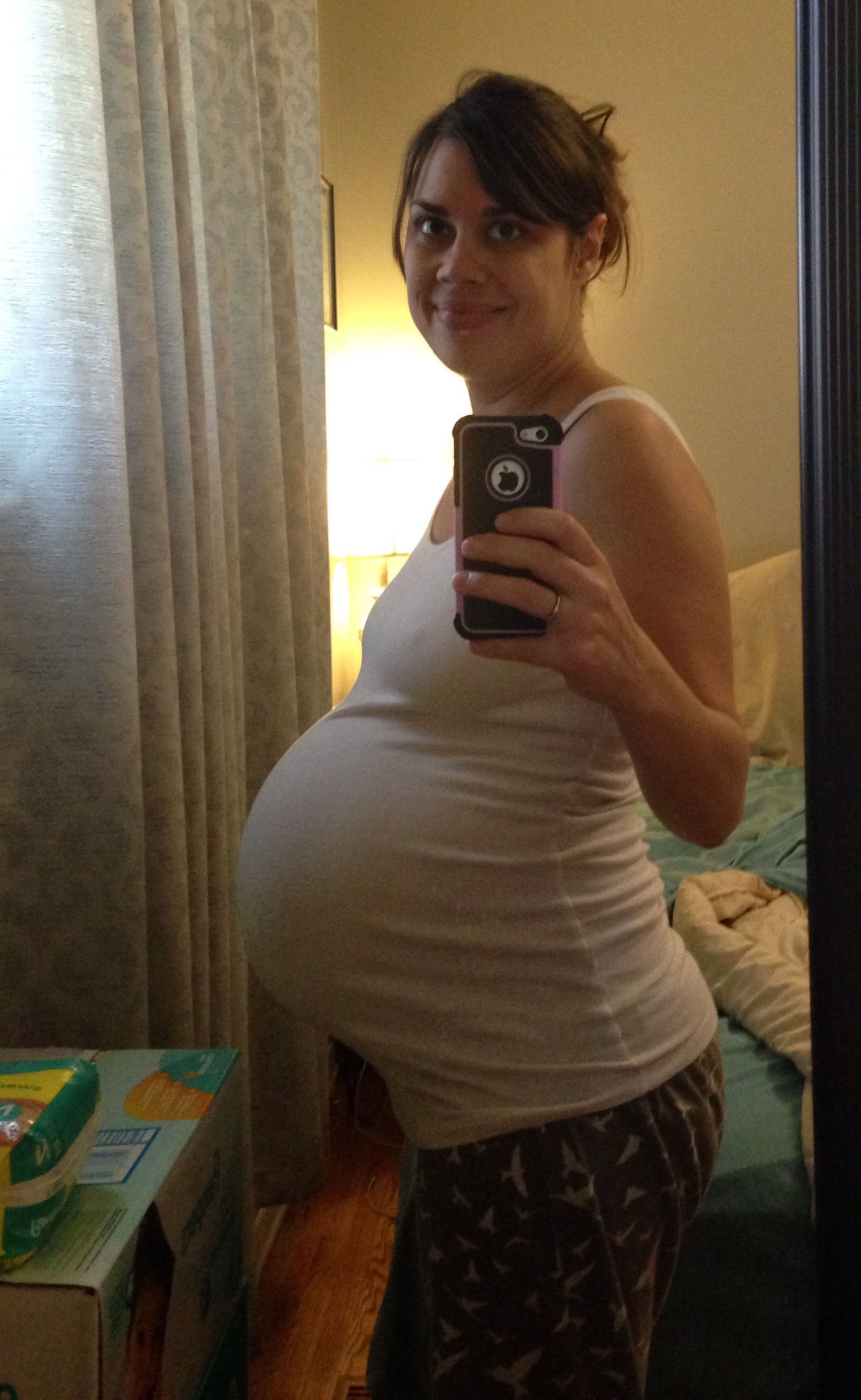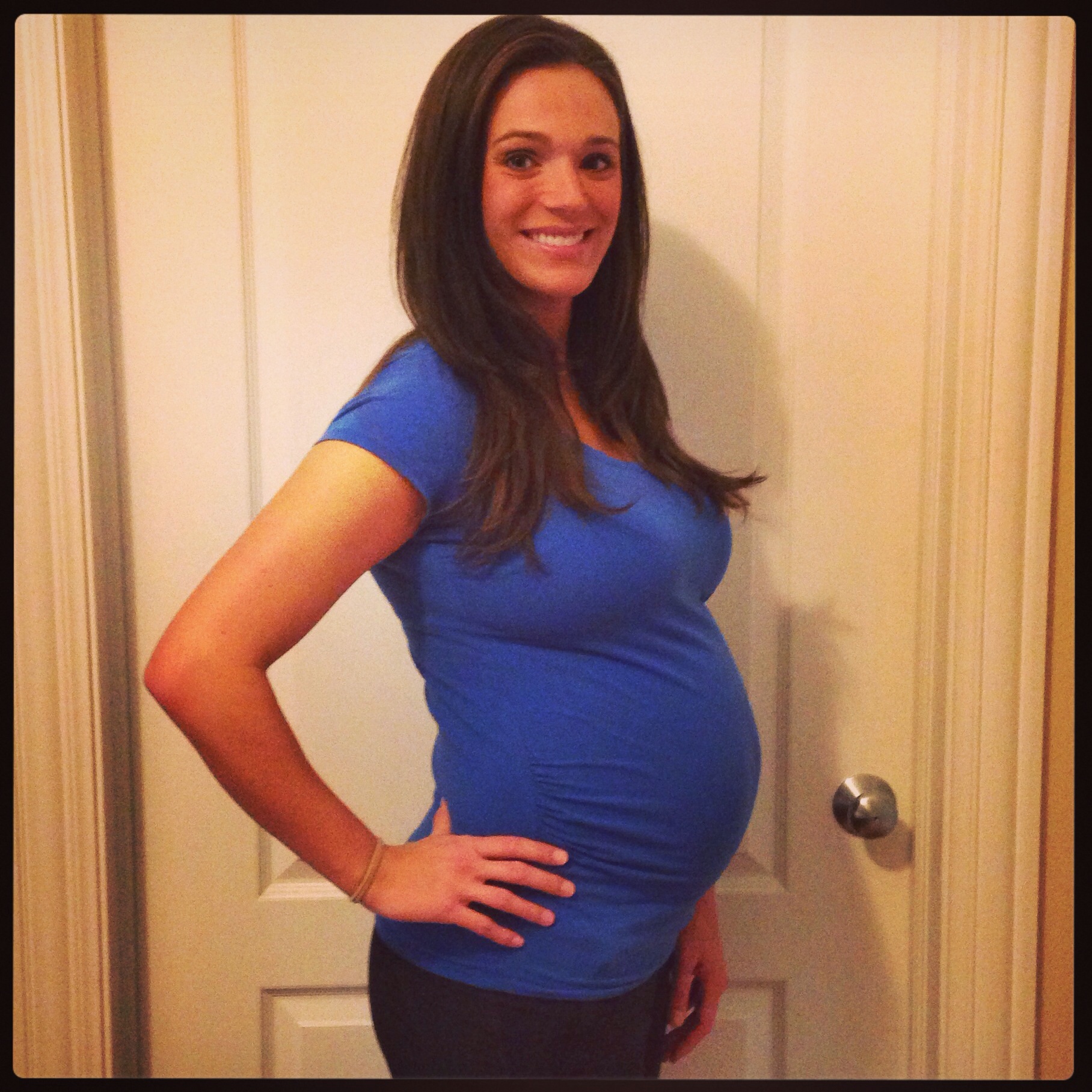 37+1 compared to 24w when I wore the same shirt for hdbd. I've grown quite a bit since then... lol. My boobs look smaller now but that's probably just in relation to the ever growing bump!