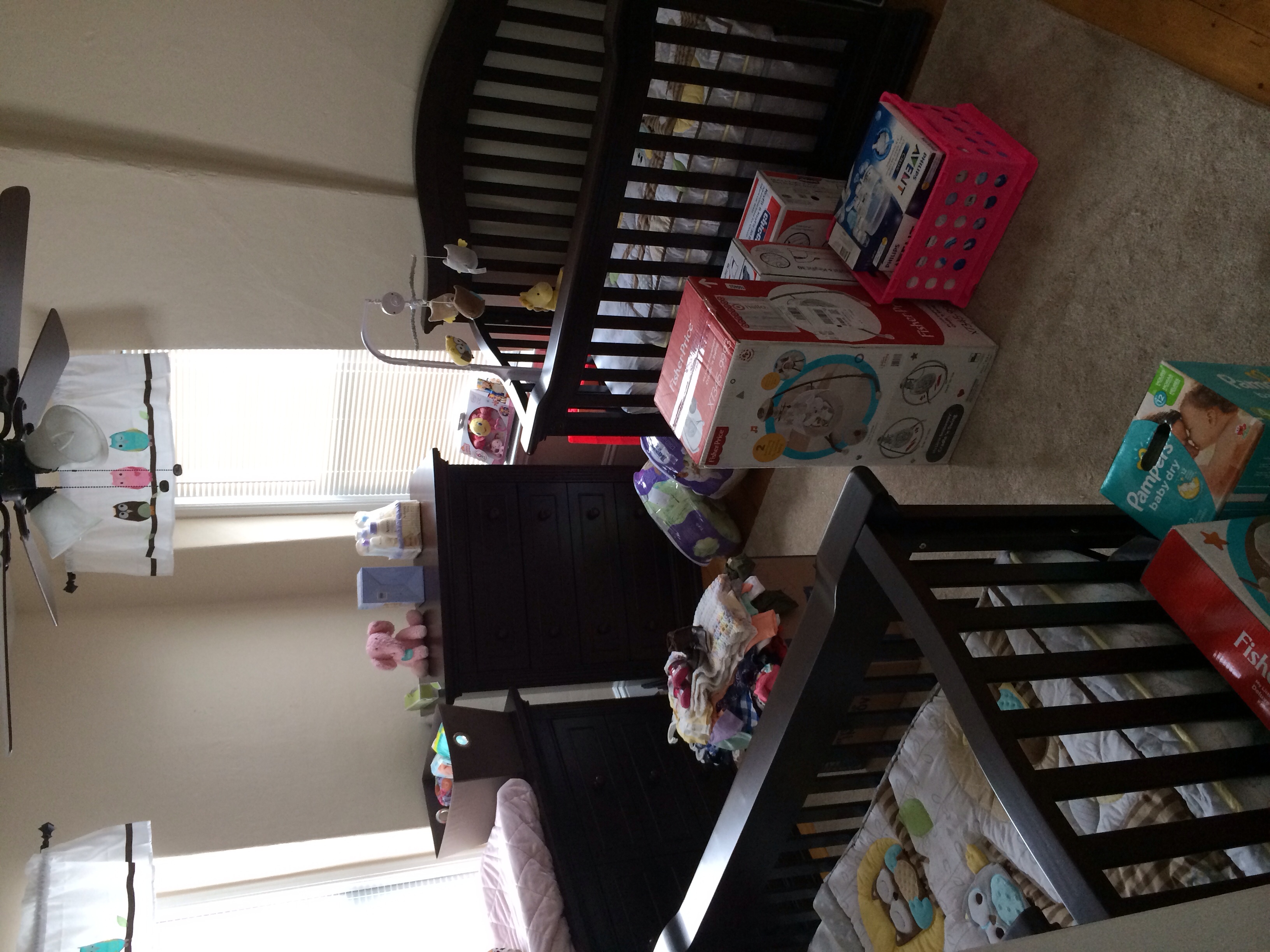 Finally started putting the big things together so now our living room has a swing and pnp and the rnp is in our room. Finally hitting me she's coming some time in the next 4 weeks. Might be time to get her room finished and clothes washed.