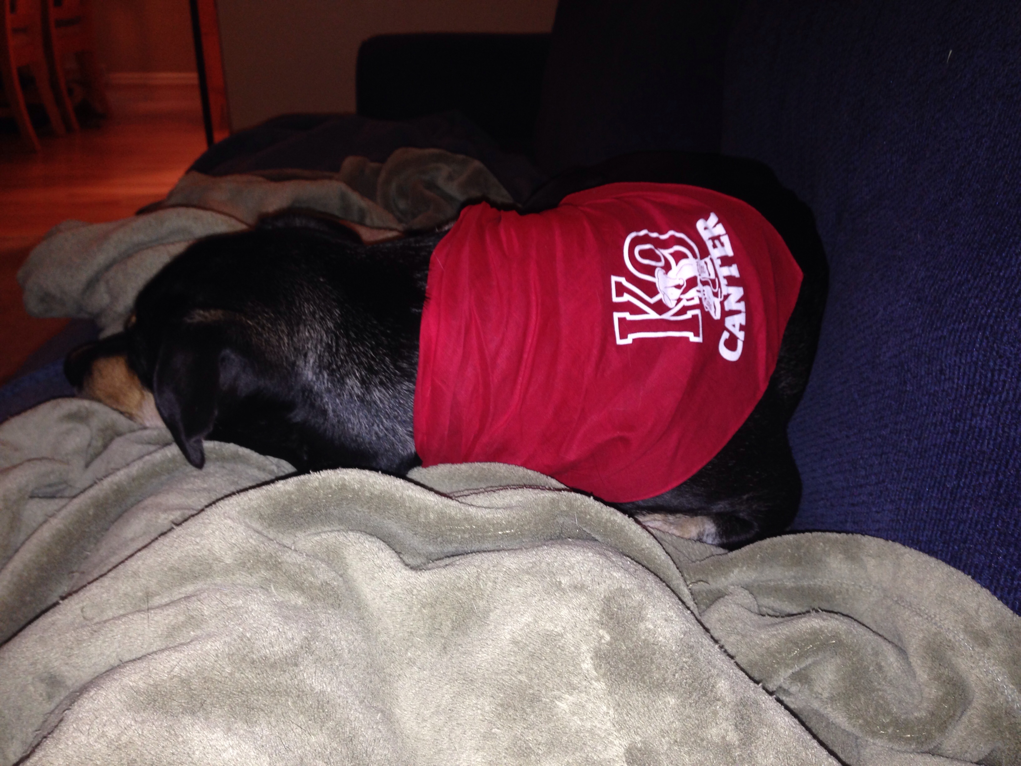Now AW time! Posting a picture of our young pup resting post-race with her bandana still on after our 5k this morning. Probably my last race until 2015 (hopefully not my last run...) and figured it was good mom and daughter time even if she did pull on the leash for 90% of the run! Plus, the race was called the K-9 Canter, I would of felt SO guilty going without her.