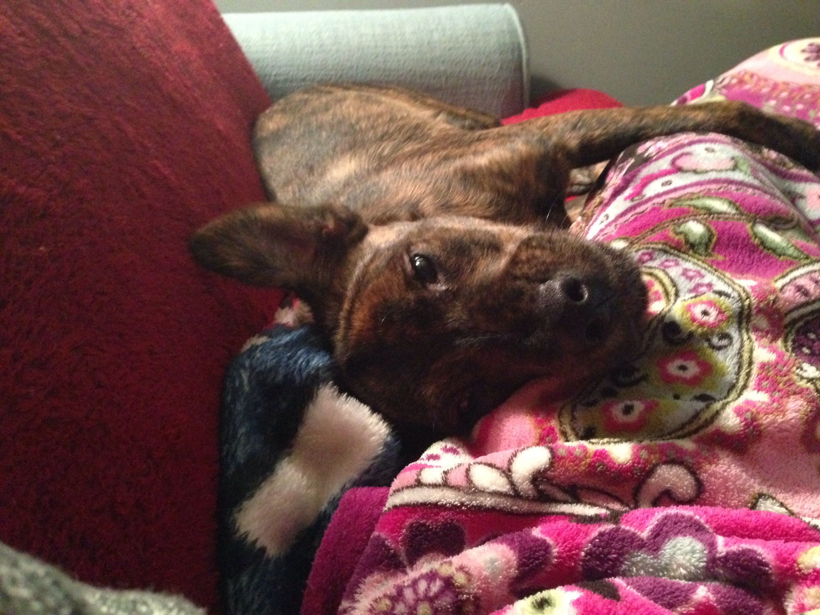 My puppy is stuck to my side like snuggly glue . He's normally crazy all the time and running around the house. All weekend I've been crazy nauseous and pretty much stuck on the couch and he's been right next to me the entire time.