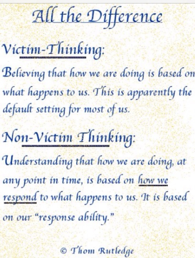 When is one culpable for there own circumstance...And own thinking? If there is a sense of culpability and any amount of emotional intelligence then the process of filtering out judgements makes us personally responsible for changing the path of our own lives... Personally responsible in changing the daily view and script of our own lives.