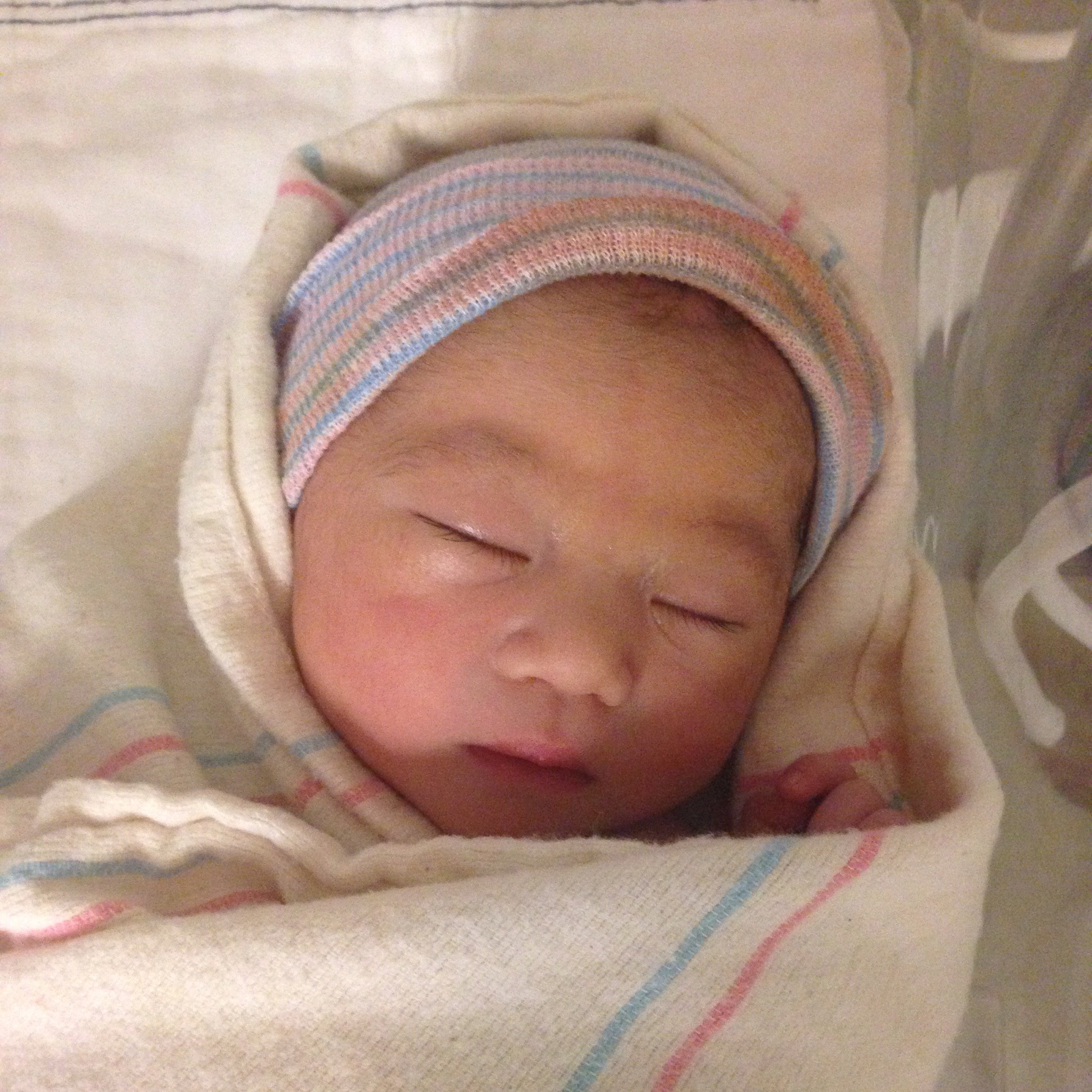 Short version: Baby girl 安敏 was born Sunday 10/12/14 at 2:44 AM, a day short of her due date. 6 lbs. 6 oz. 20.25 inches. Apgars 8 and 9.