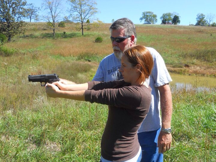 • I remember once when I was in high school, my parents were gone and I thought I heard the front door open. I didn't have anything around me, so I grabbed a pen and went to investigate. Shortly after this was when Dh taught me how to shoot.