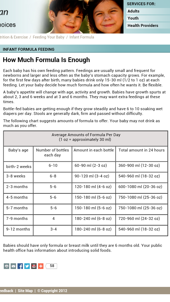I've been following a Canadian chart and it says 6oz is okay now. I'm scared she won't drop a bottle if we upped it, though. That gets expensive!