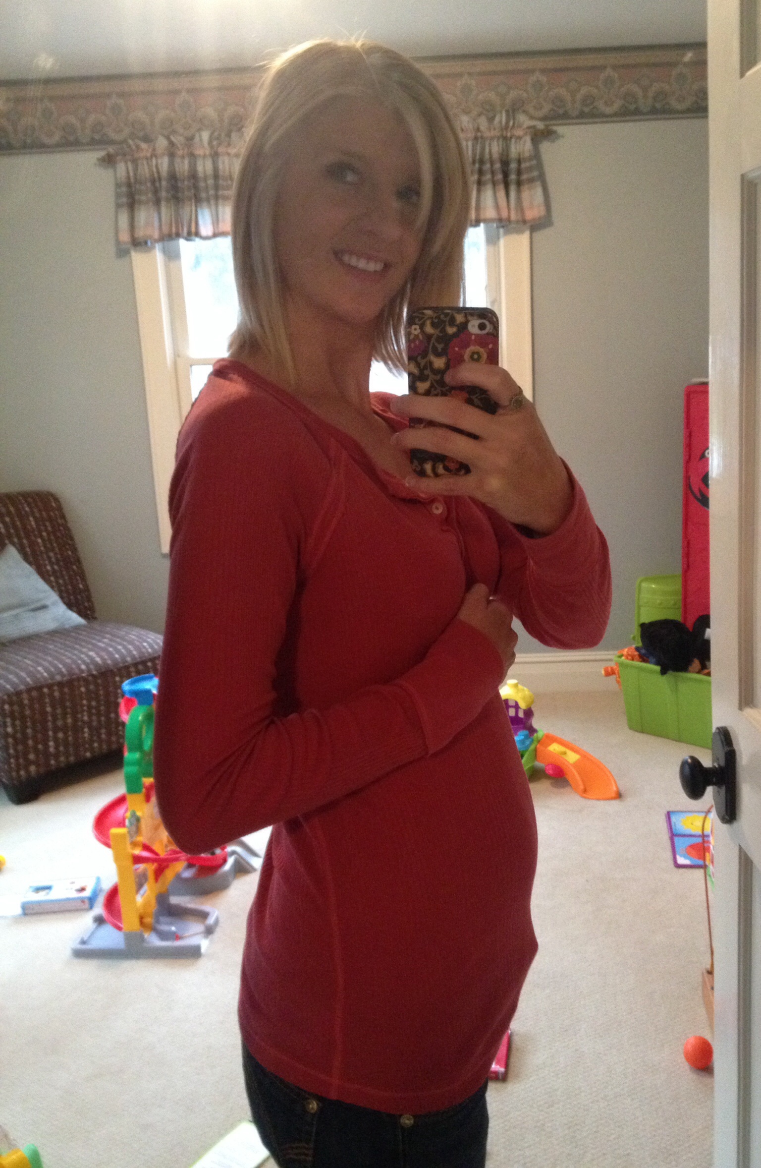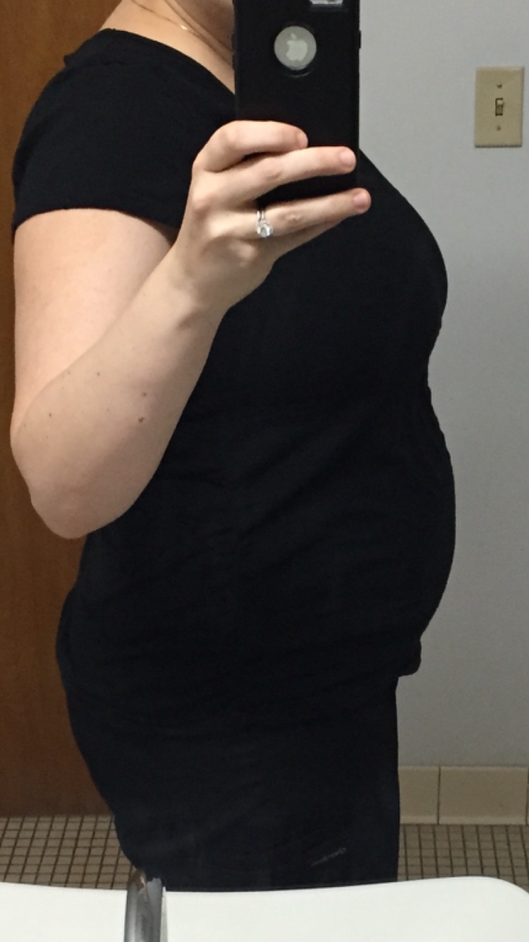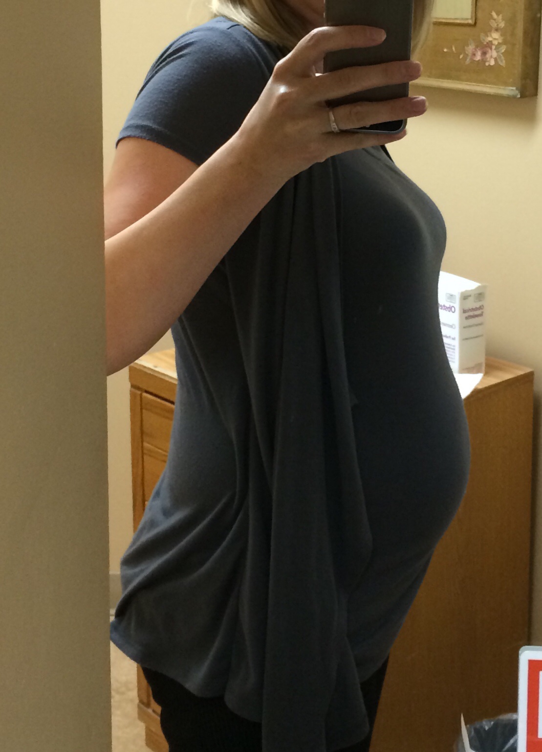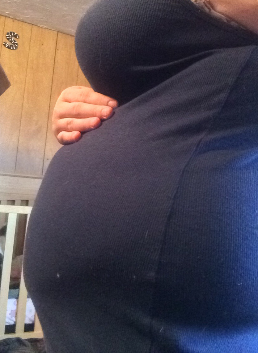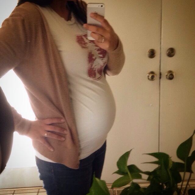 I'm wearing a non-maternity shirt but I think these days are soon to be over.