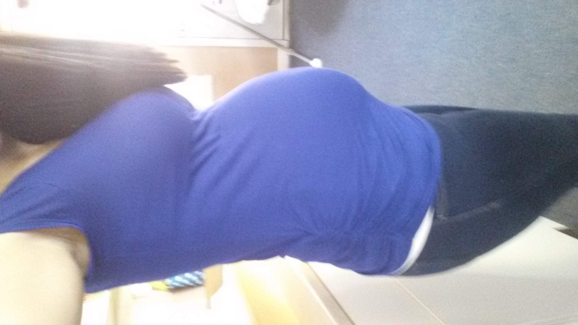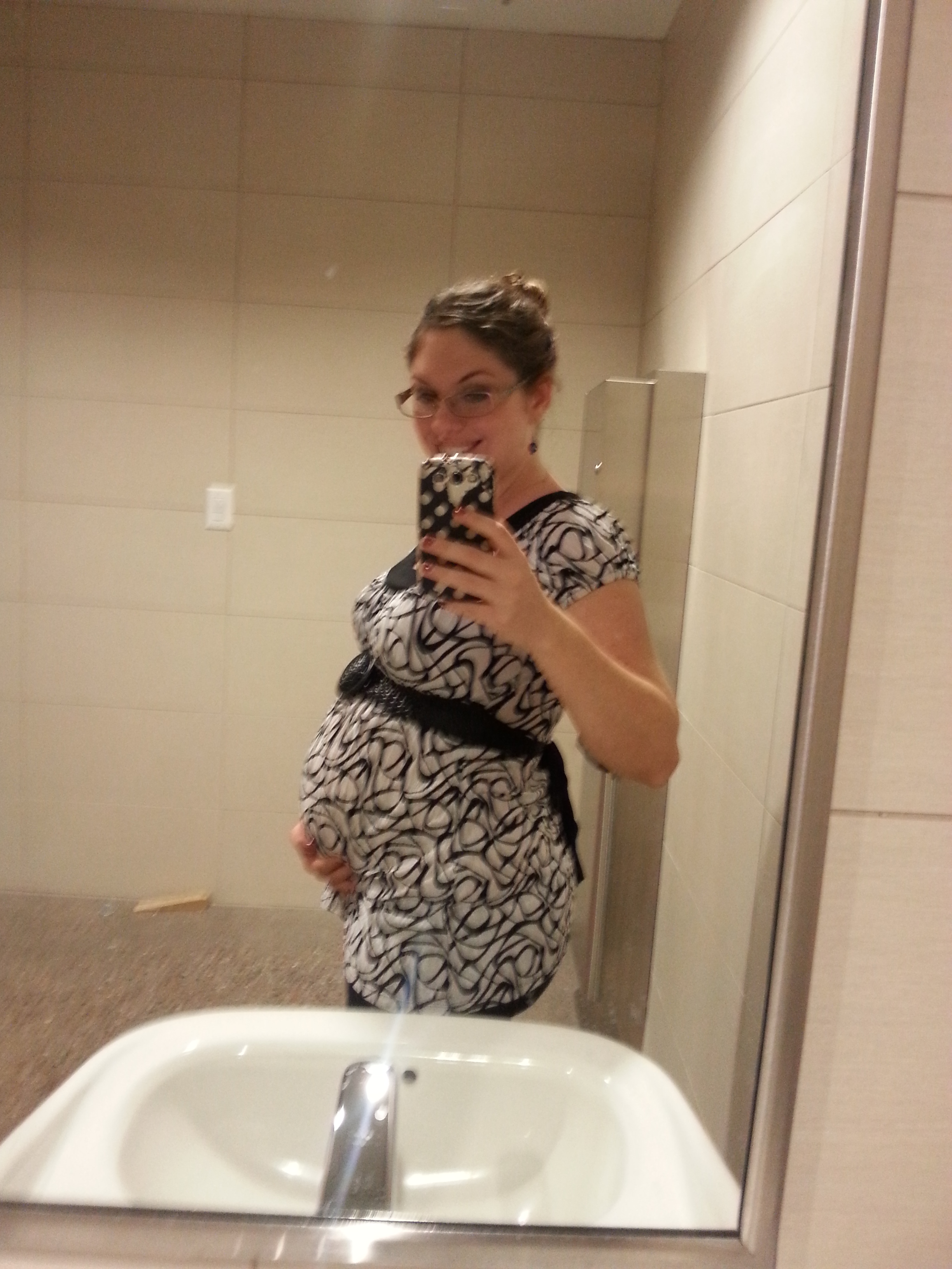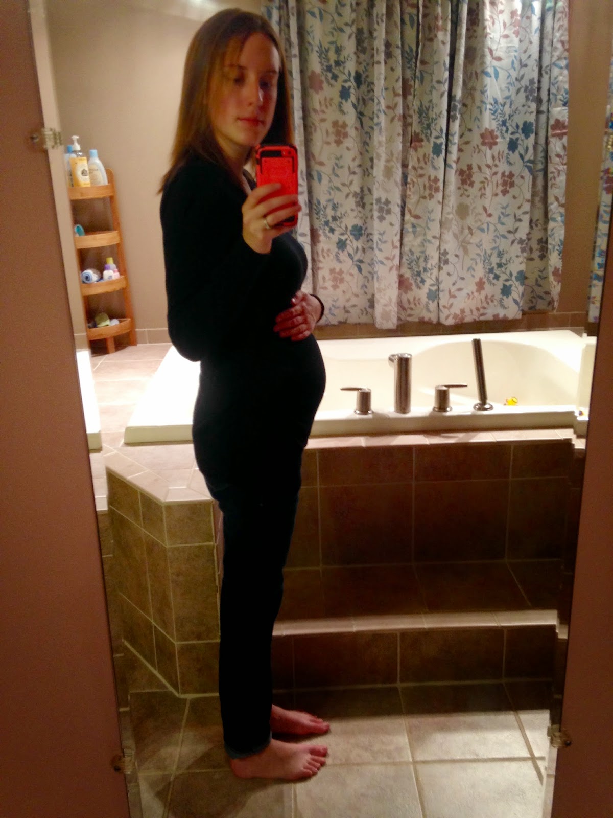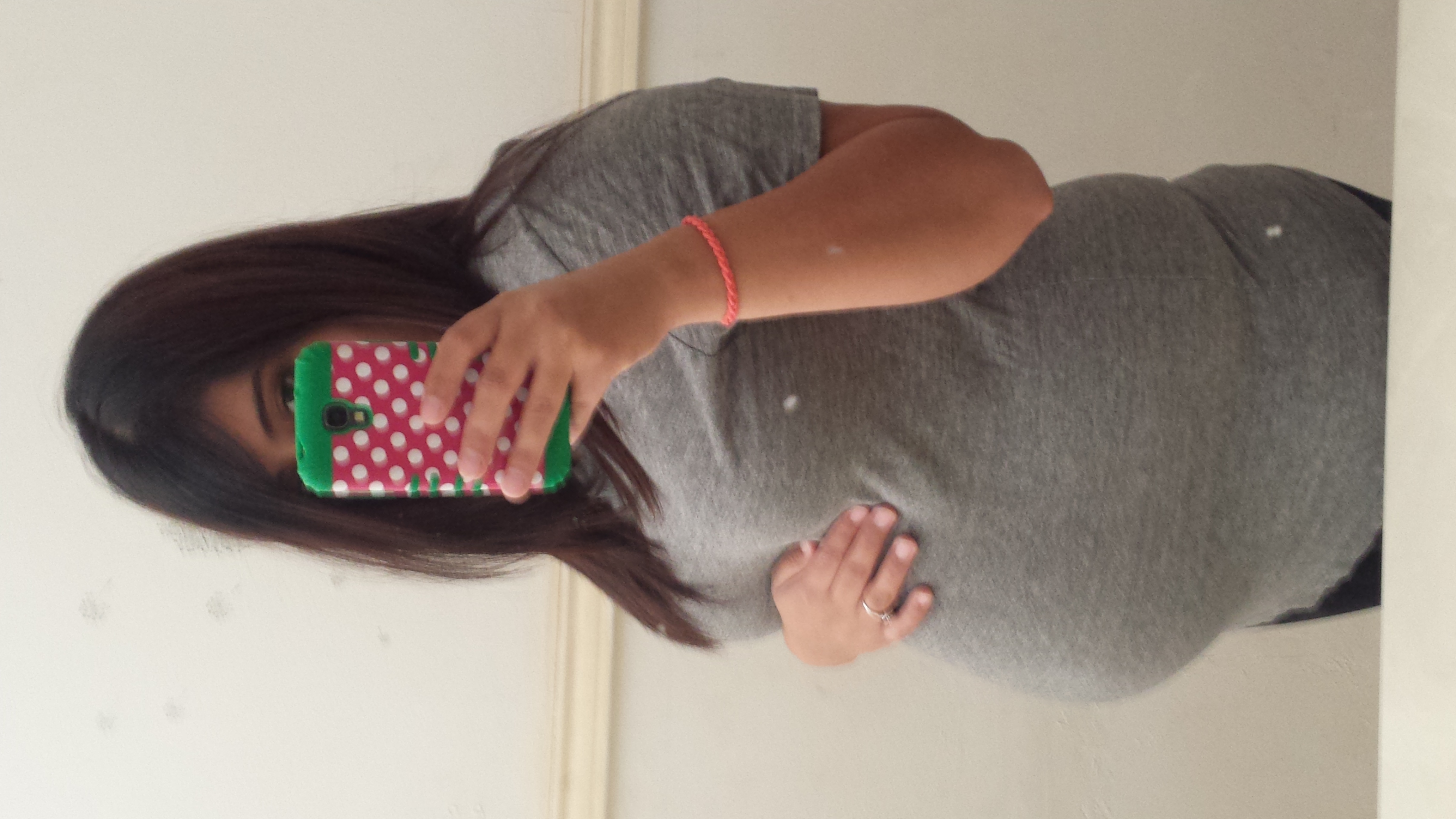 I'm wearing a non-maternity shirt but I think these days are soon to be over.