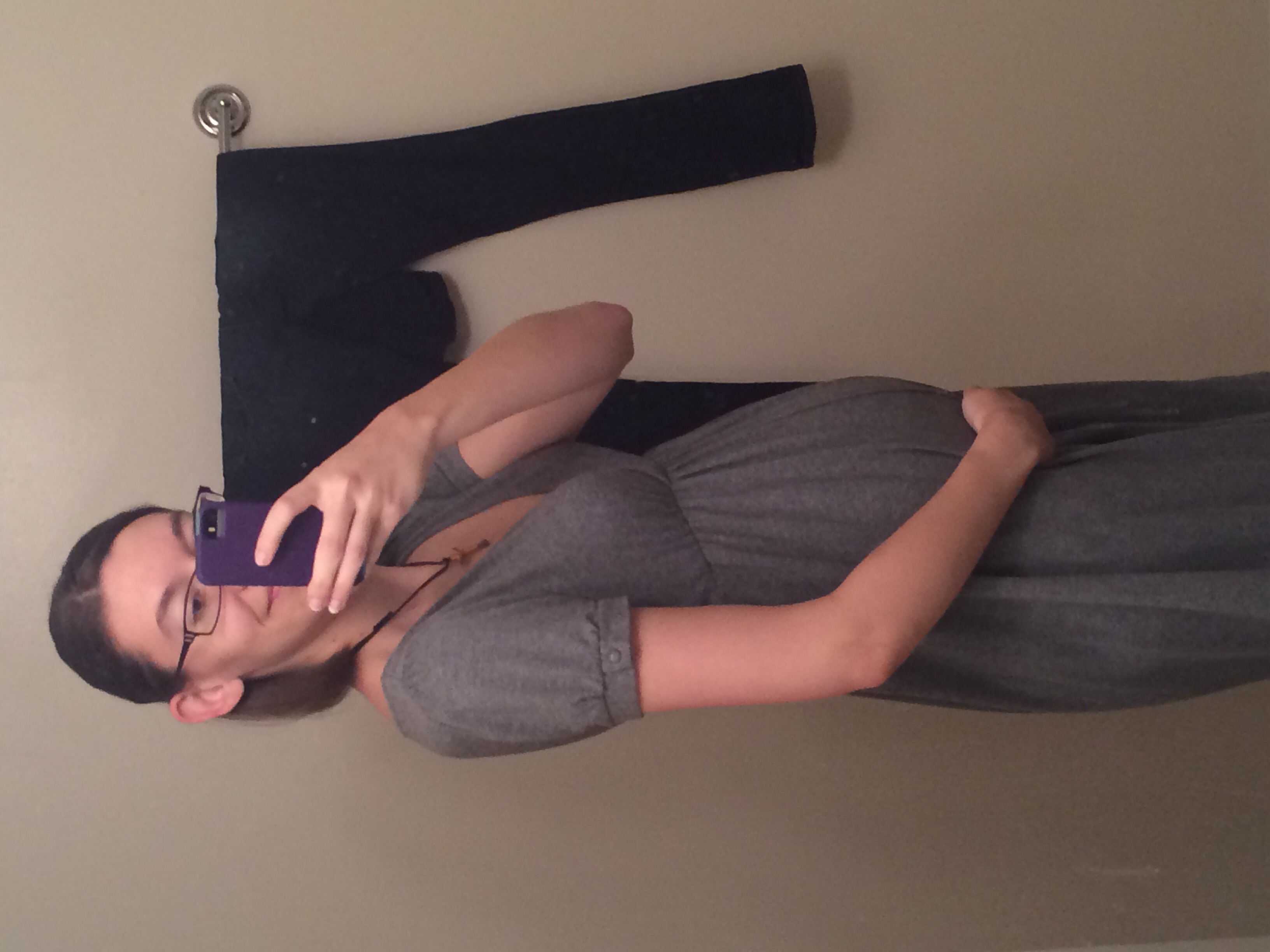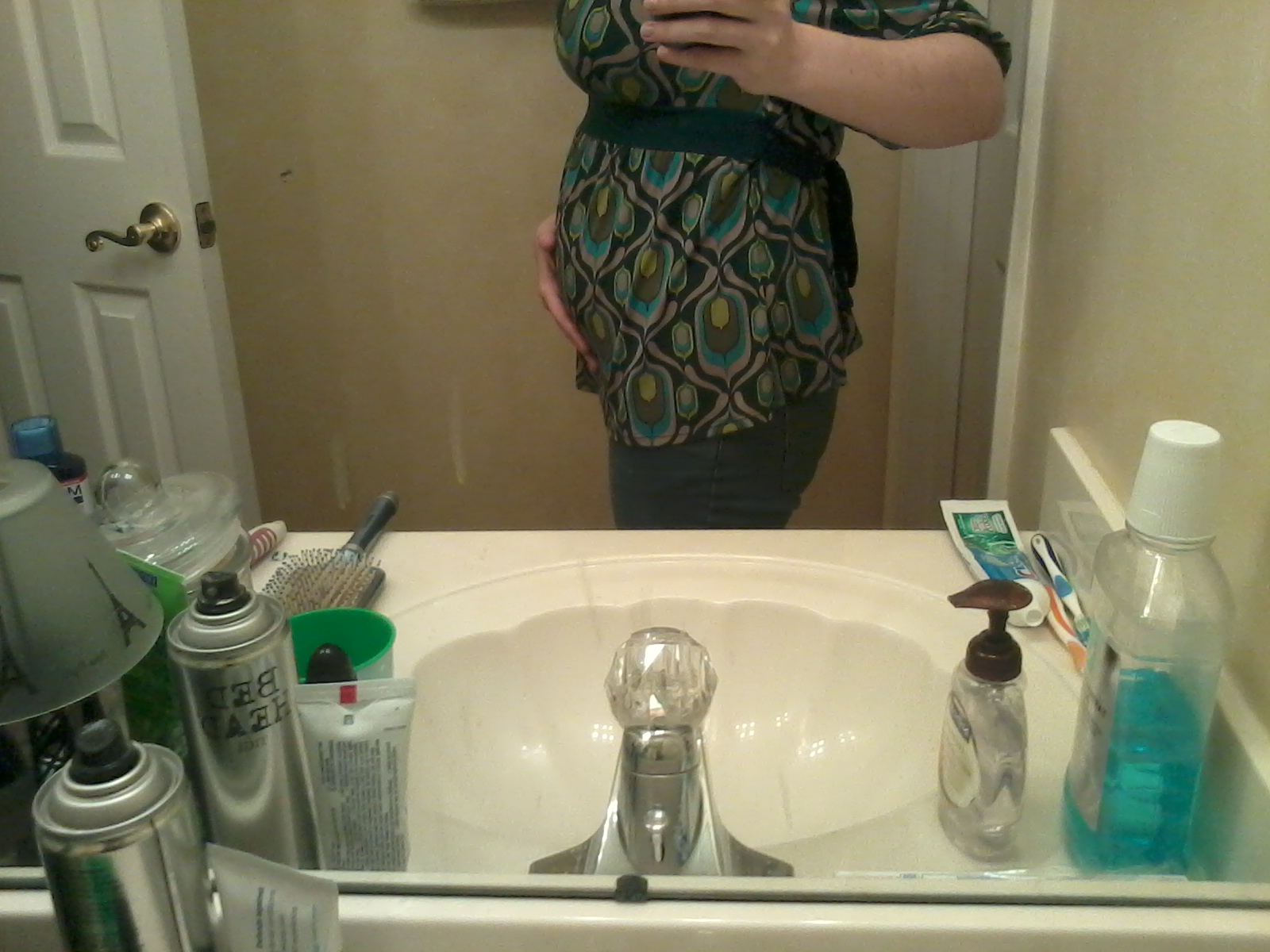 I have a bad cold, I threw on whatever clothes I could find so I'm wearing an ill-fitting shirt (ugh, I NEED more maternity shirts but I don't have access to a maternity clothing store because my hometown sucks)... It's just not a good day for it but I will do better next week!