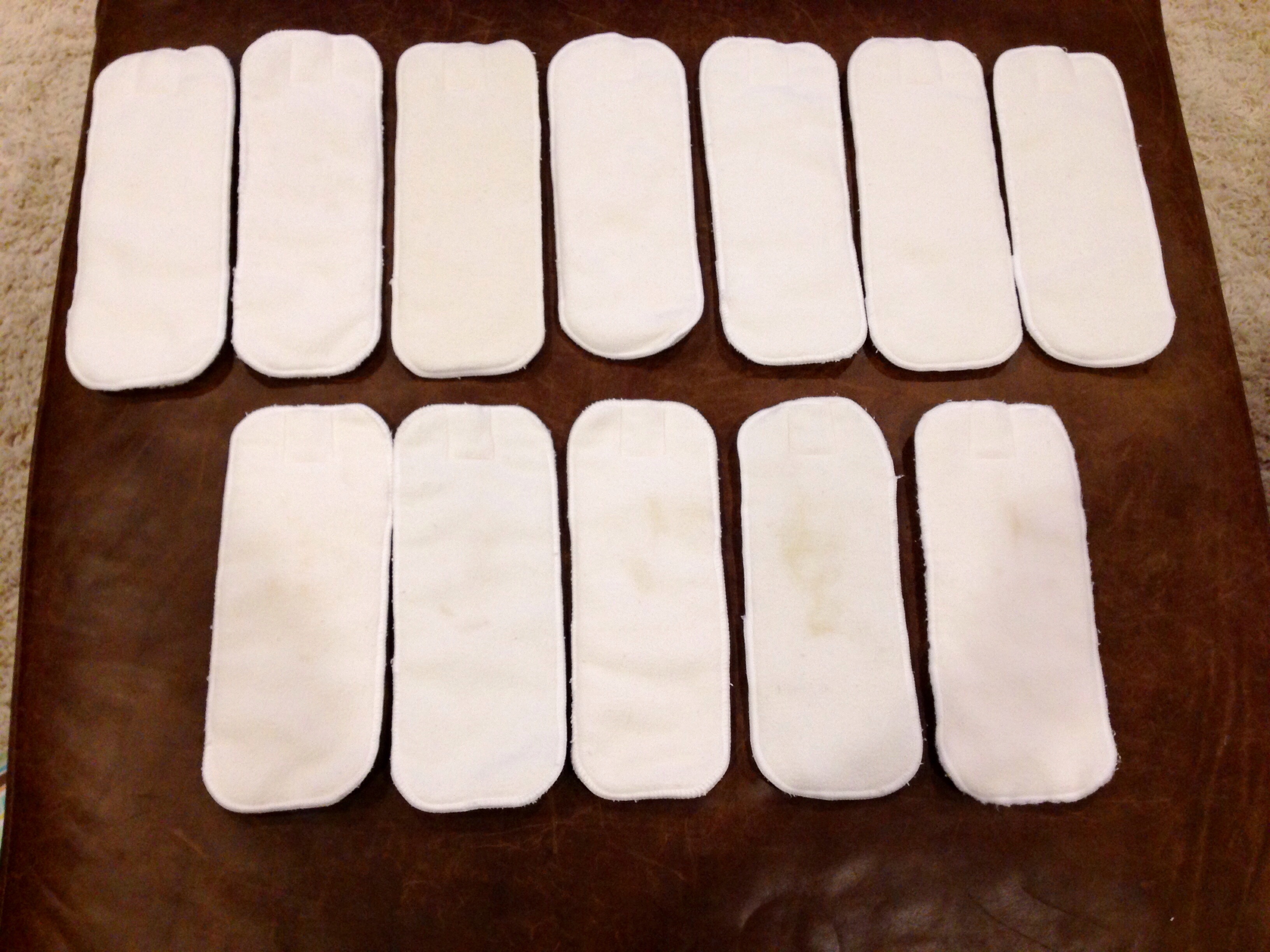 Top row: 7 EUC inserts. Prepped but never worn. Bottom row: 5 GUC inserts. Prepped, used 2-3 times, light staining. (Far right UC due to a hook and loop incident in the washer causing some "fuzz" around the edges)