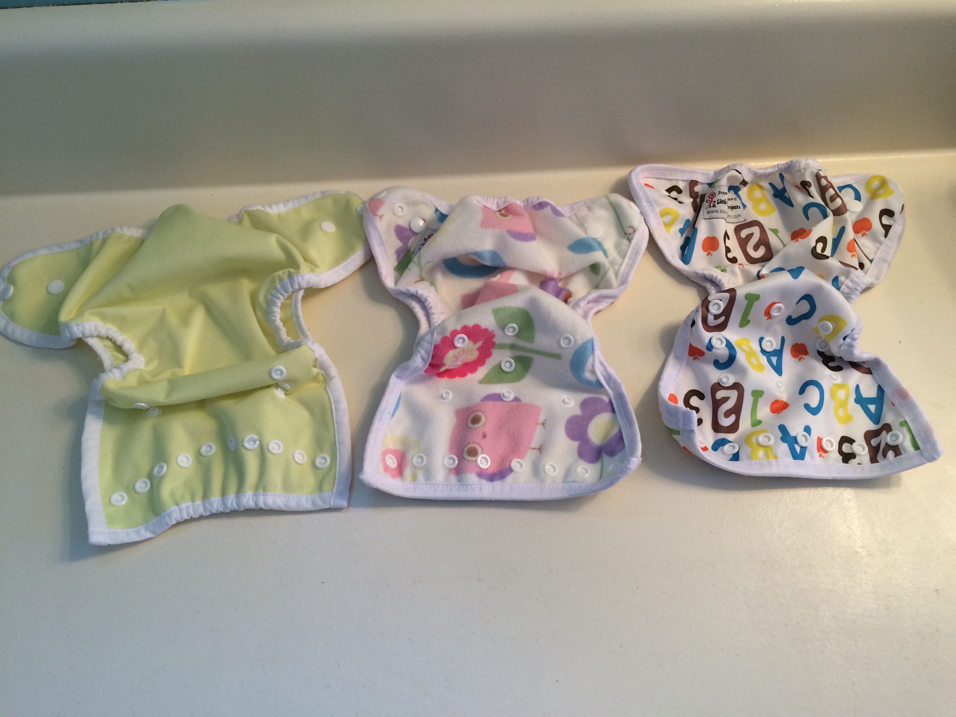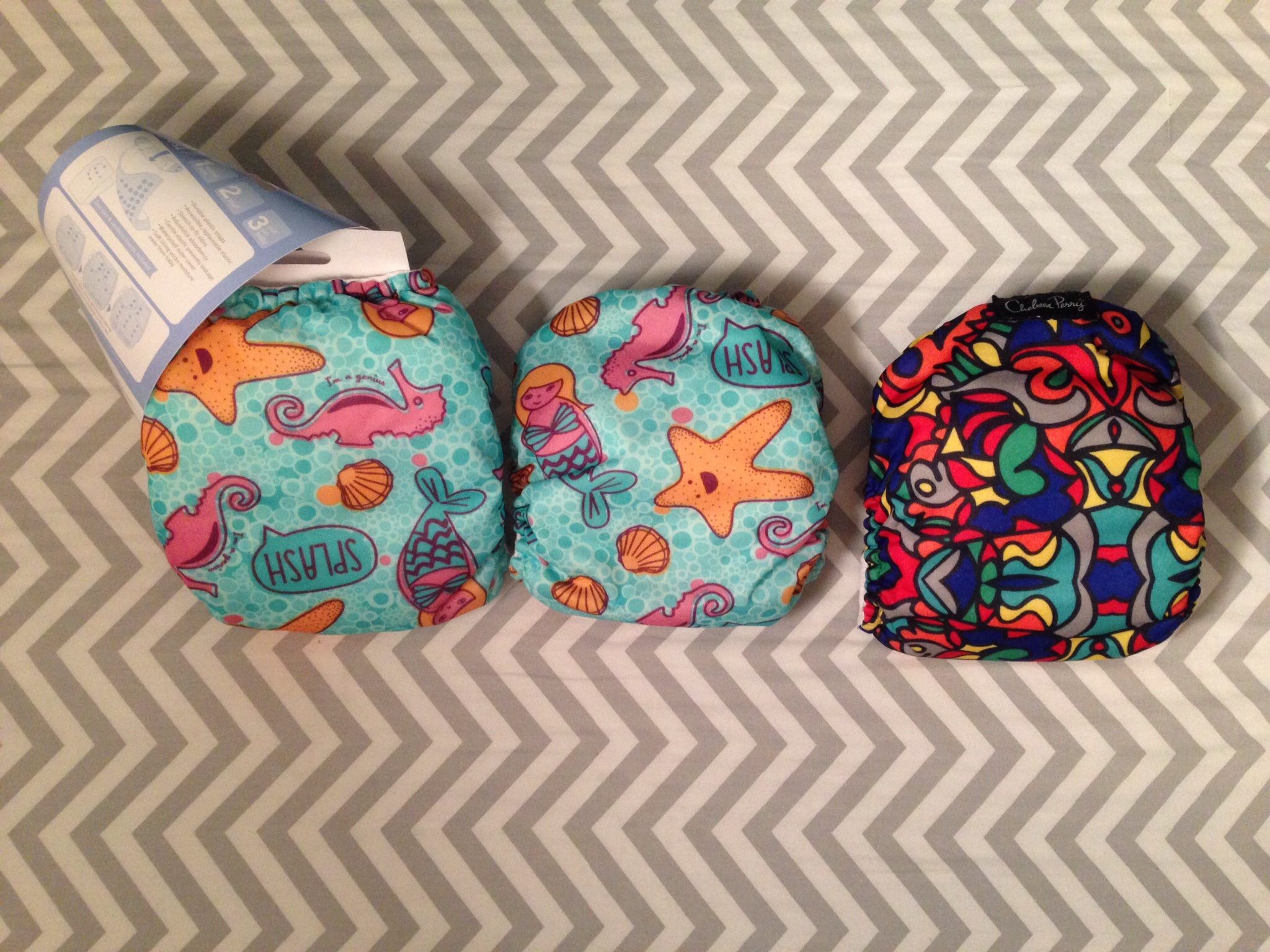 3 little green bamboo by kawaii. Only used a couple times but laundry tabs need replaced soon (Took a while for DH to remember to use them). Dark blue, pink zebra stripes, and blue zebra stripes. Can include a mf insert.