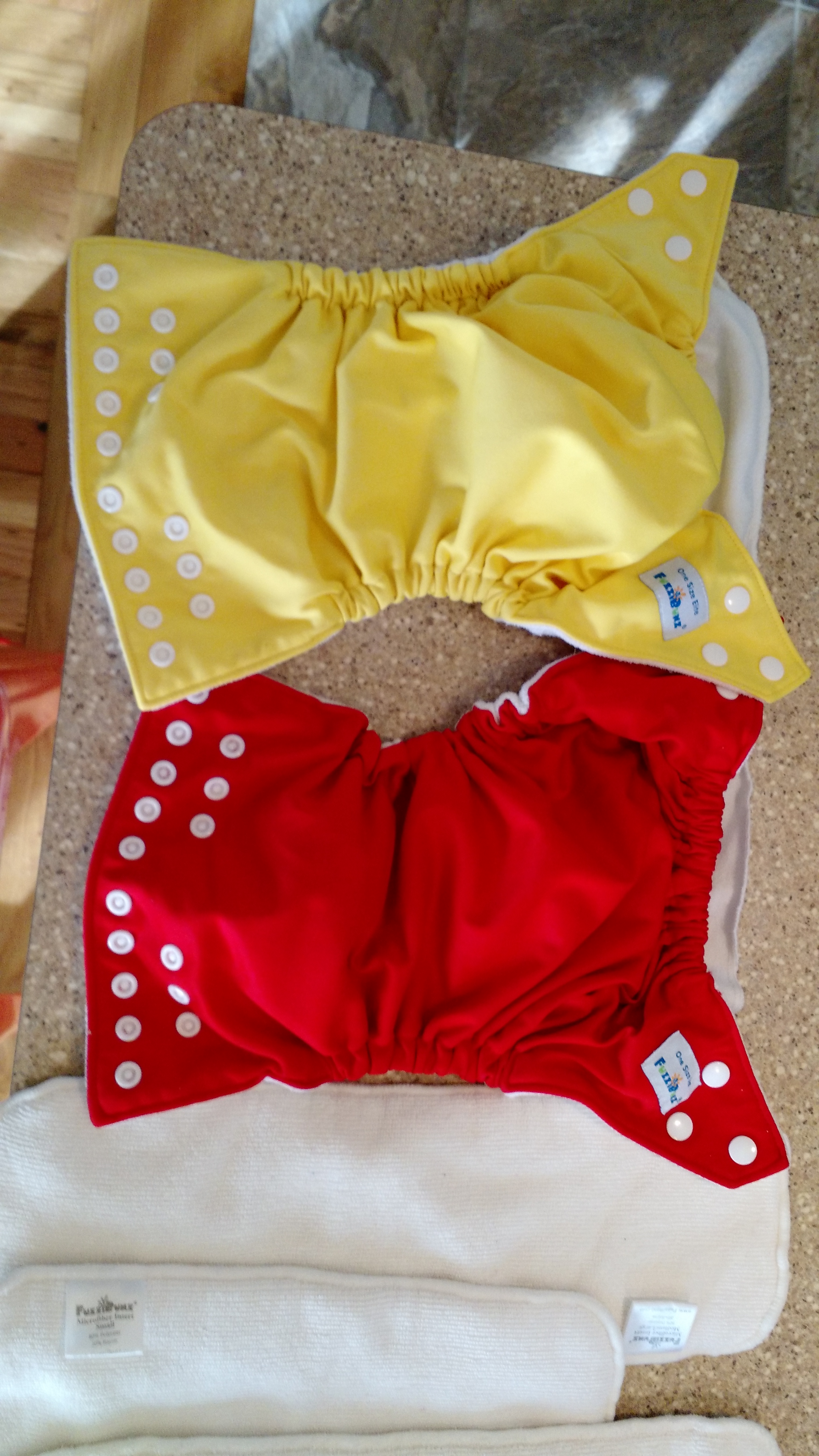 I have 12 prepped but not used Sunbaby XL 4-layer bamboo inserts (I bought them for the extra absorbency layer but idiotically didn't realize the l x w dimensions would be bigger too, so I won't be able to use them with my 4 week old for quite awhile. No fun.)