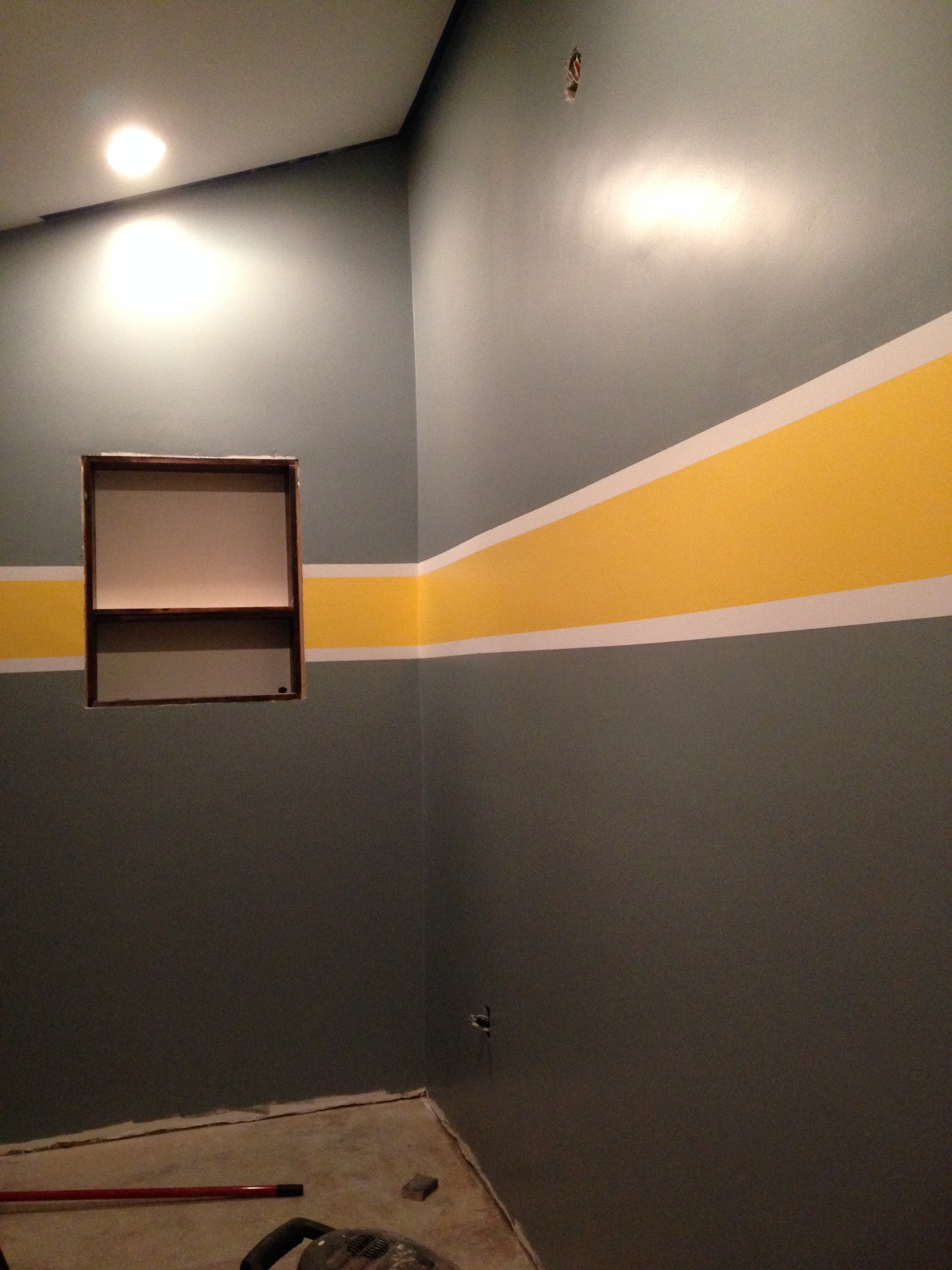 We have painted (okay just finished late last night) the nursery, with the exception of a few ceiling touch ups, and I just need the H to go up because I refuse to climb up the 10 foot ladder on the top to get to them. I haven't picked a "theme" yet..