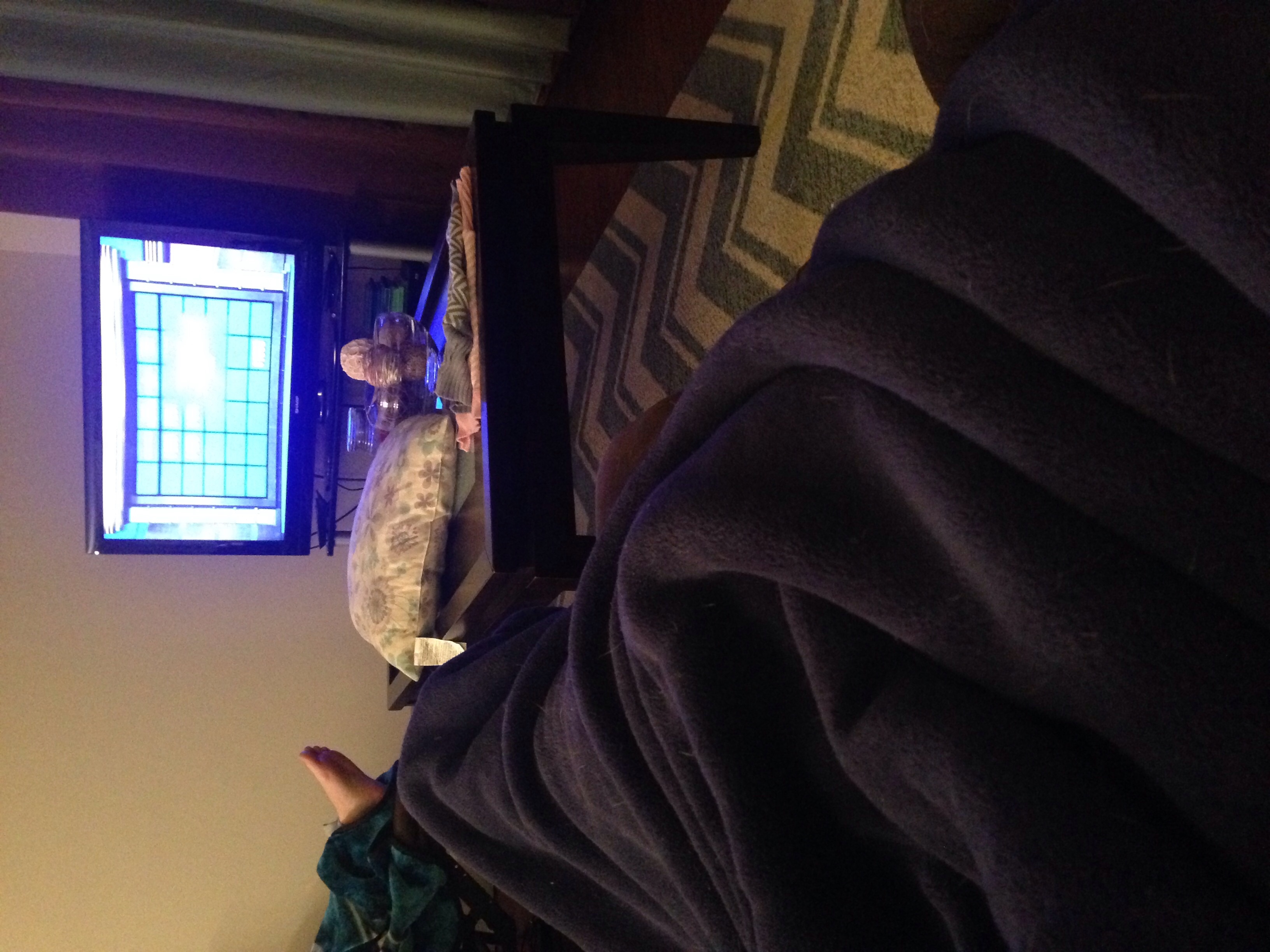 • In my pjs watching jeporady :) so exciting. Don't mind my husbands foot in the pic lol
