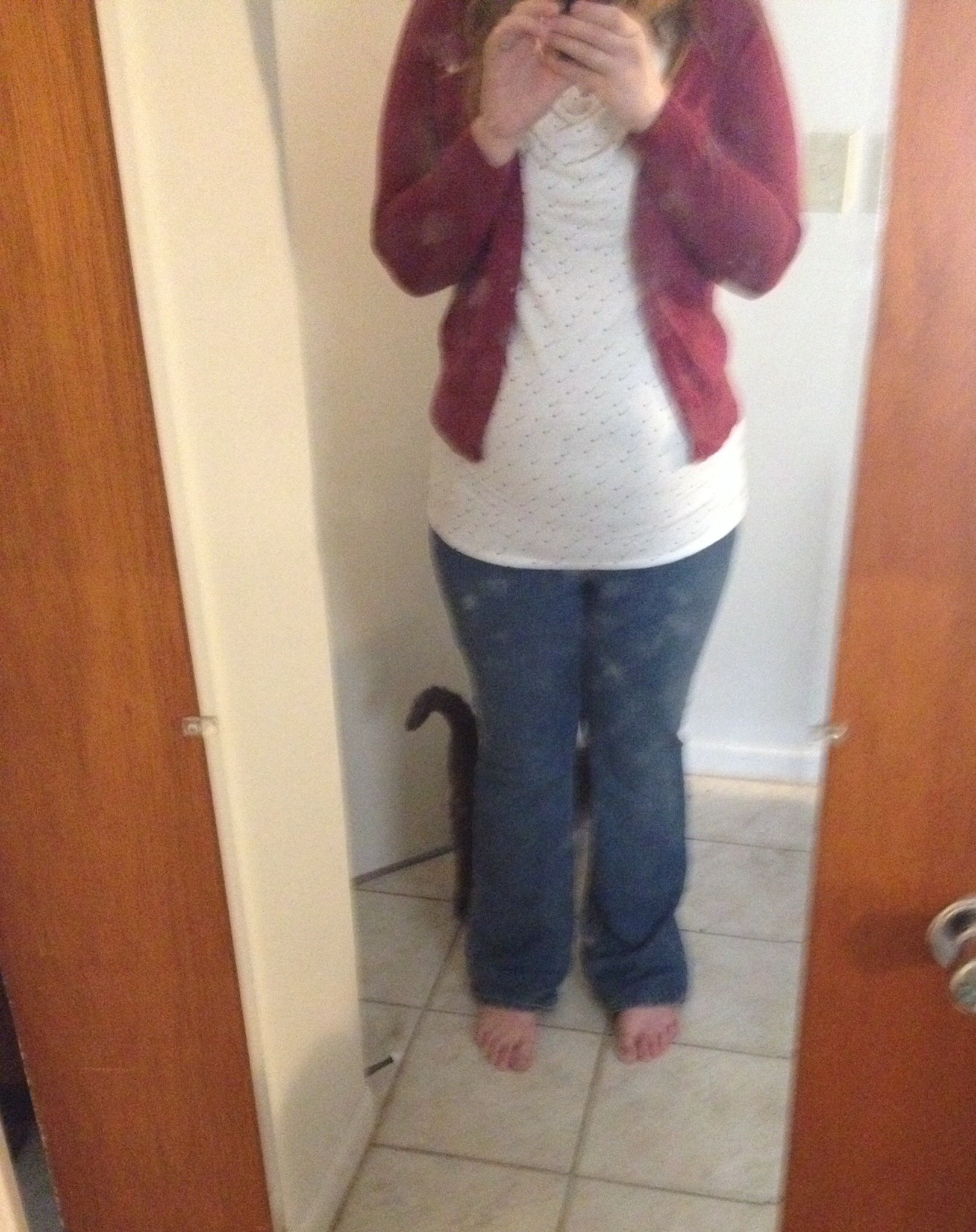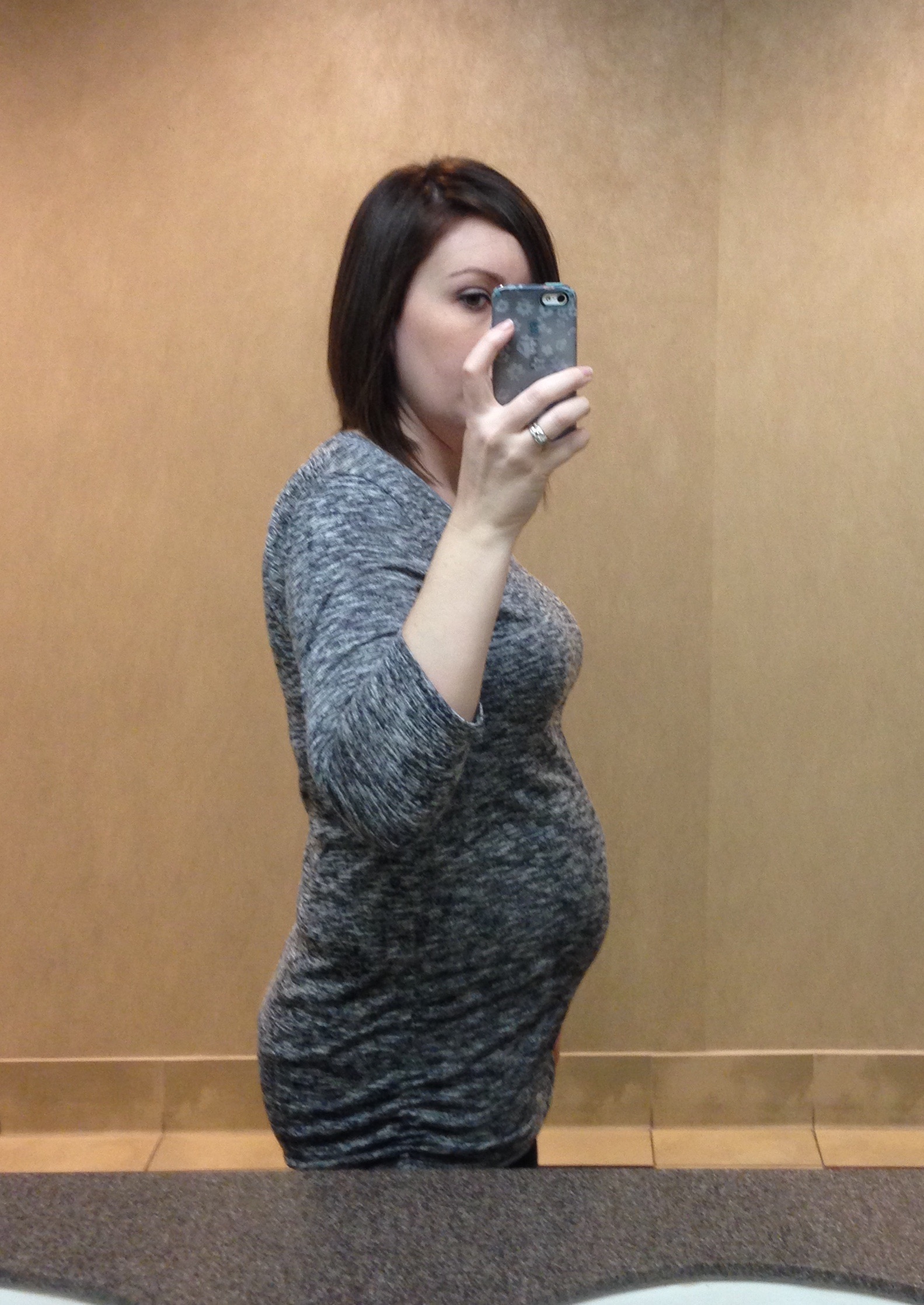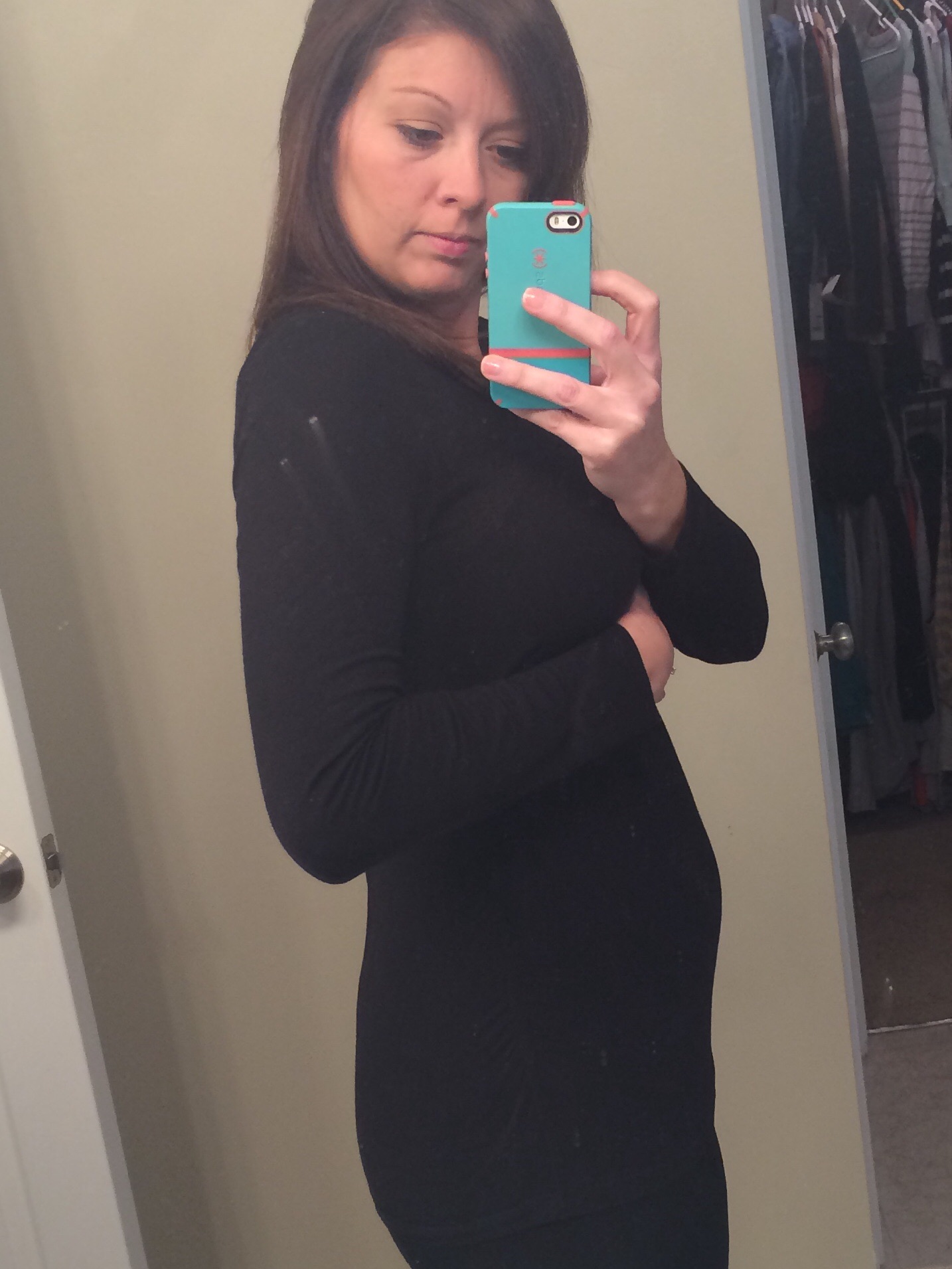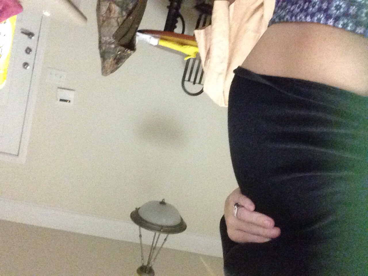 Pic is from this past weekend's visit to Chicago for a friend's bday, I was 17w 1d. It was also my first experience with maternity nylons. The bump hindered my approach to getting them on and I just ended up with a big snag before I even stepped out of the room.