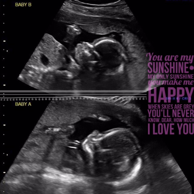 U/S yesterday and we have 2 healthy little girls! They're laying like they're in bunk beds with their heads on opposite sides. It's still so crazy to me that there's 2 tiny little people in there!