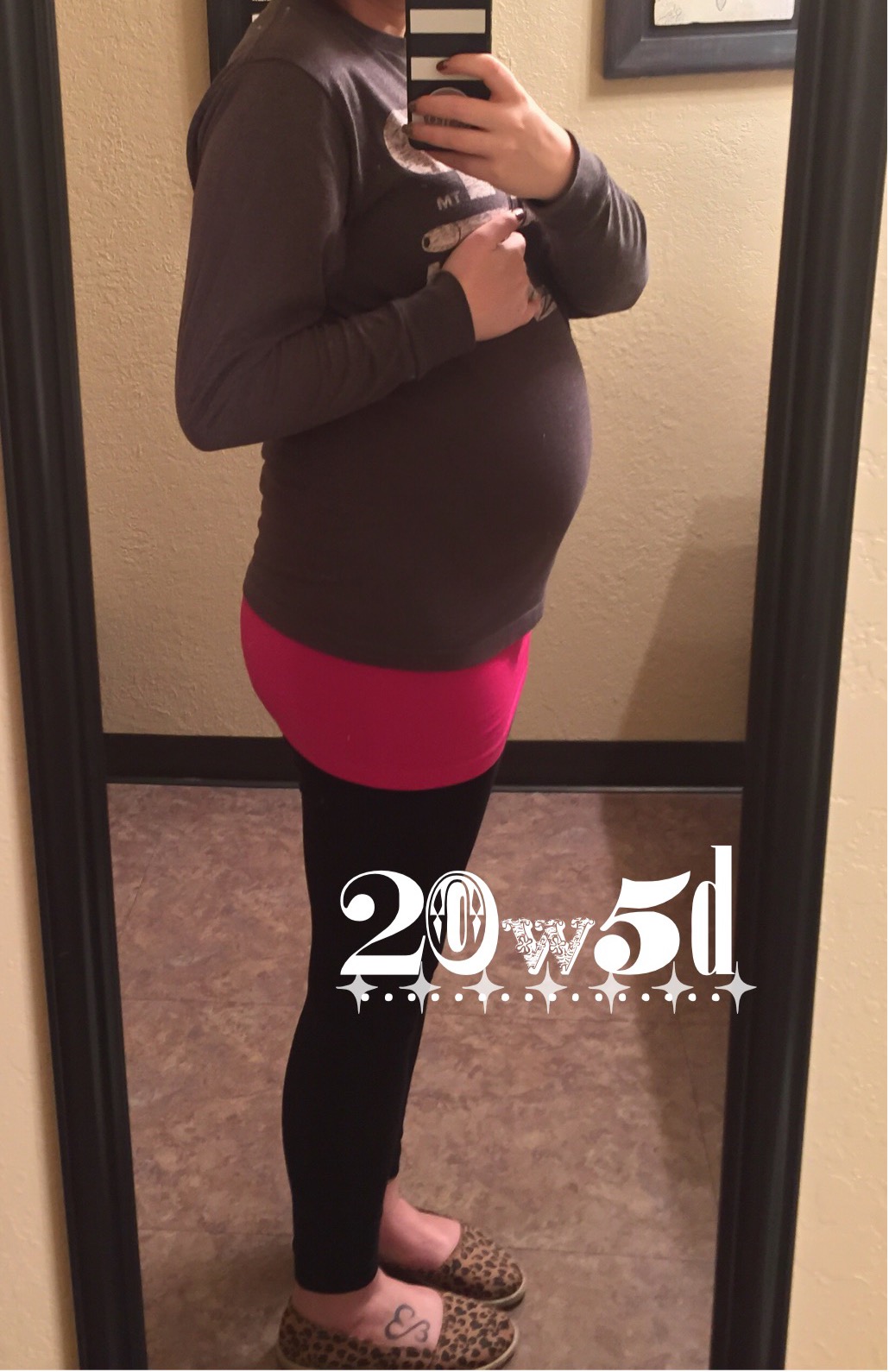 Here is my little one. No pics of me yet as I can't manage to take a good selfie. I will have my husband take one this weekend and post next week. 20 + 3 today. We had our ultrasound on Monday and stayed team green and still don't know what we are having. Everyone's pictures look great! Thanks everyone for sharing!
