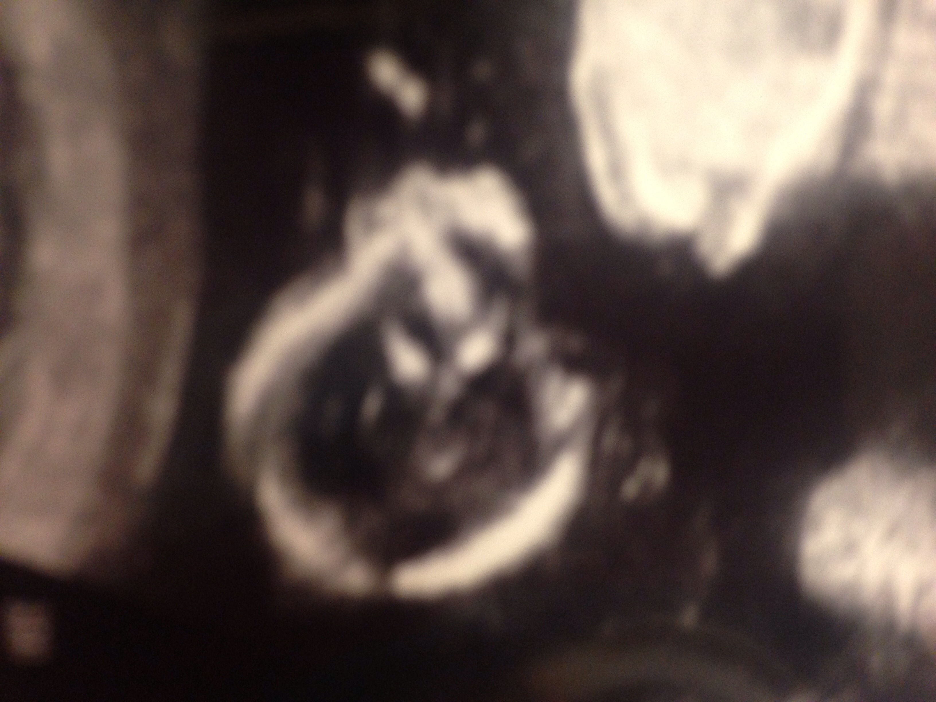 20 weeks tomorrow! Halfway there! Had my a/s yesterday and he curled up in a ball real tight and was not willing to uncurl to get all the pictures the dr needed so I get to go back in 2 weeks for another. But my little man did wave at us! Coolest thing ever.