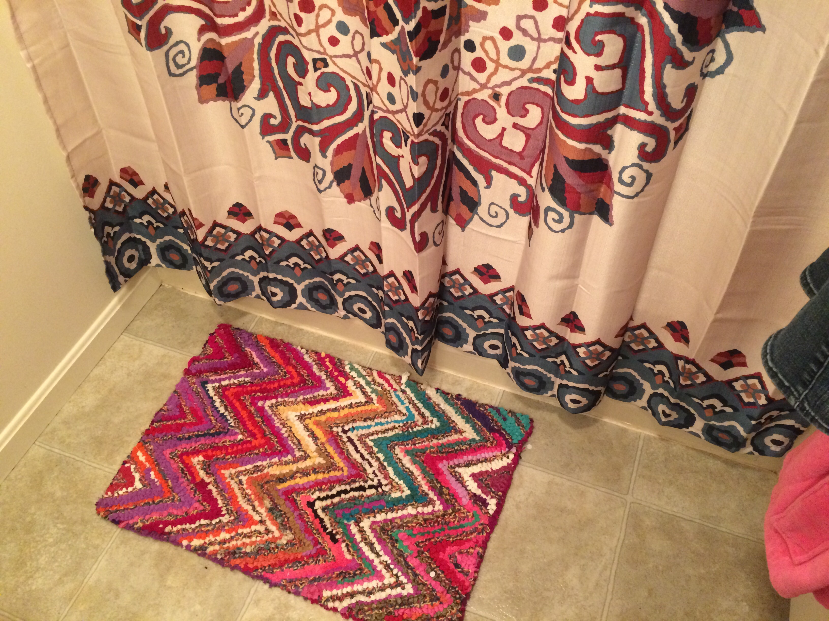 It all looks so good. And I did not take pictures because....oh my god it was bad. Ya know how I know? I had to scrub my tub for an hour. My fingertips are cracked! Here's my unmatching bath mat and curtain though
