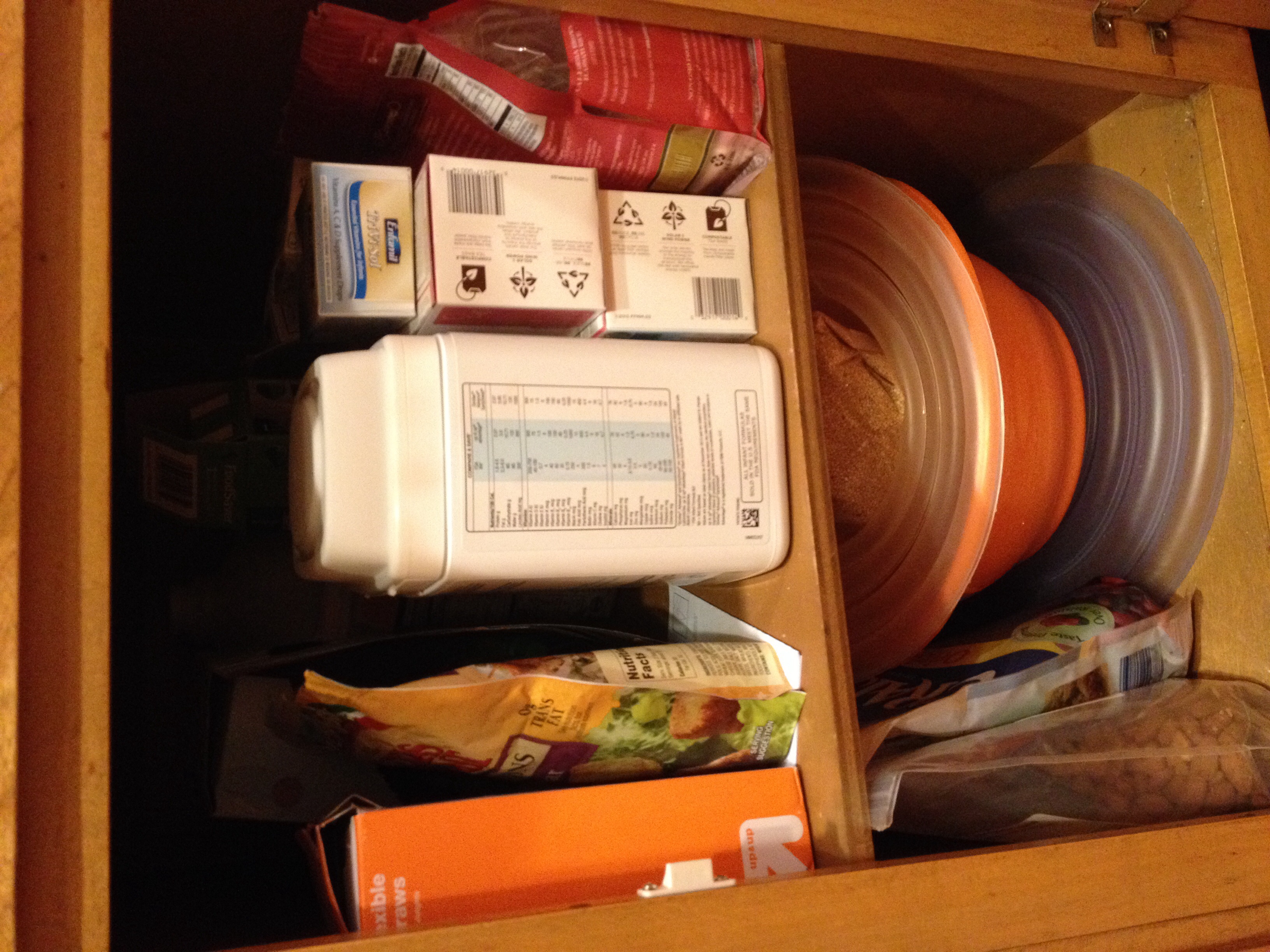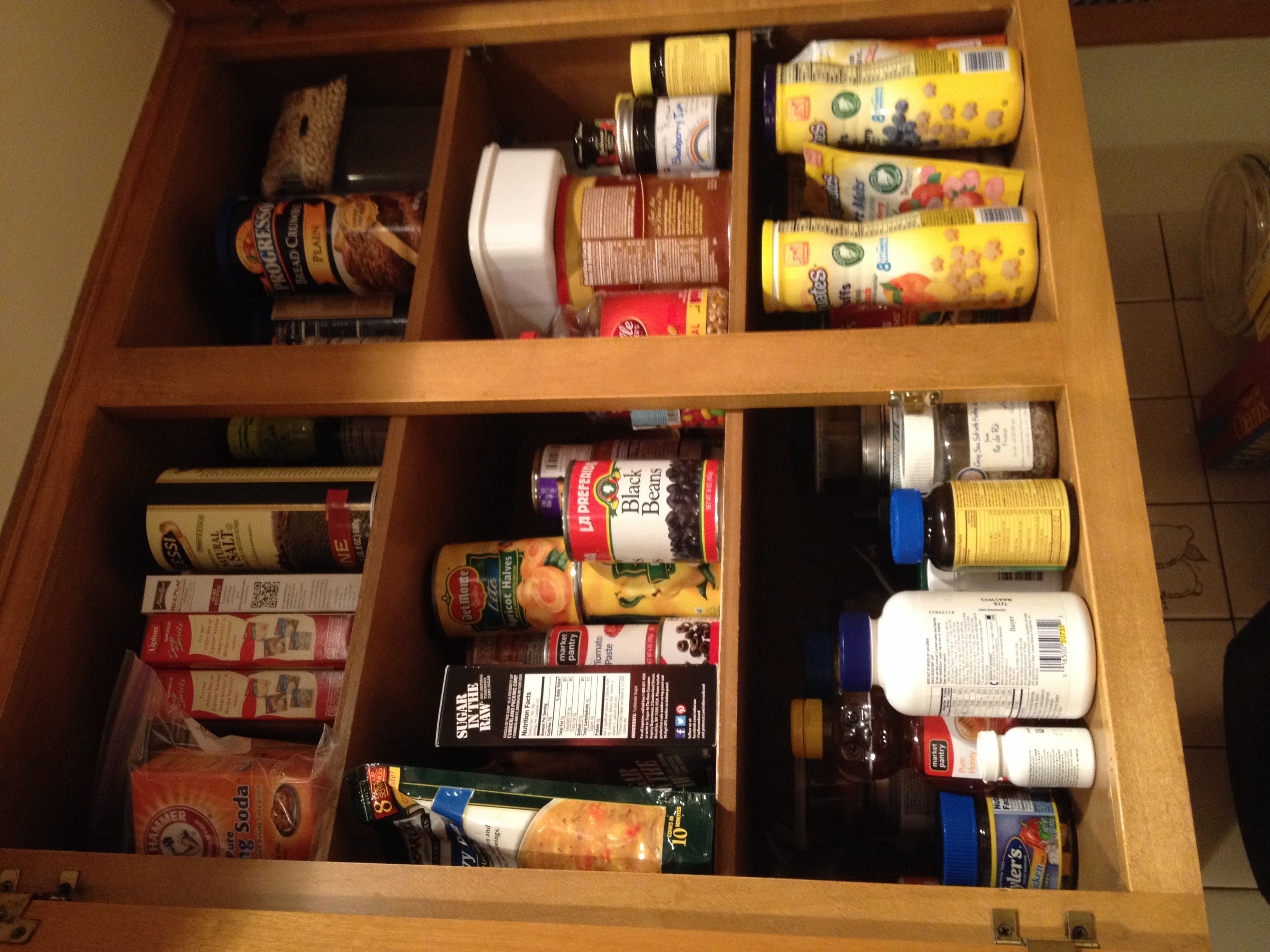 Stringy, I swear, we are molding into the same person more and more every day. We also only have four tiny cabinets for food. And the spice/baking cabinet above our stove. Oh, and I do have a huge baking drawer in the island I redid. The drawer is so heavy it's hard to open. Lol