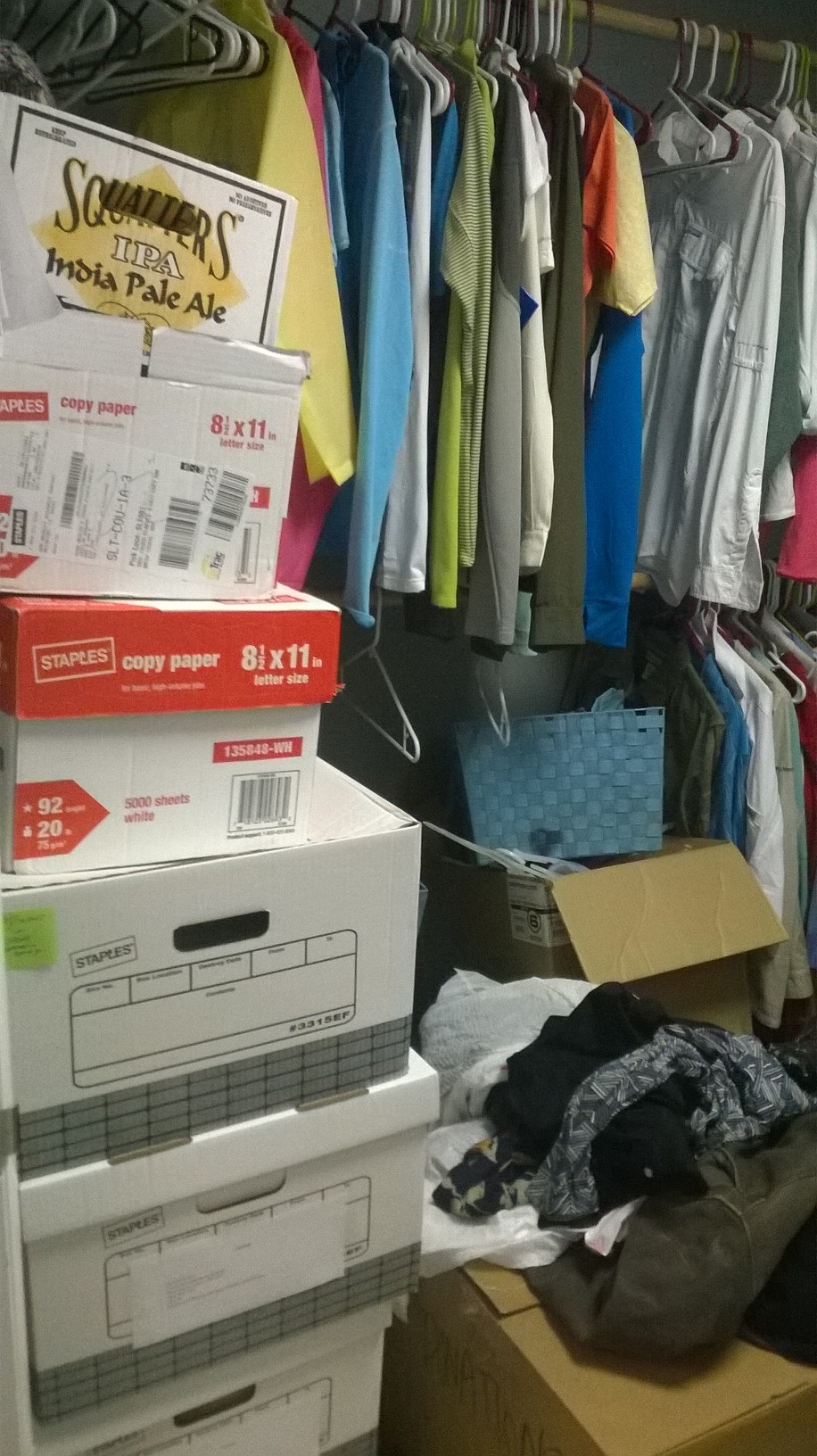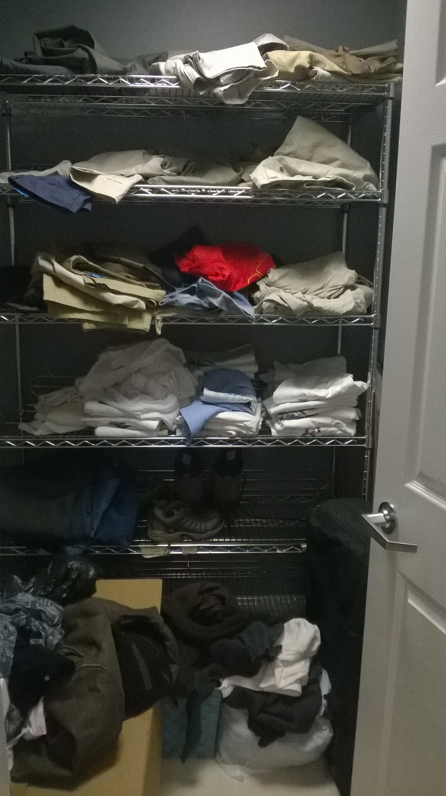 I'm super late, but I'm going to play at work instead of home. I have to move offices and our donation closet is attached to my new office. I cleaned and organized it really beautifully before I had Thijs. I came back to a tornado disaster. So I'm going to fix it back up and since it will be attached to my office I will be bringing the smack down to whoever enters it