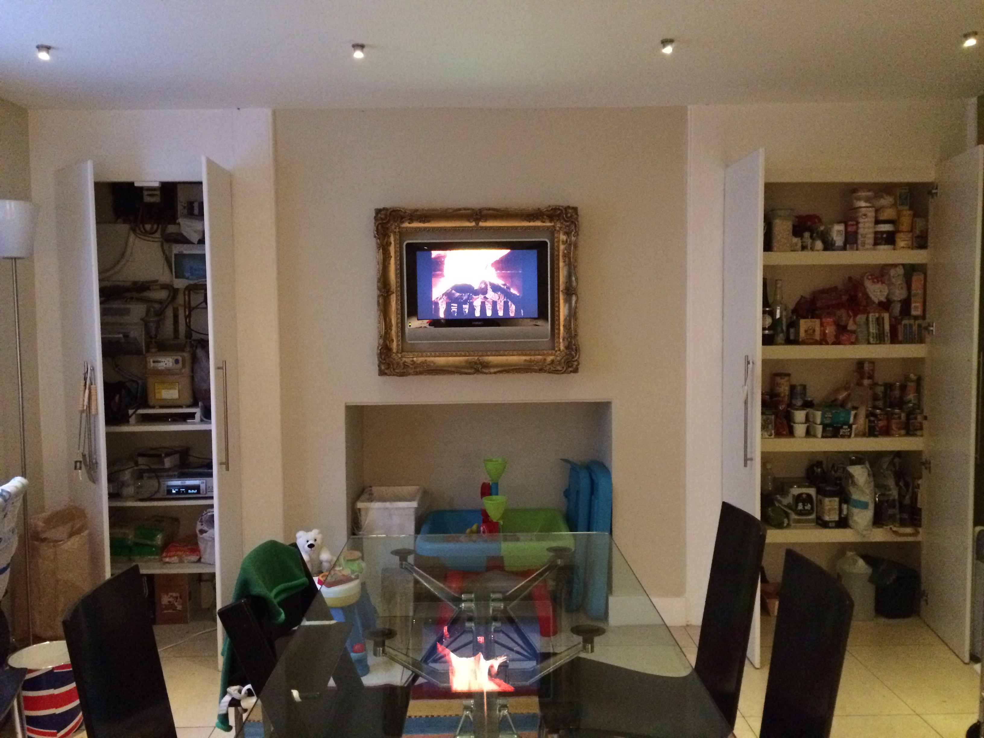 Thanks! I can't take credit for it, though. Our landlords love telling the story about how they bought a painting just because they wanted to use the frame for this TV.