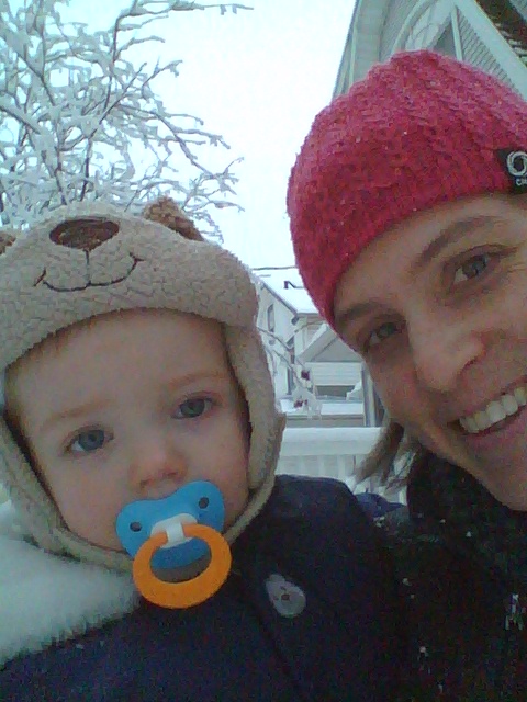 After battling his nap, the sledding and dance party finally tuckered out little Aldi. DH and S are curled up on the couch playing a game on daddy's phone. Meat marinating. Baby sleeping in lap. Snow still falling. Precious night.