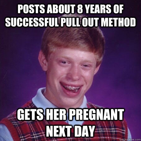 As for the pull out method...I'm just shaking my head. "It's ok baby, I'll pull out!"