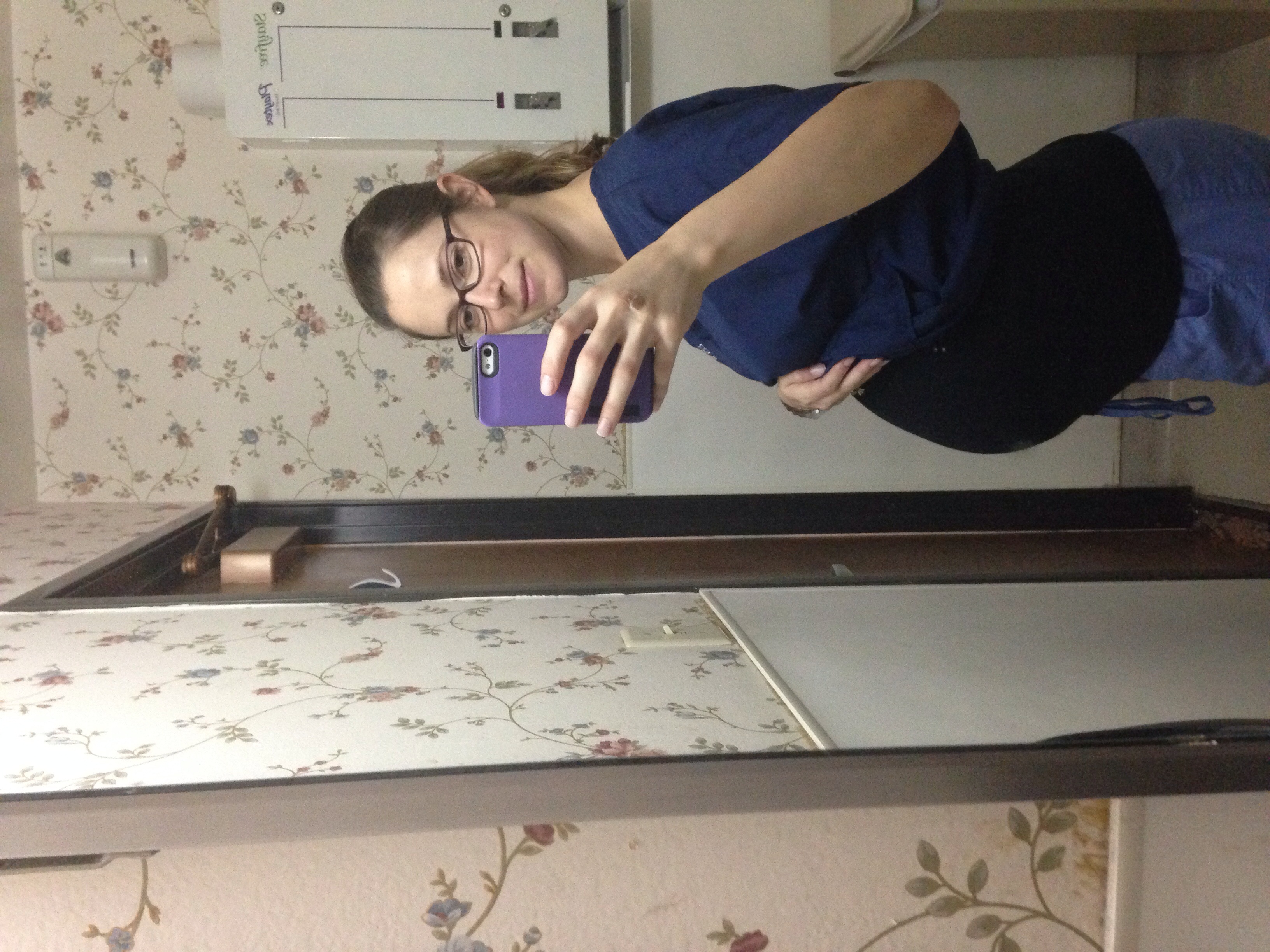 Here's my work bump pic from today. MH and I were feeling my belly and thought the baby was still breech (from what we saw at the a/s) and how he/she was moving. I had a prenatal appt and we brought it up to my dr and he did a quick u/s to check! It was fun getting a peek since we haven't had a scan since the a/s at 20 weeks. And the baby is head down! Yay! I know things can change, but it's a relief for us.