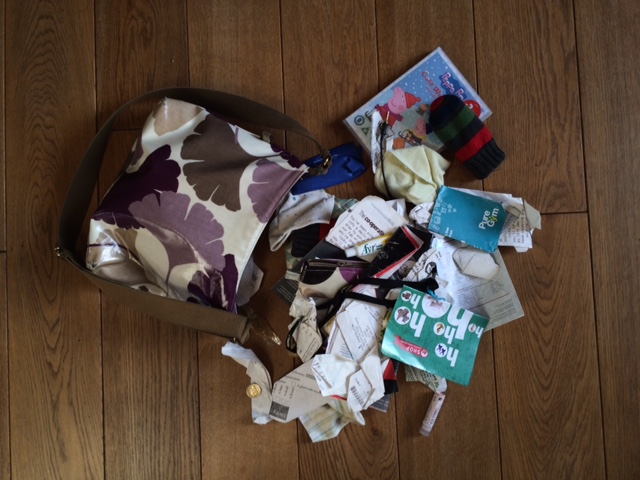 I'm going to de-clutter my purse today. TODAY. I've already dumped the contents out, so I have no choice but to deal with it before I go pick up DS.