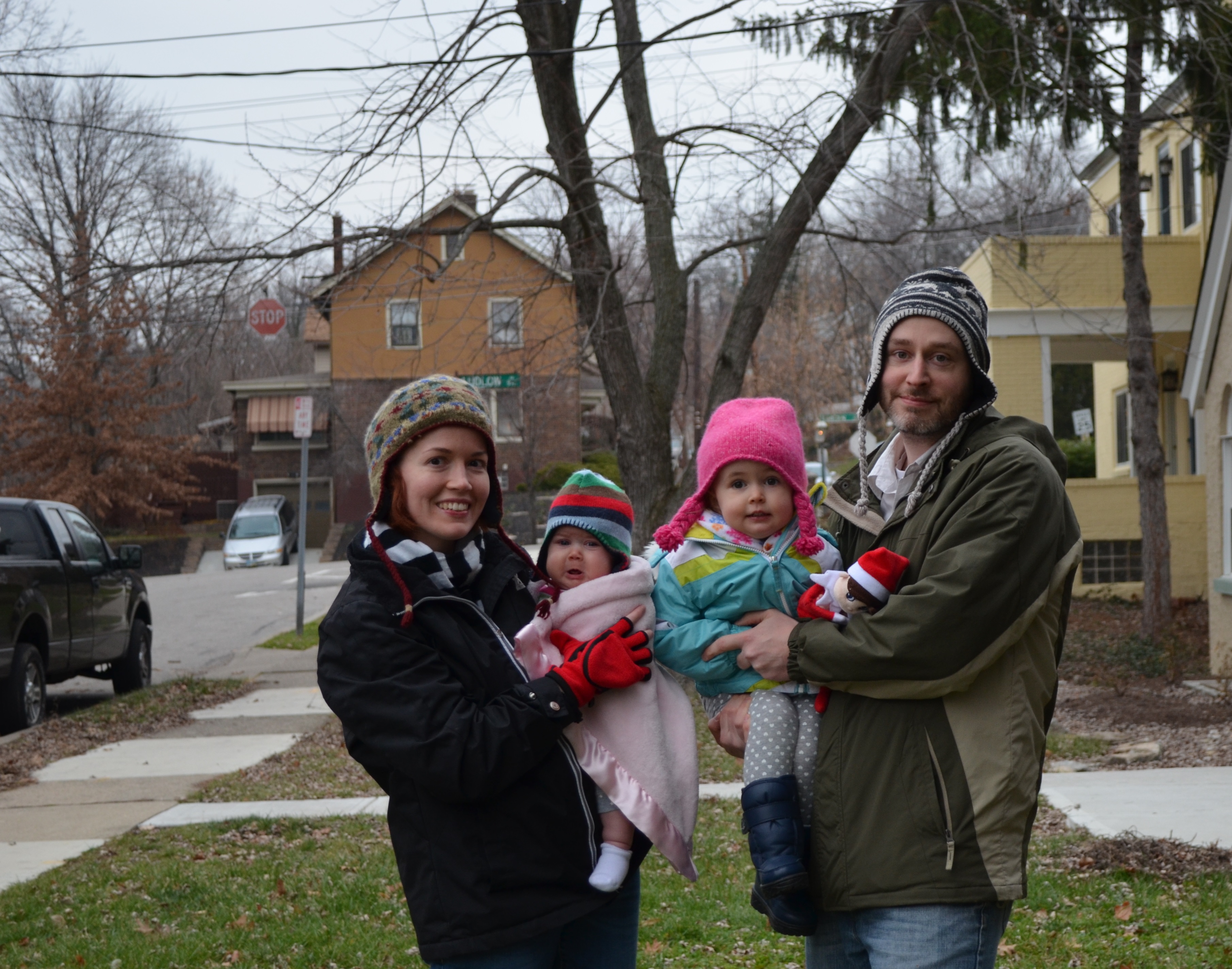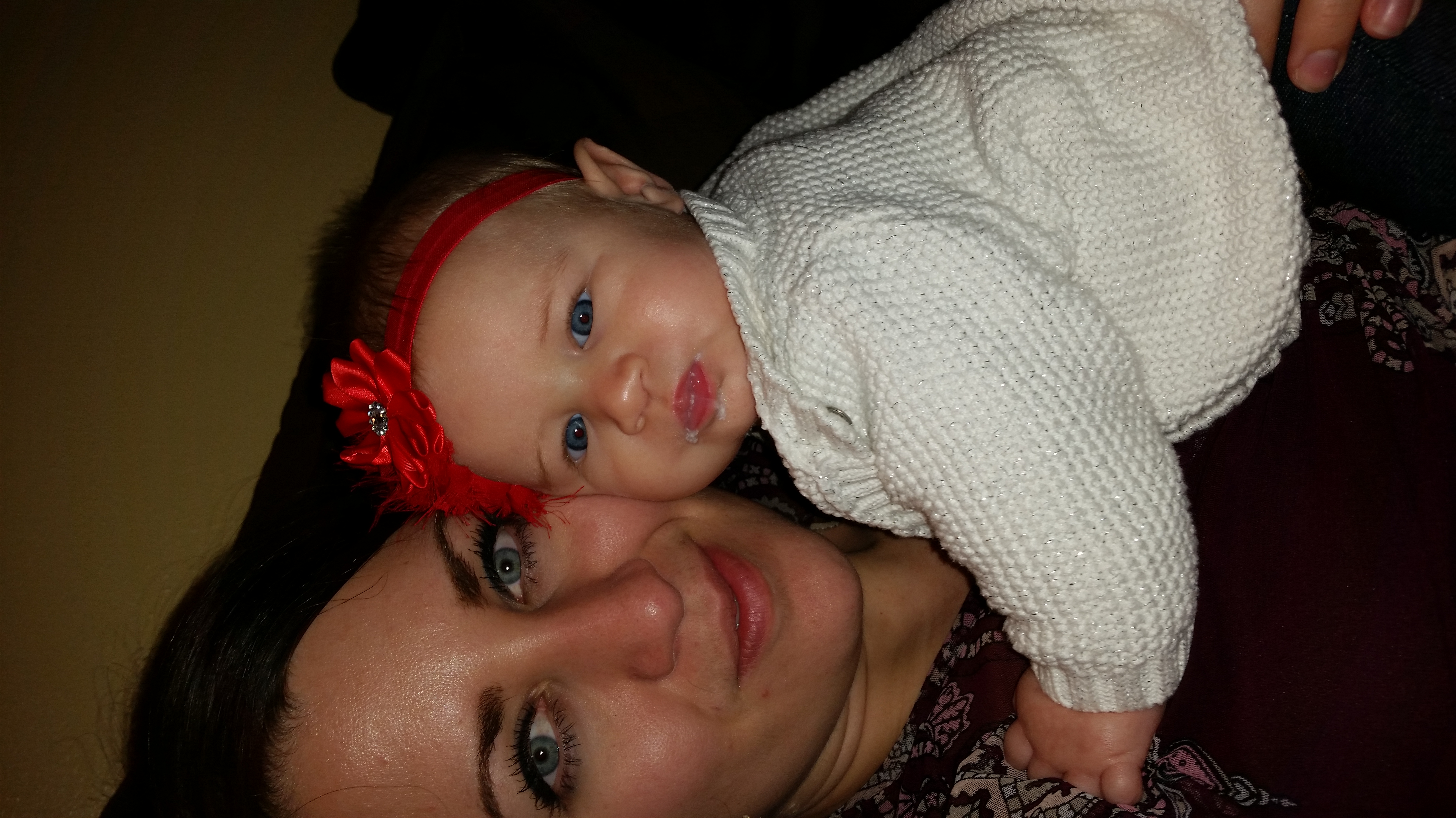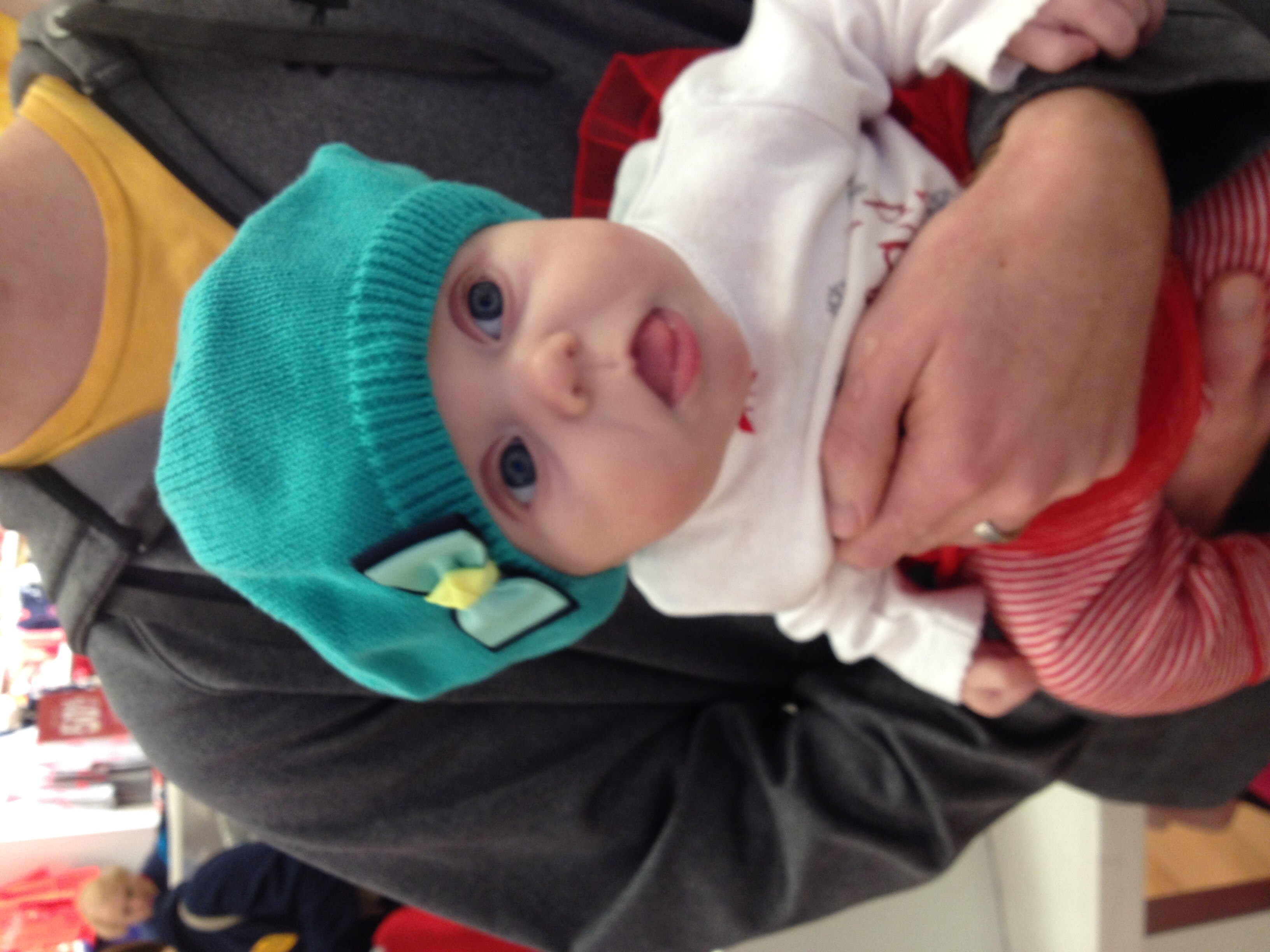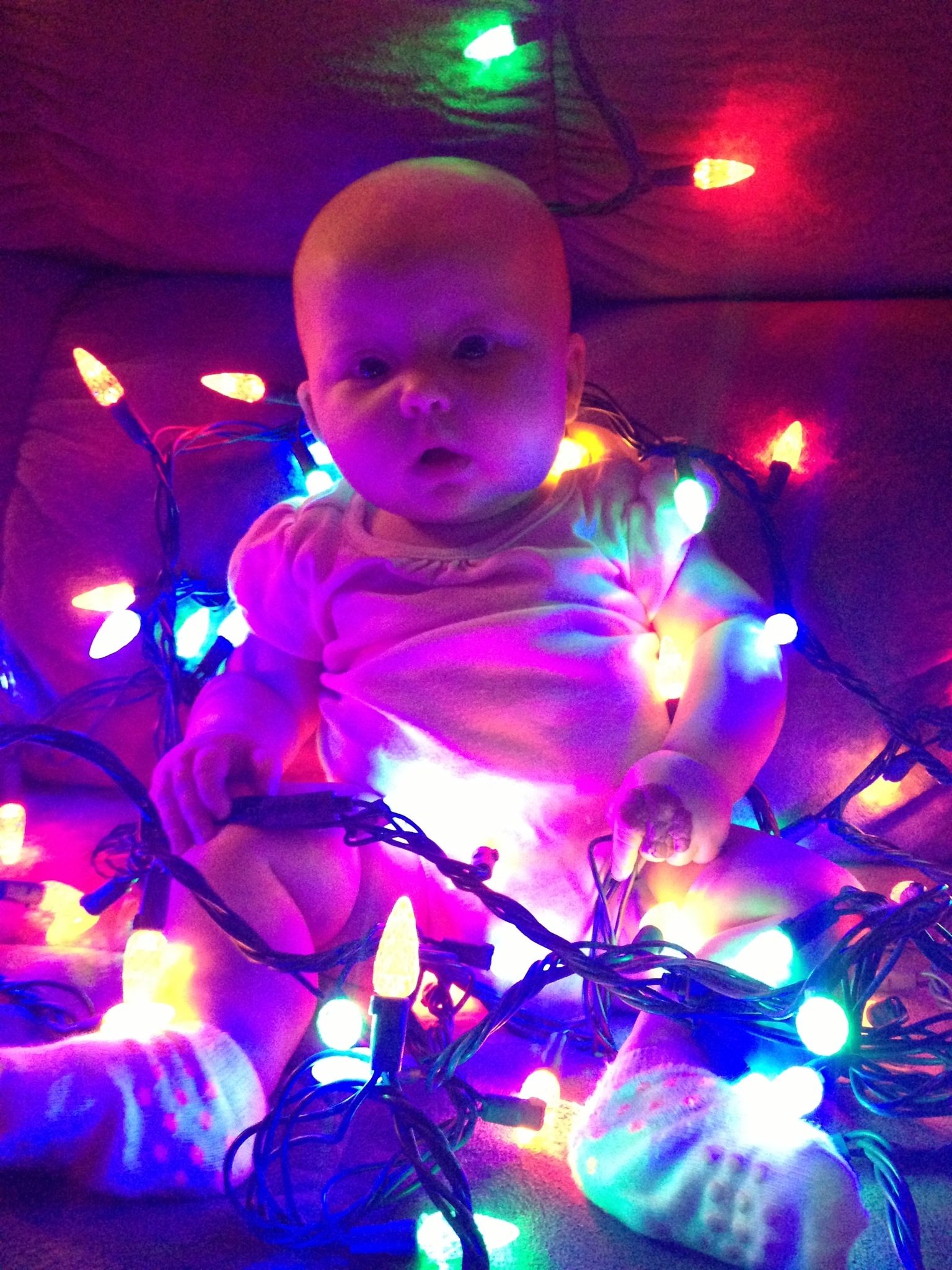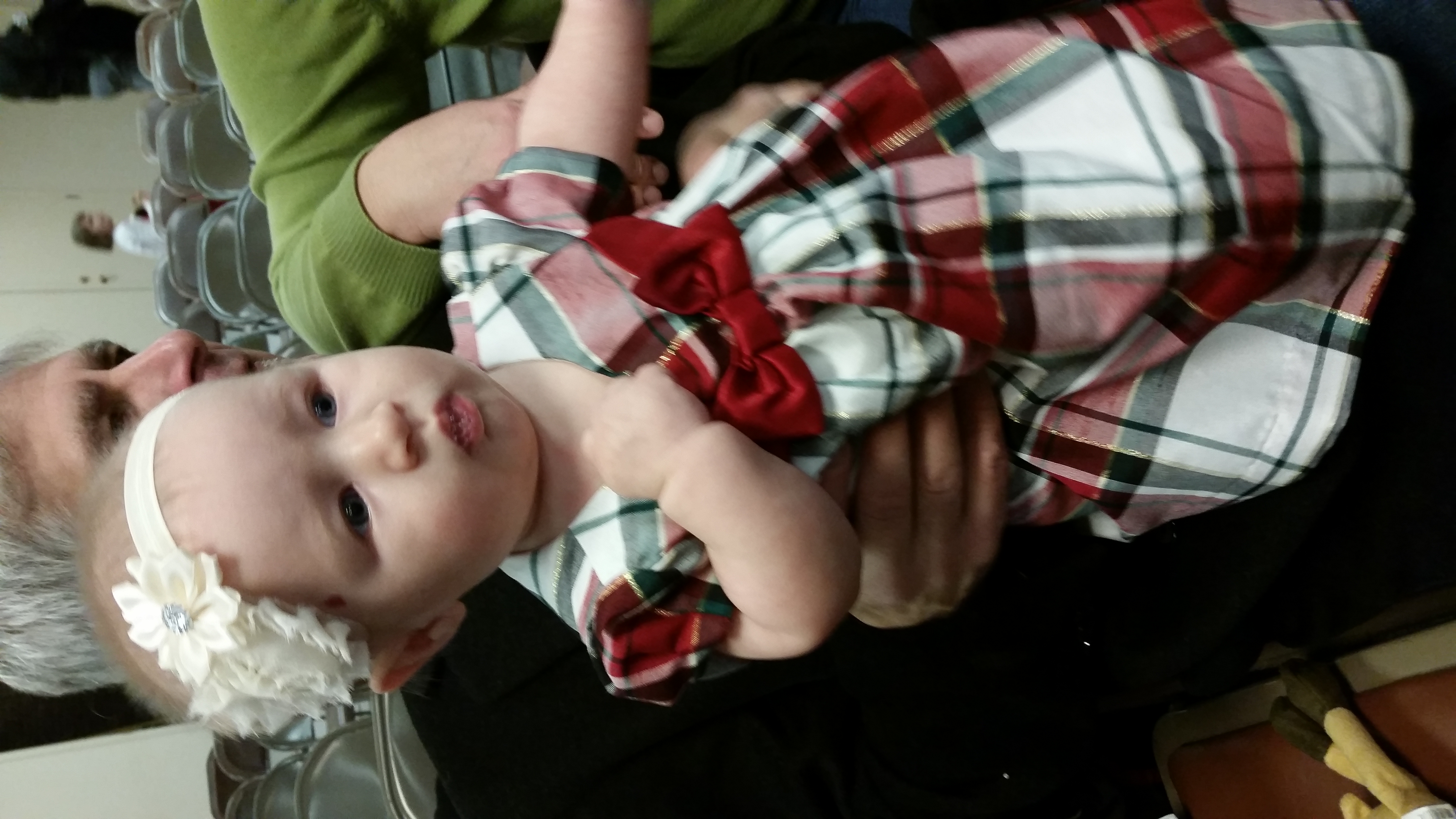 First pic is from when we were out seeing a Christmas show this past Sunday; she was standing on my dad's lap and so alert and curious about what was going on.