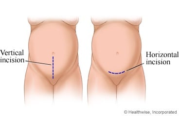Also a c section isn't really done through your stomach. It is your pubic region, low enough that almost all women grow pubic hair at the incision. There are some countries where vertical incisions "through the stomach" are more common but they are hardly ever done in North America or Europe.