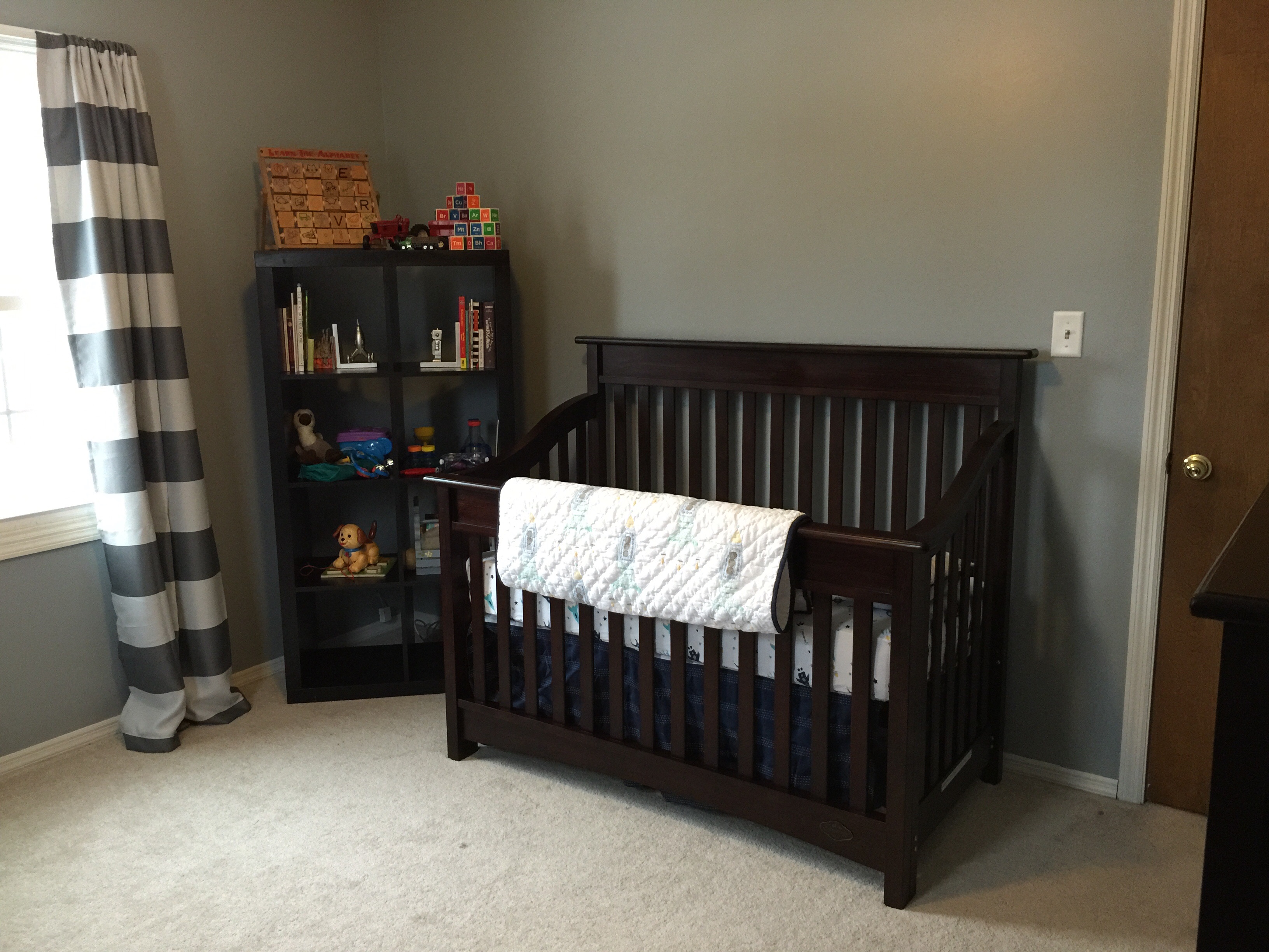 Ours is still a work in progress, but coming along! DH built the crib, and refinished the dresser and nightstand. We're waiting on our glider, which I think will make a HUGE change as it has a fun pattern on the fabric. We've got letters for his name, and some rustic large hooks to put up - but are getting there one step at a time!