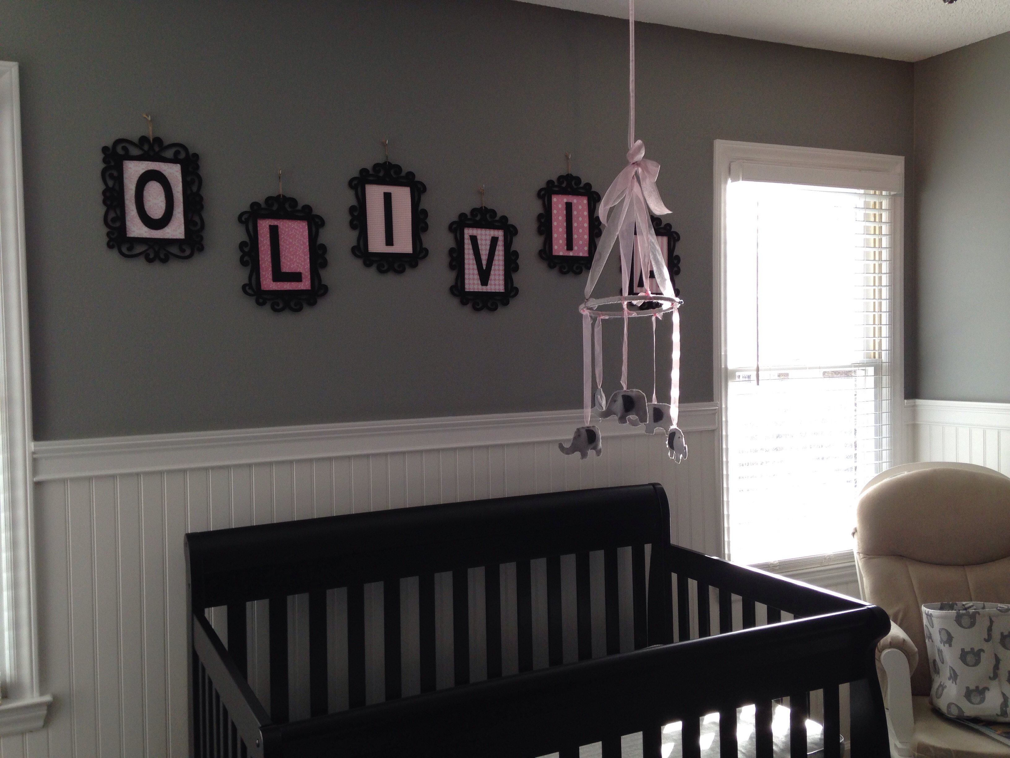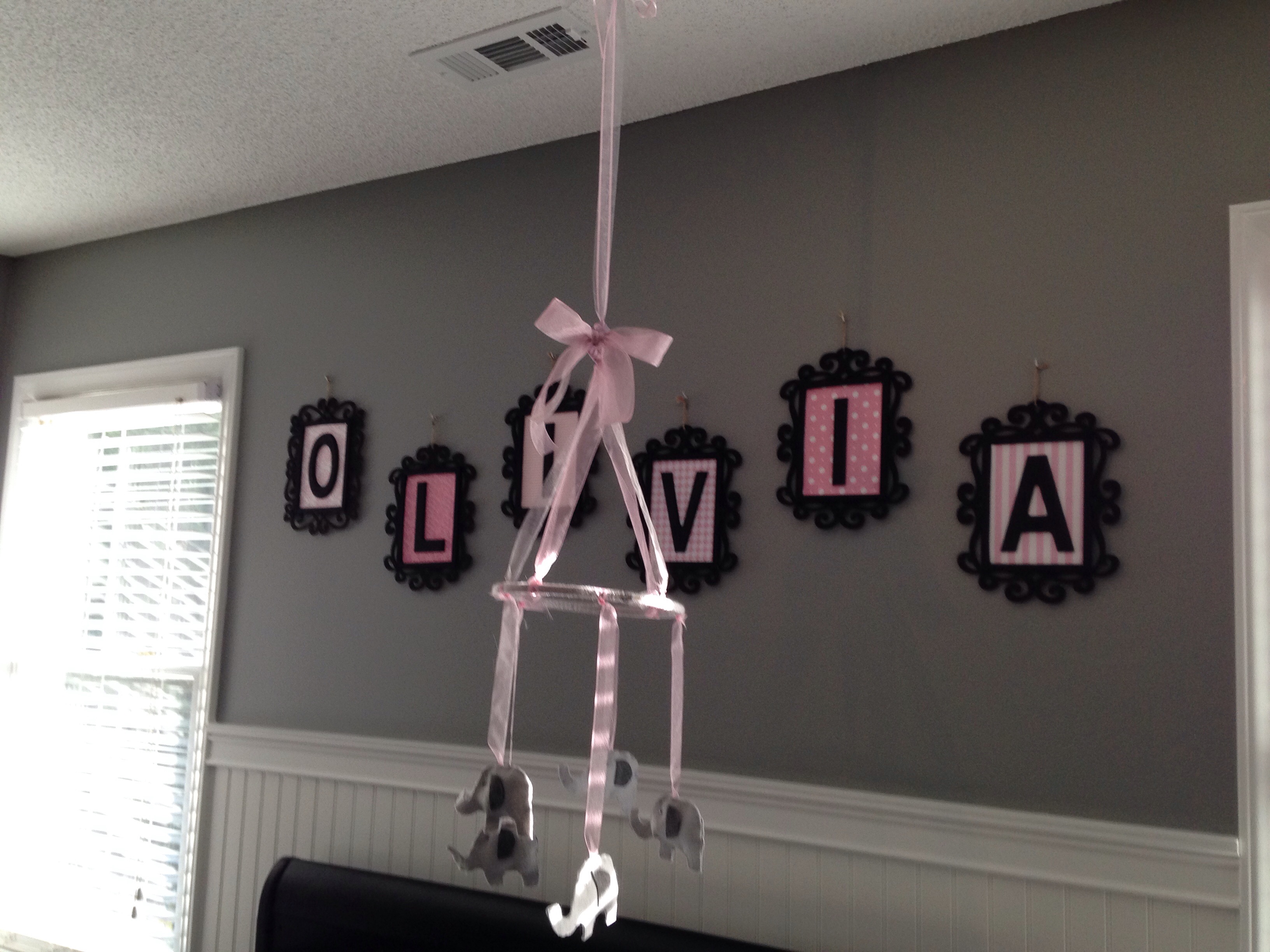 I love all of these ideas! It makes me feel behind! The room is still a wreck but I made the letters and mobile and hung them. The picture makes it look like the mobile really blocks the letters, but it isn't so bad in person.