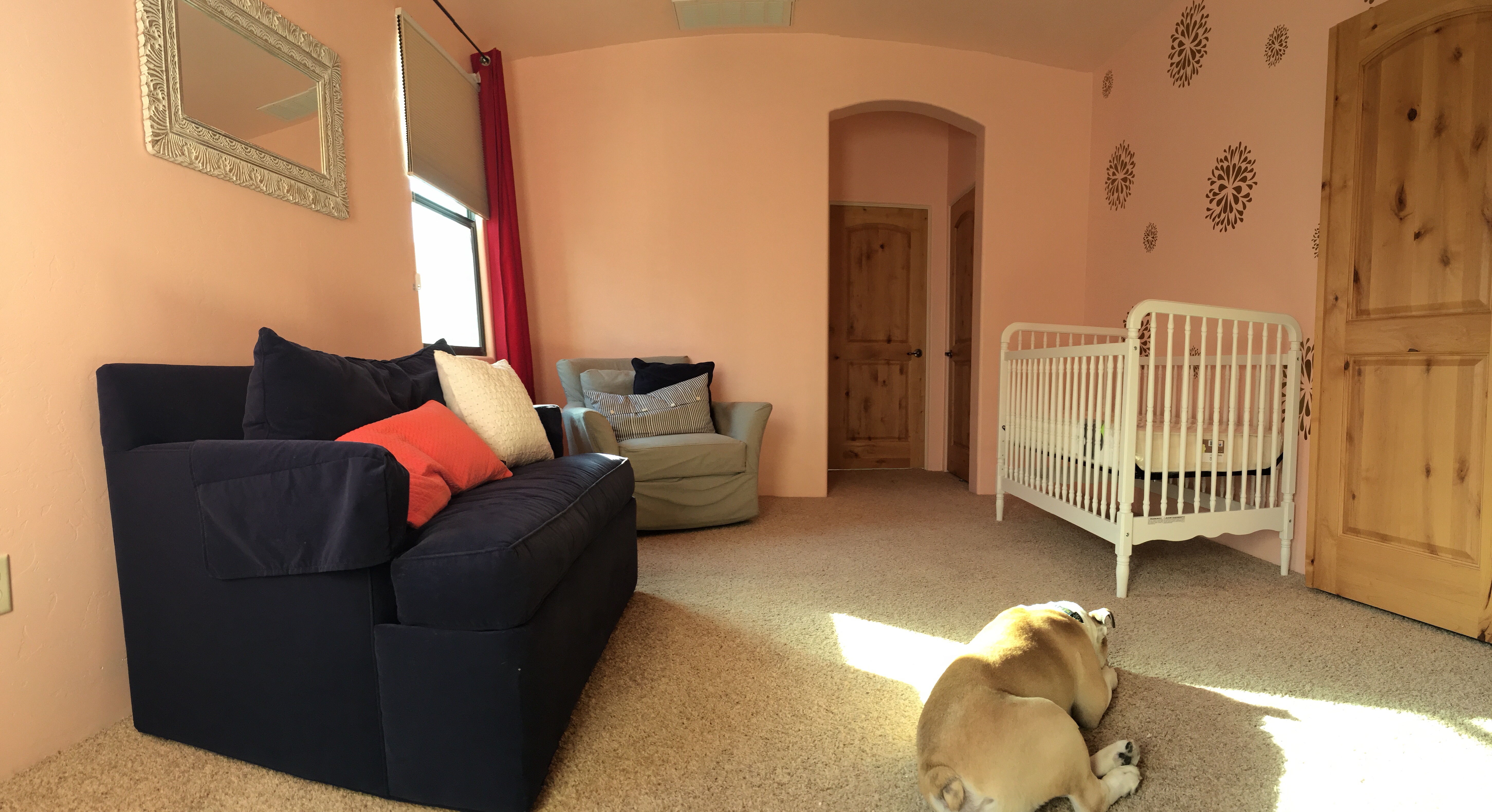We have a lot more to do, but here's what we have so far...on the hunt for curtains and dresser/changing table.