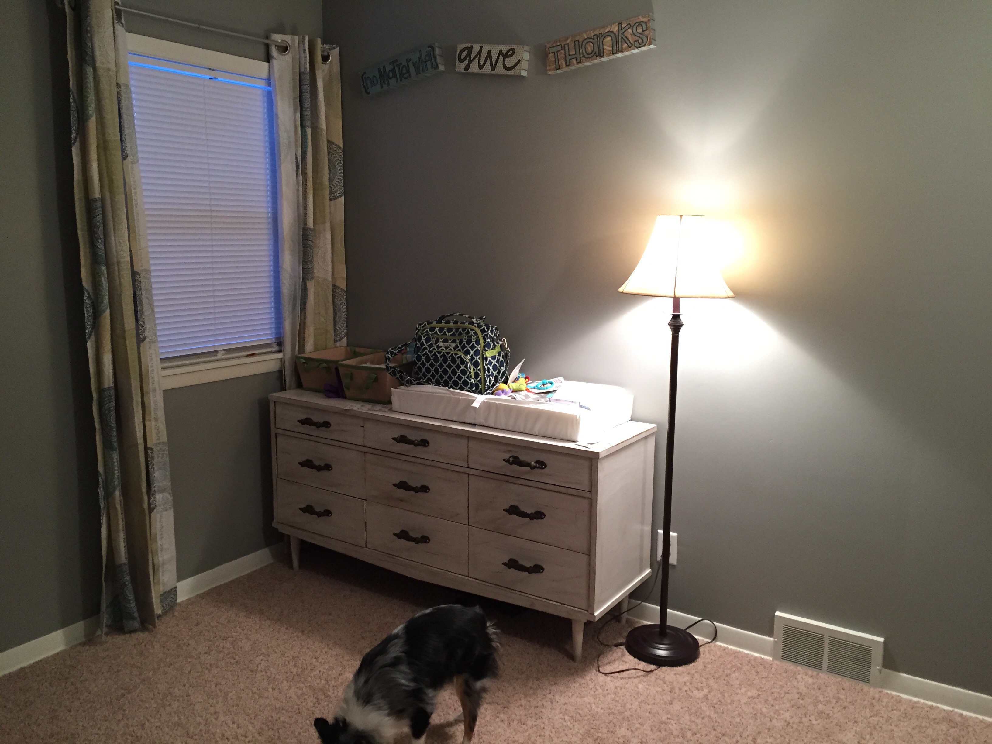 Guise, the glider and dresser were ready same weekend! The dresser was my moms, then mine as a child. And now it will be yoda's . It's still missing hardware and the wax is still tacky so waiting to put baskets on top. Now if only the painter would come...