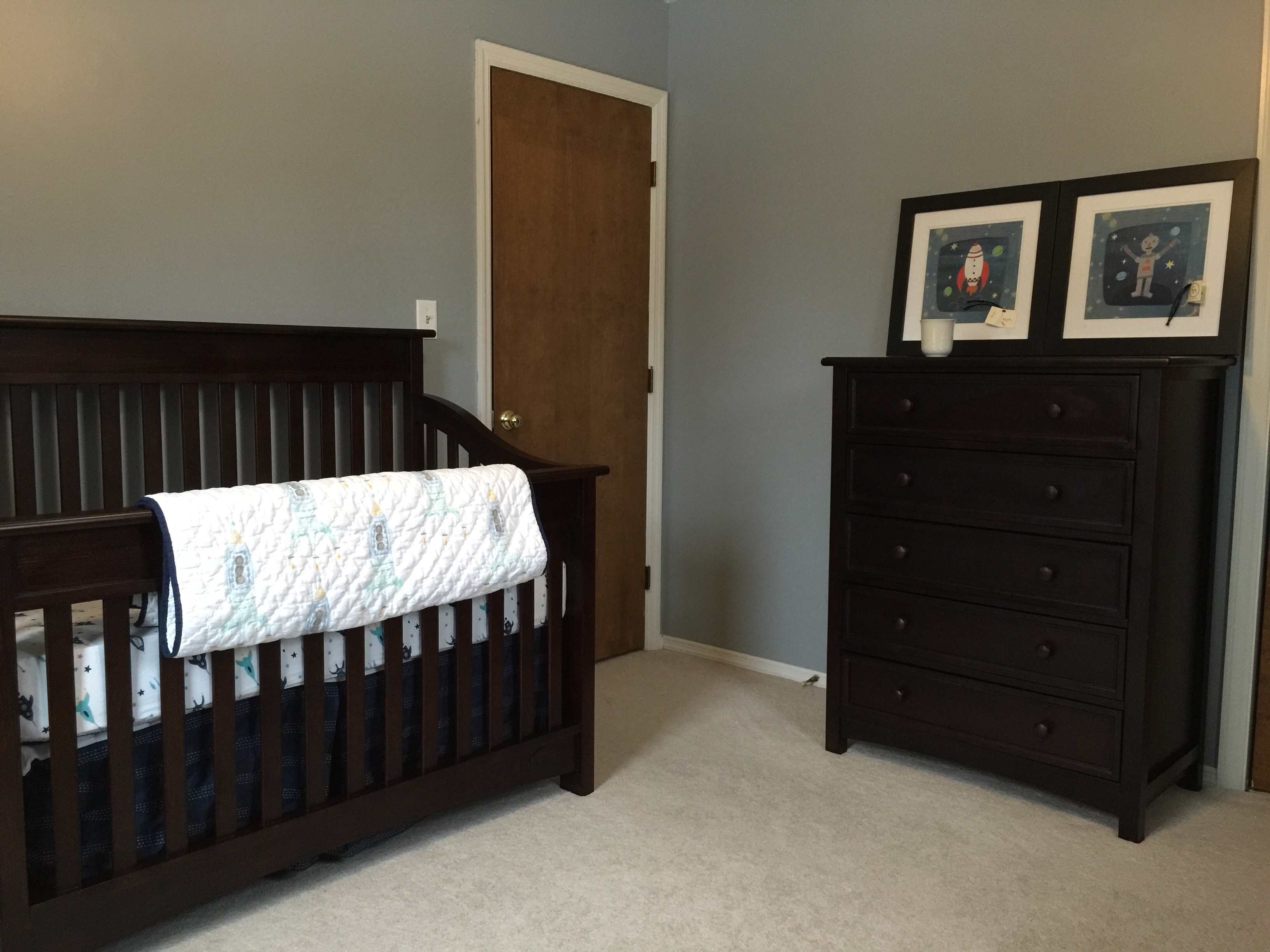 Thanks everyone for sharing your beautiful nursery pics! You all have some amazing taste. My husband and I are huge procrastinators and your pics helped give me that last little bit of motivation needed to get started. We (and by we I mean he) started this morning and somehow managed to get the room painted and the baseboards replaced... While I read him posts from the pregnant fat shaming thread, he enjoyed that. lol We're team green so we're doing a travel theme. I bought a huge vintage map to hang over the crib. The walls are a soft neutral, "toasted almond." The crib is butter yellow and the rest of the furniture is maple. We scored on the paint and got it for $1!! The color we picked somehow managed to be already made that someone never picked up so they hooked up us! Our furniture came from Habitat for Humanity and the crib was fairly inexpensive. We've managed to only spend $300 so far... We're super cheap so this makes me happy. Haha can't wait to share pics when it's all put together. Fingers crossed that's next weekend. I get asked at least once a day of the nursery is ready, I can't wait until I can answer with a big fat YES!