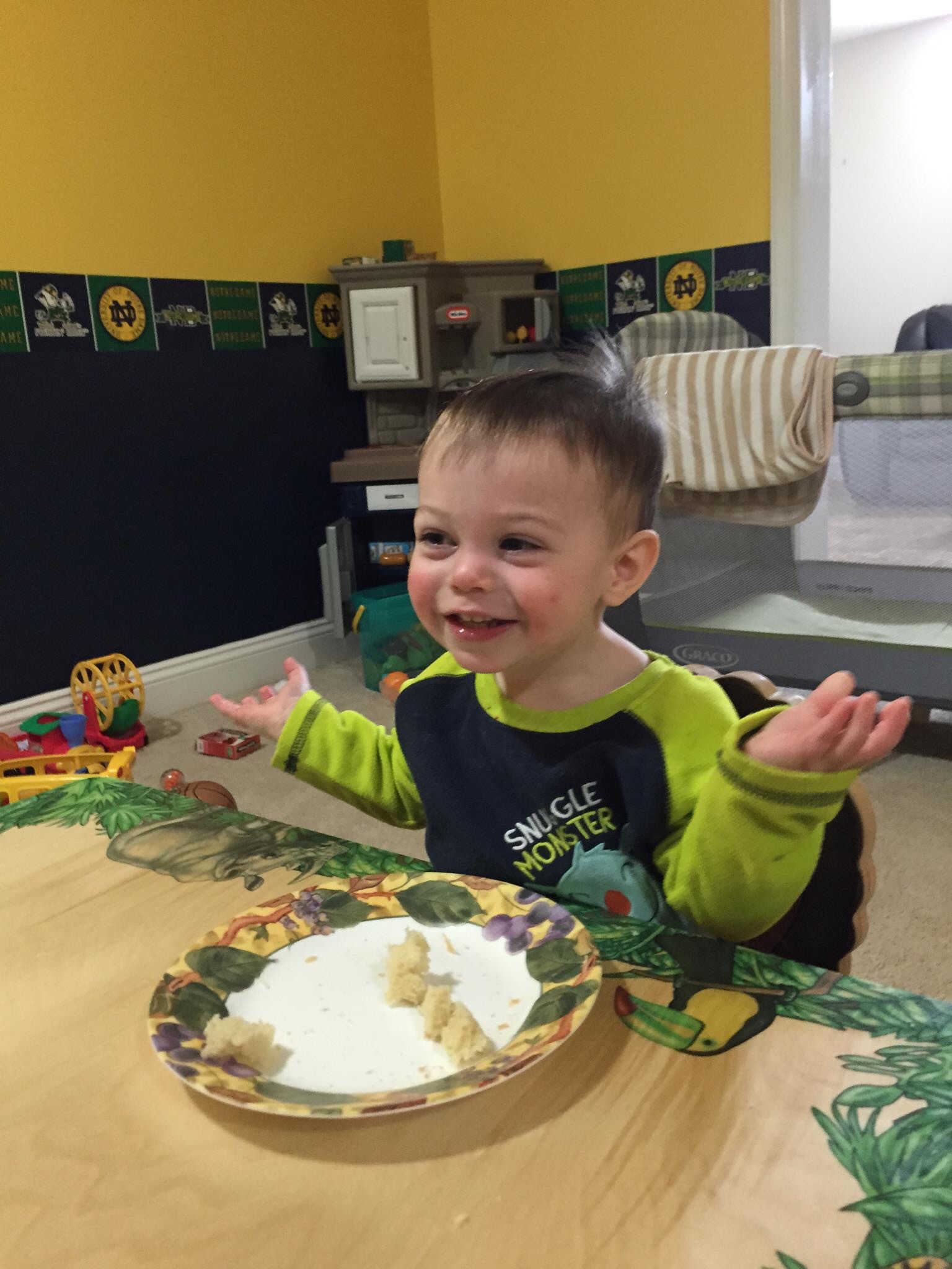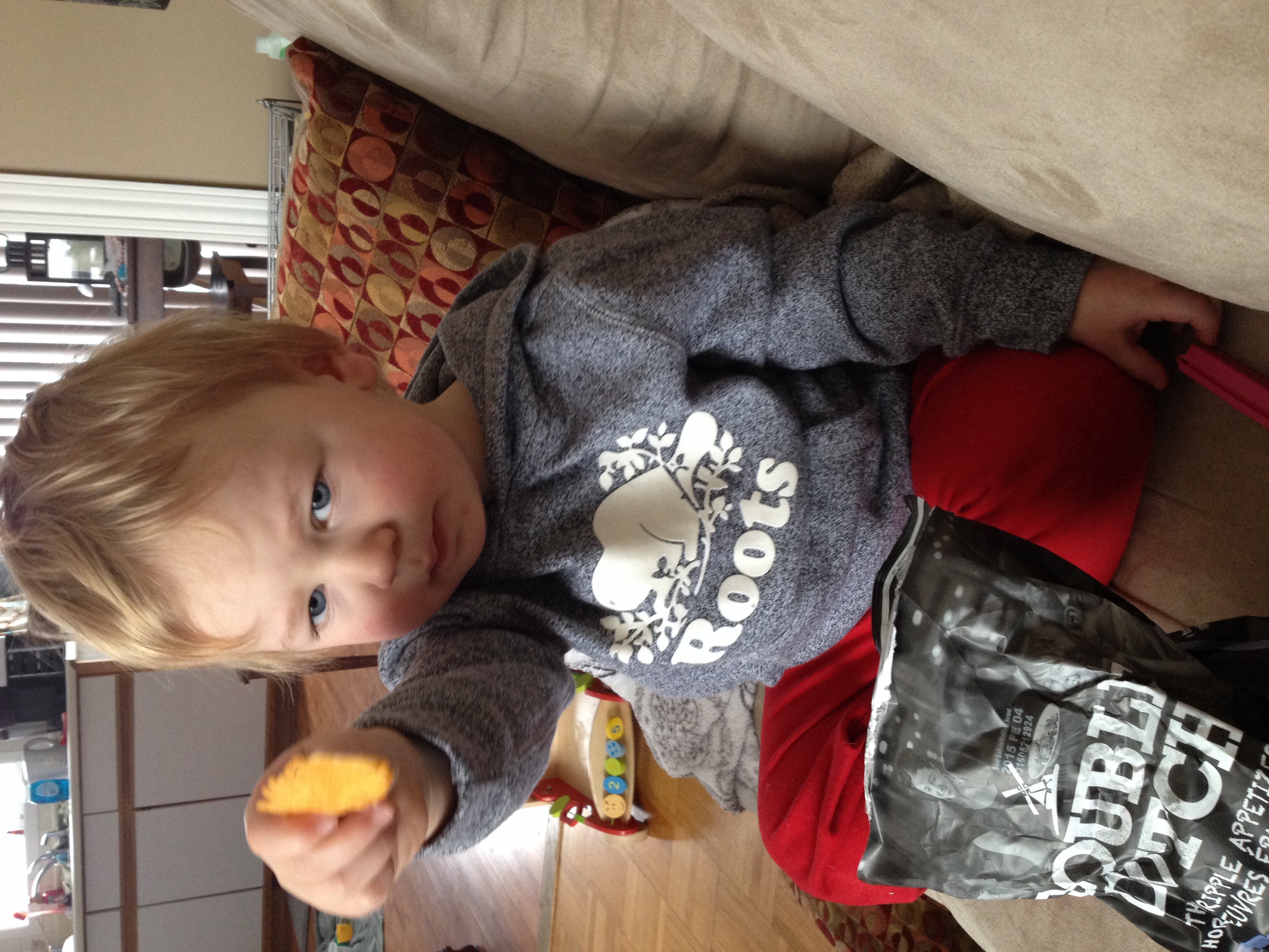 Still no bump at 14+1, so here is my toddler trying to force feed me a chip. I had a bag on the couch with me one day when I was feeling especially bad and he decided I NEEDED to eat them.
